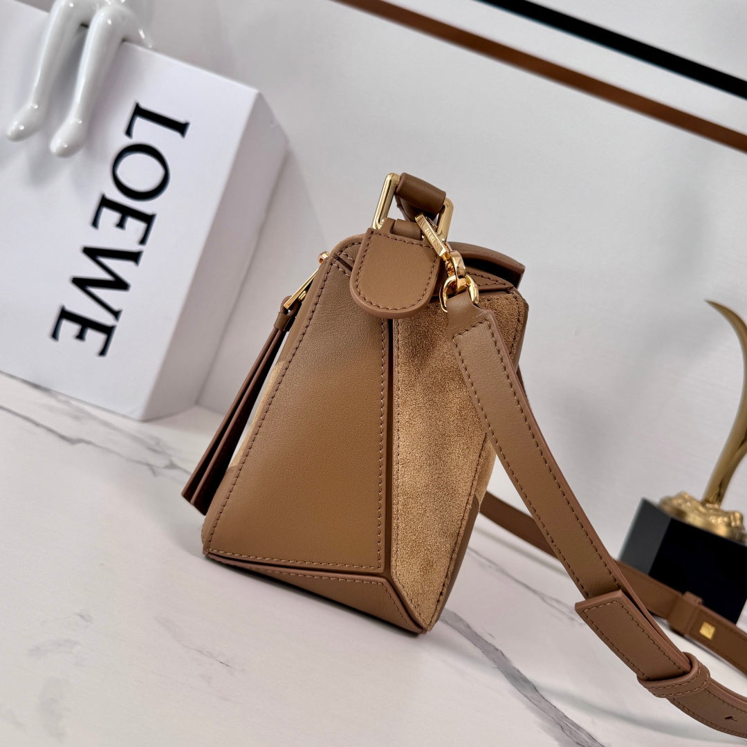 Small Puzzle Bag Brown Calfskin Suede