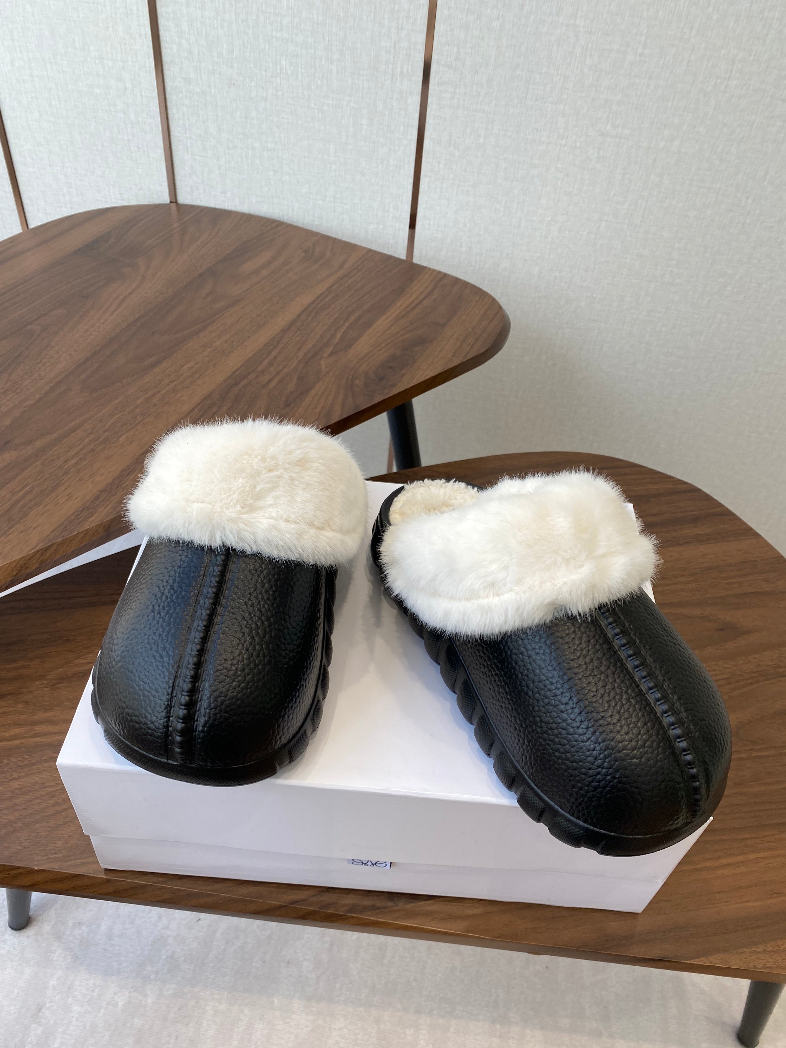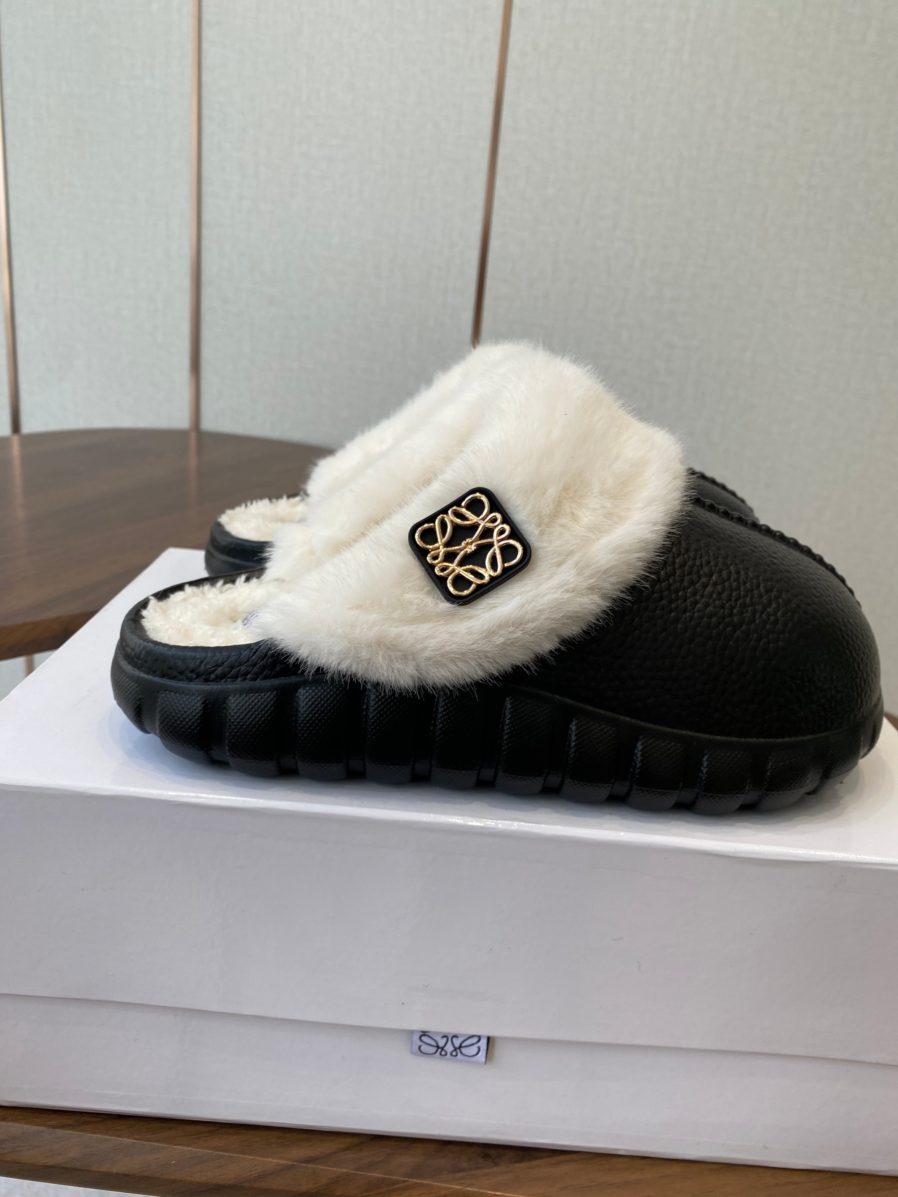 Loewe 2025 Fur Slipper Black White Wool 556016