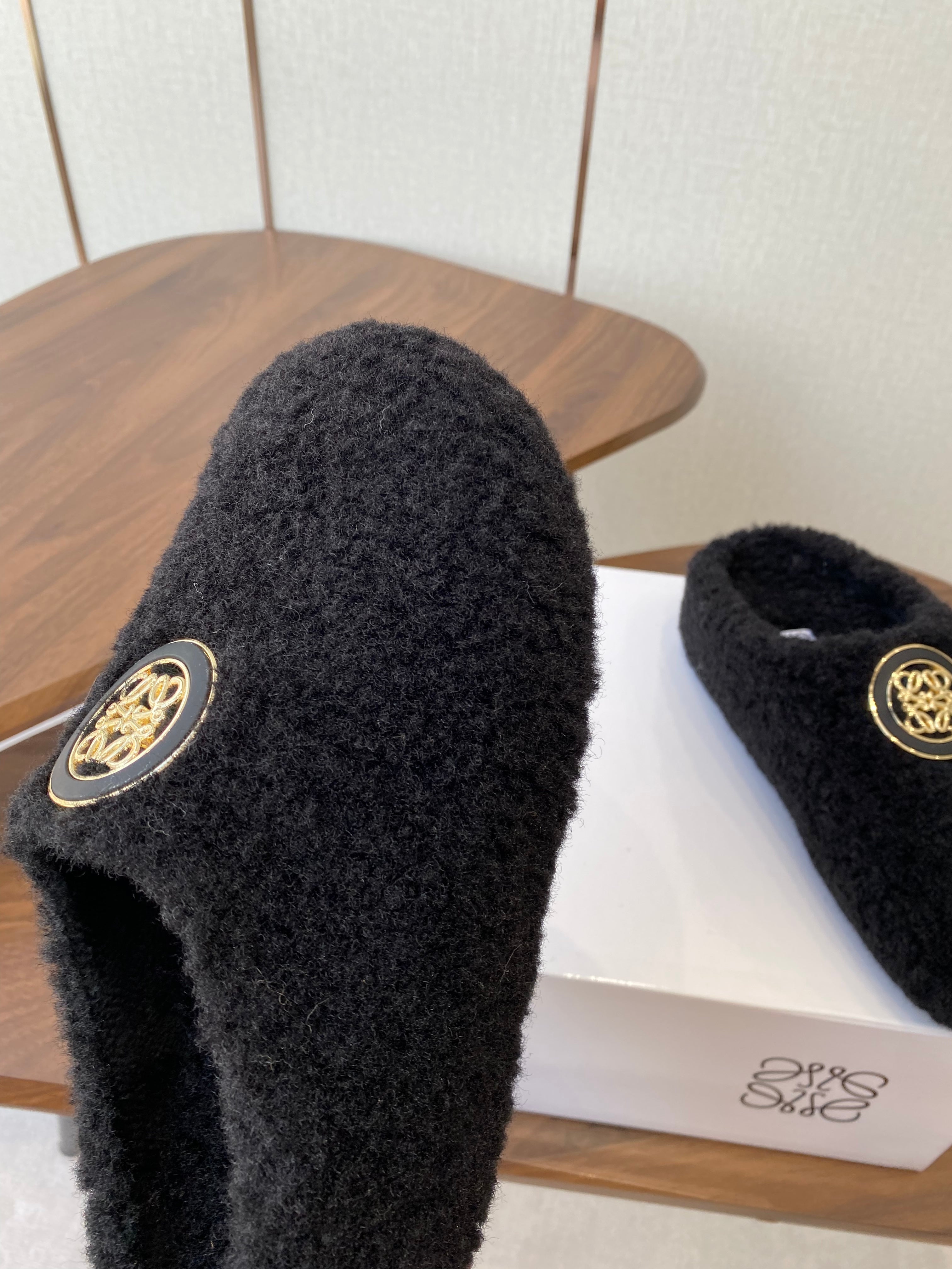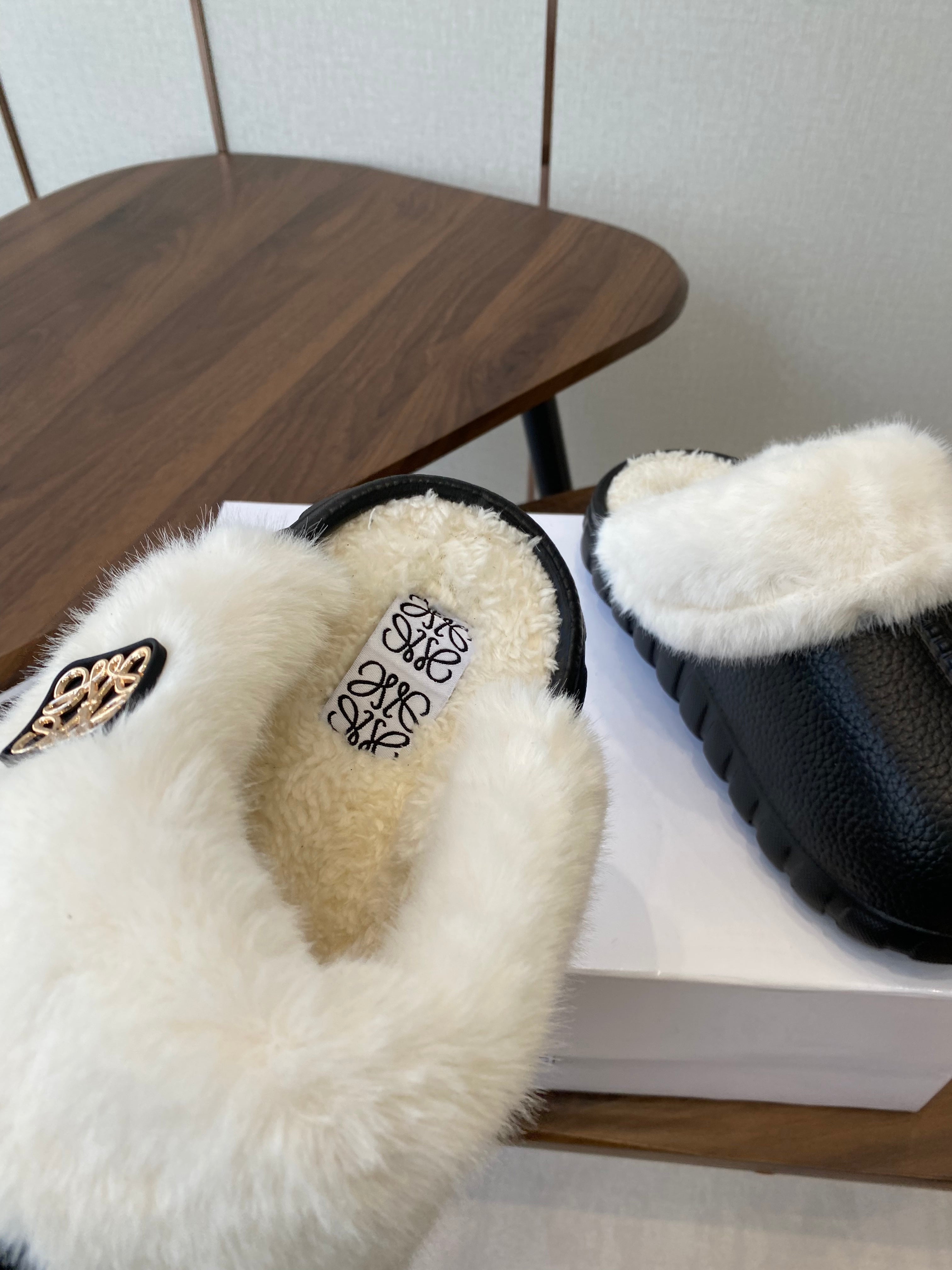 Loewe 2025 Fur Slipper Beige Black Wool 556015