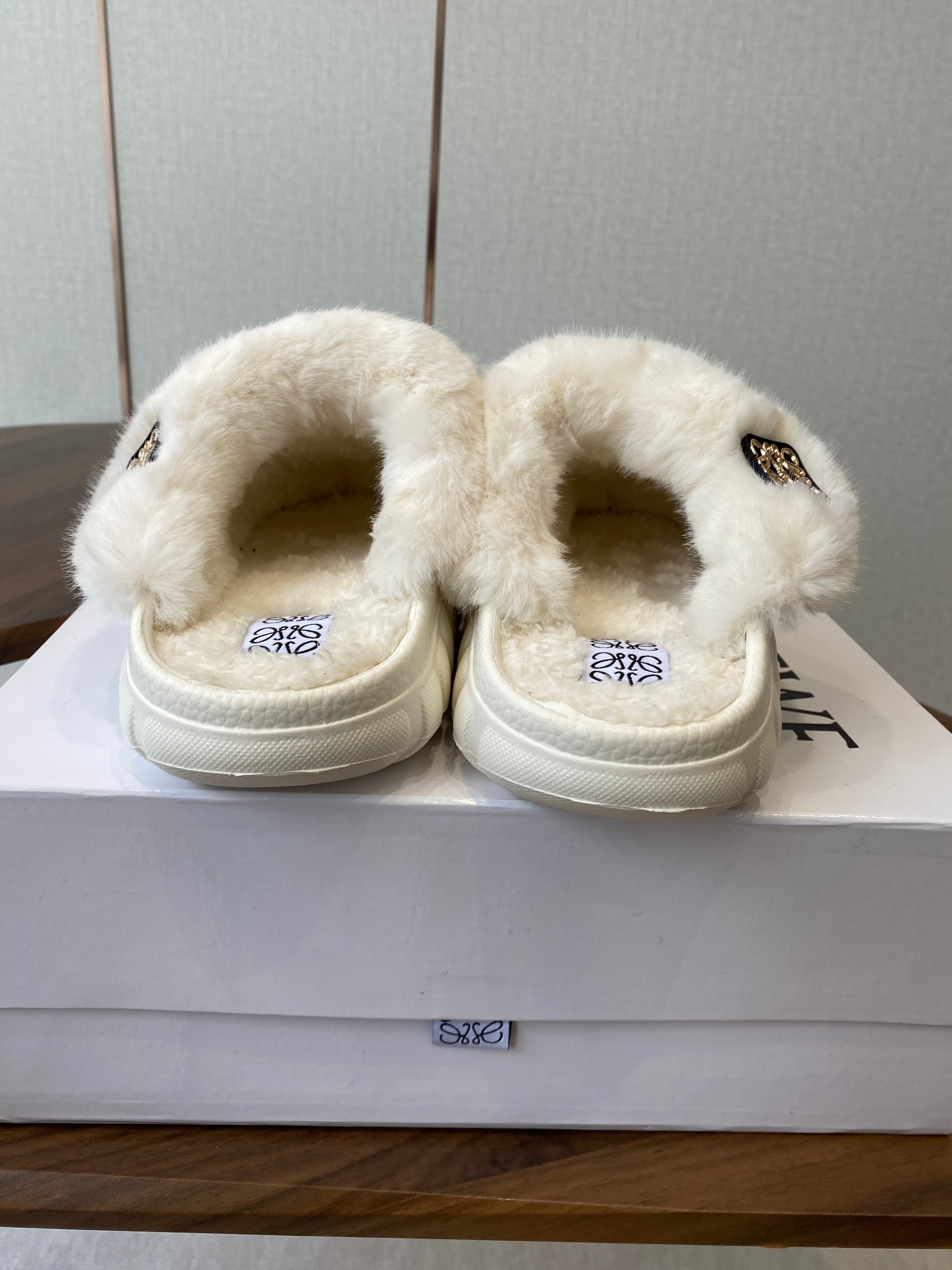 Loewe 2025 Fur Slipper Beige Wool 556017