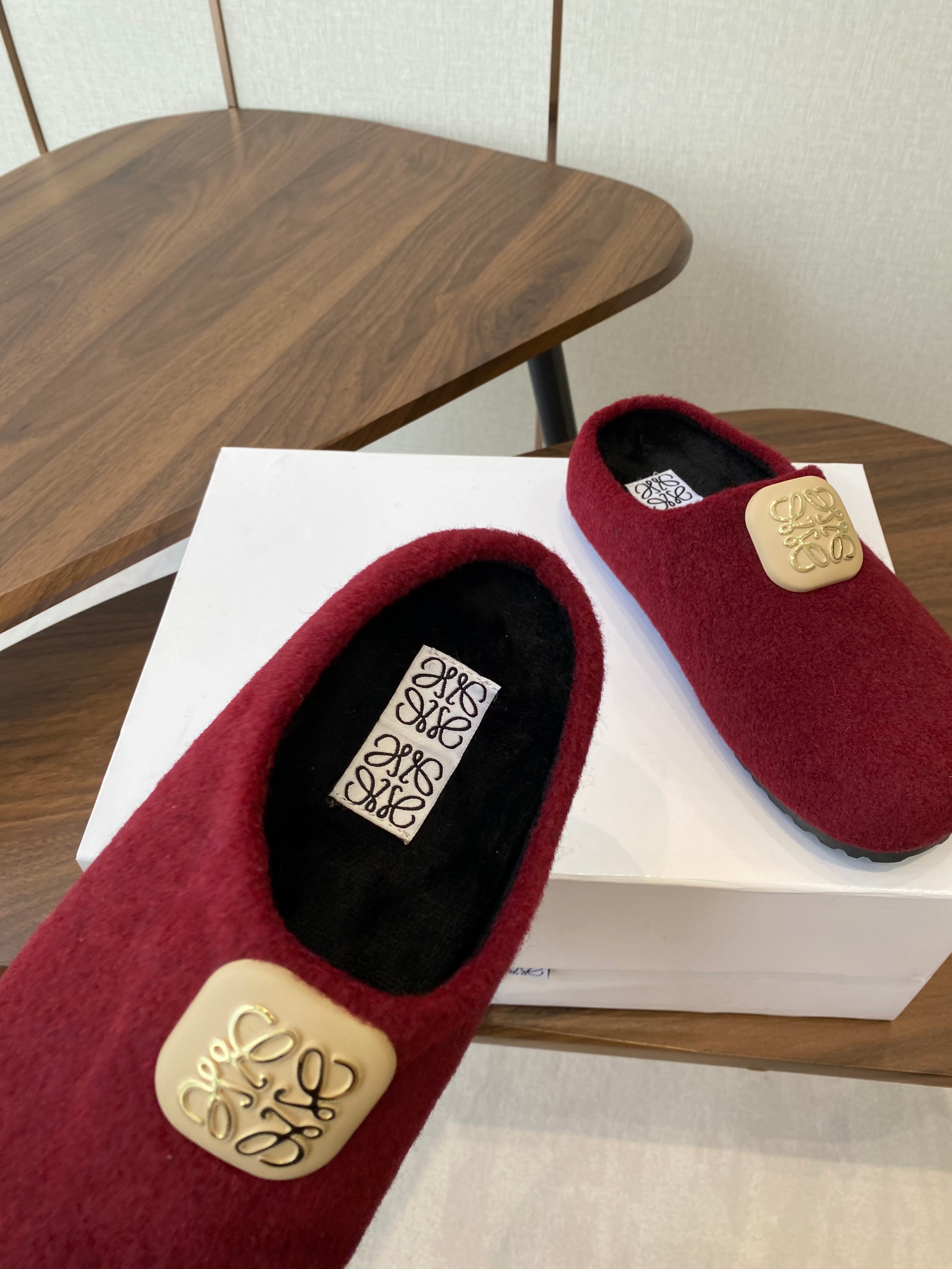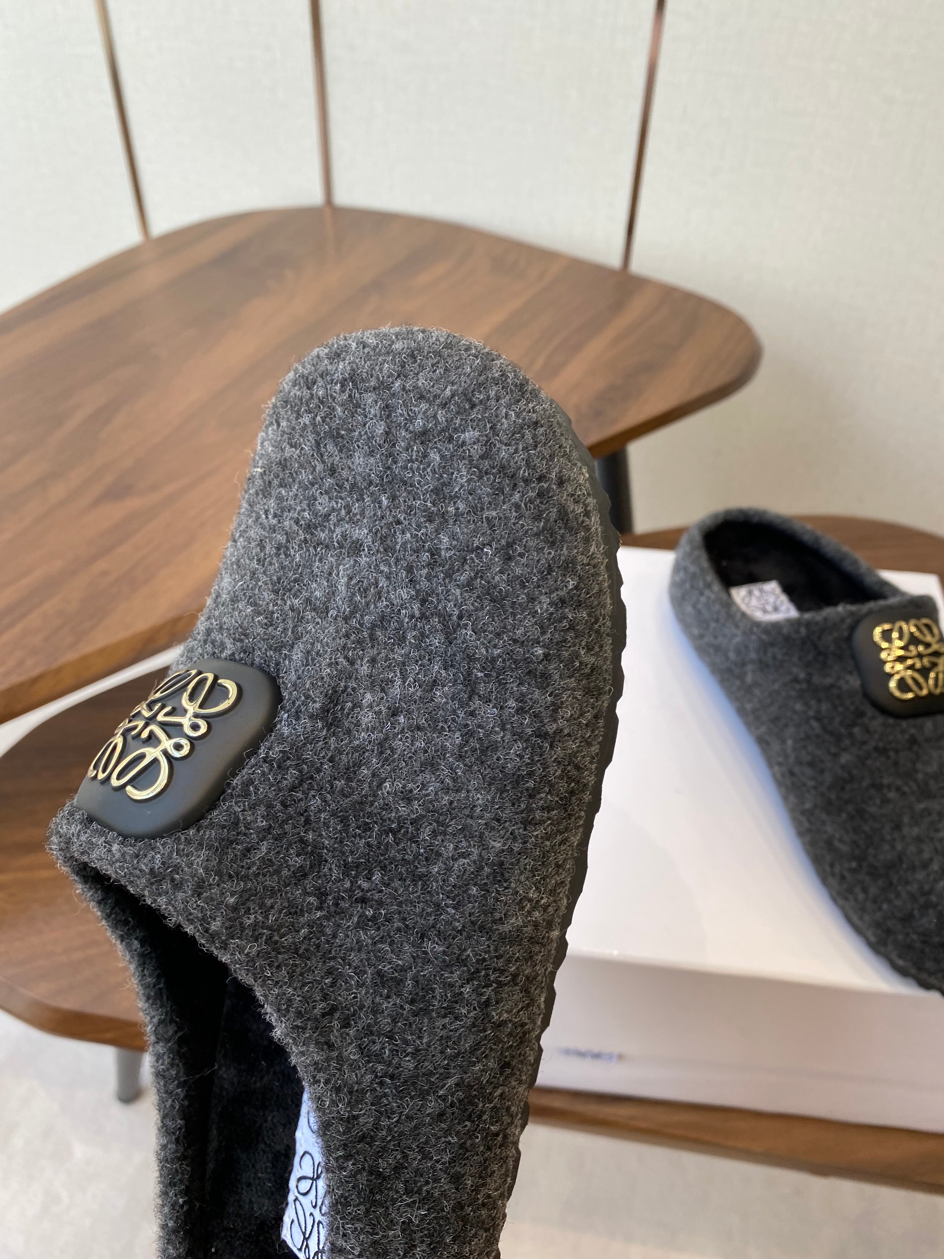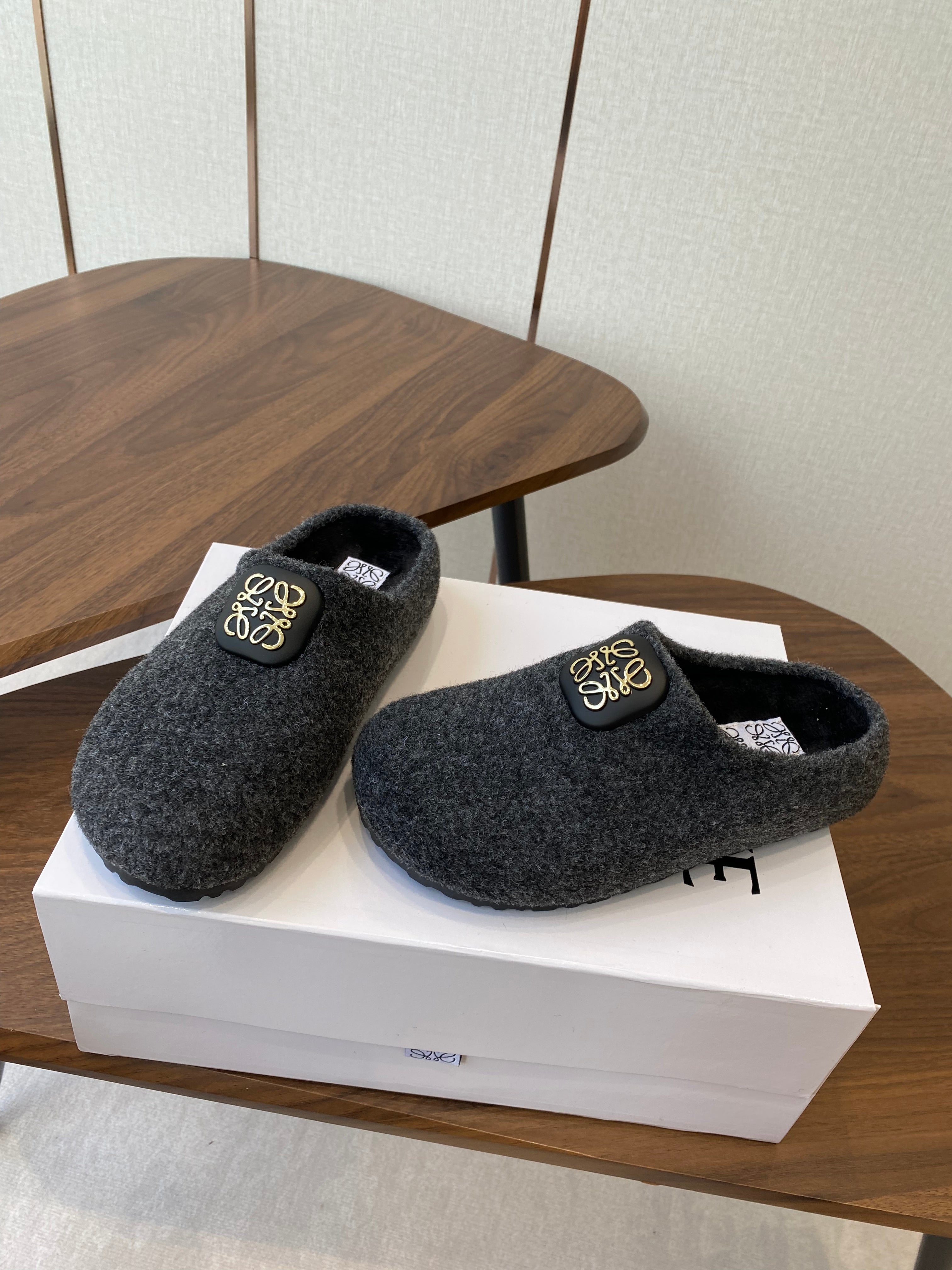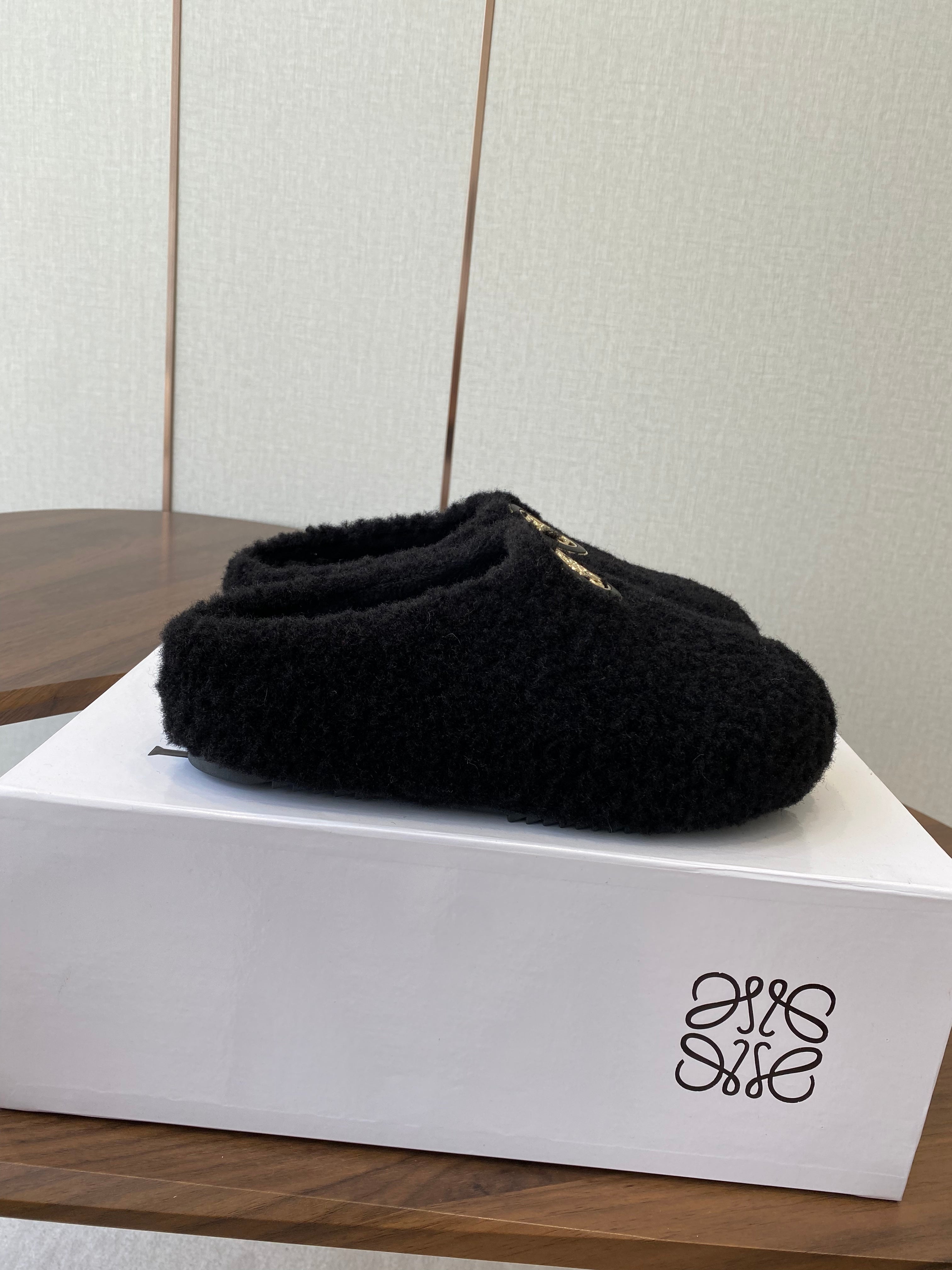 Loewe slippers black leather wool 477788