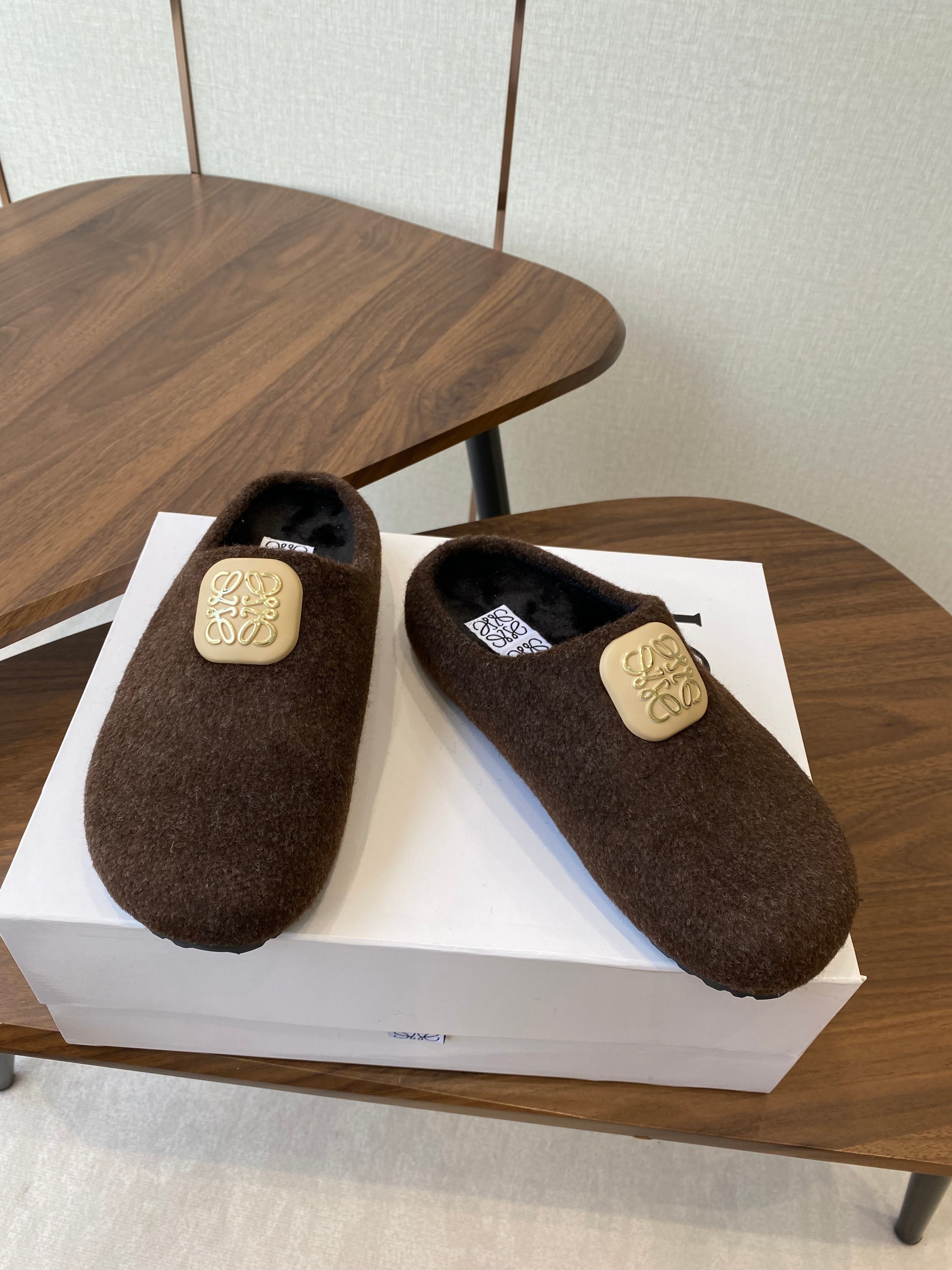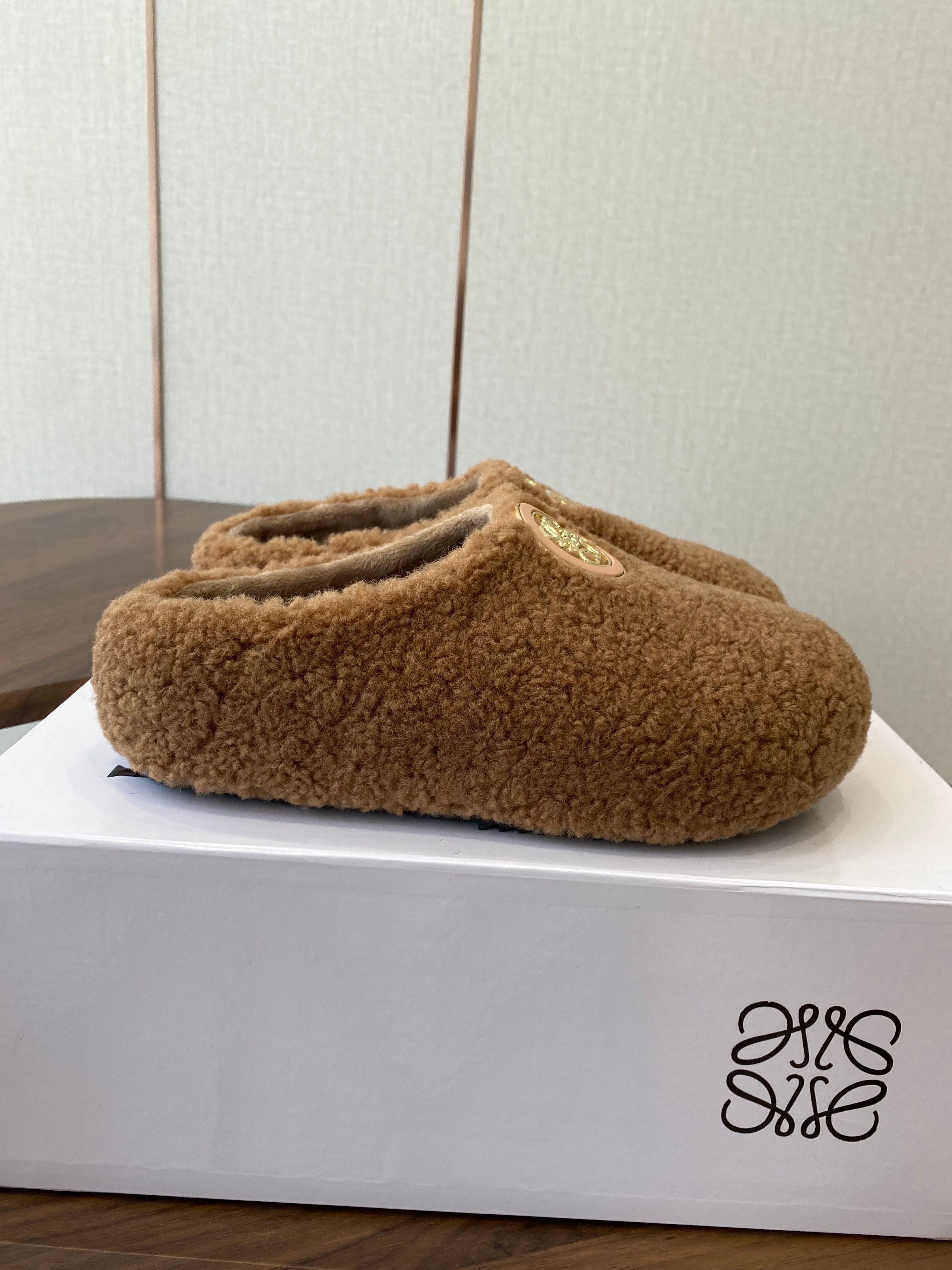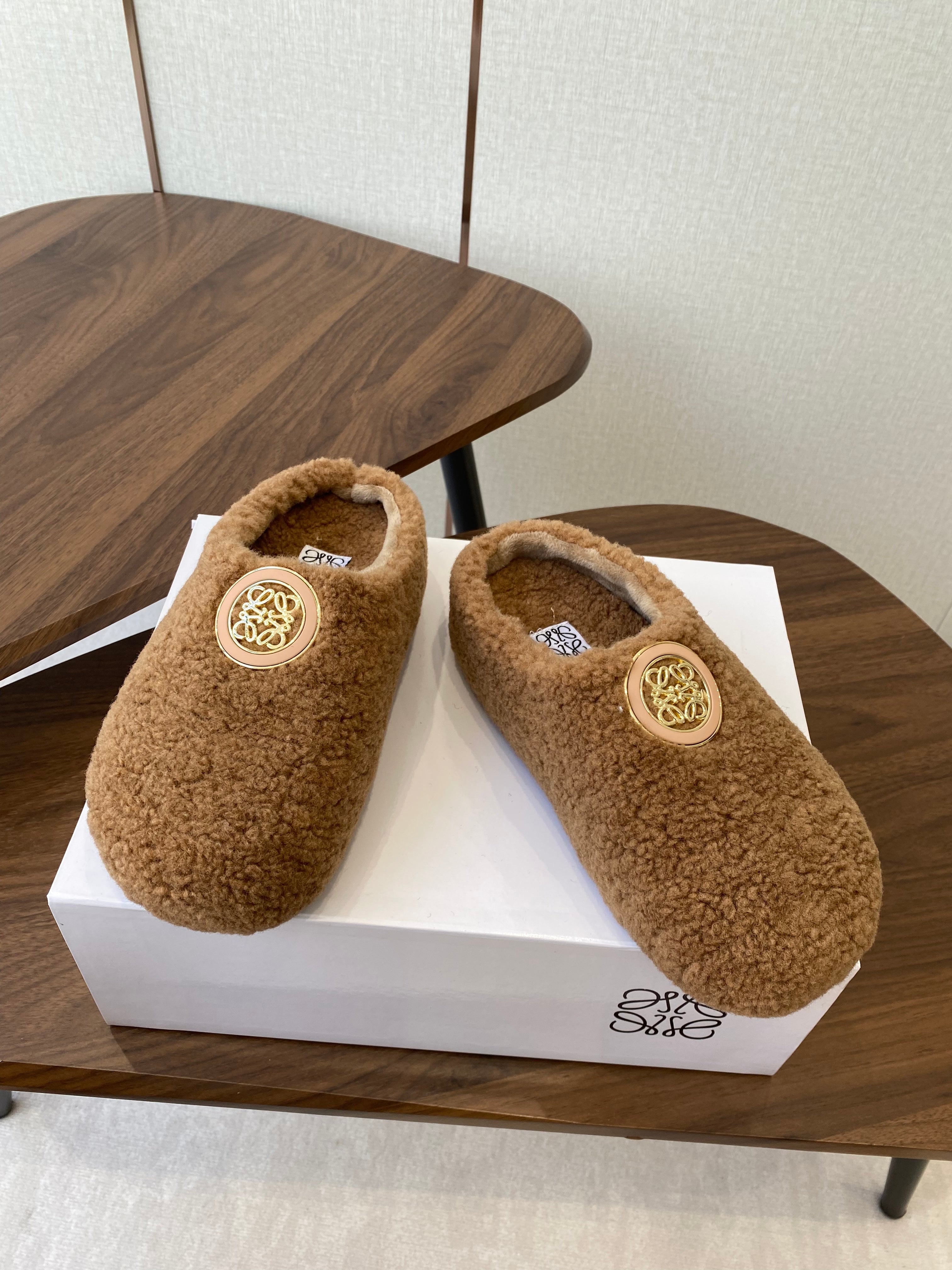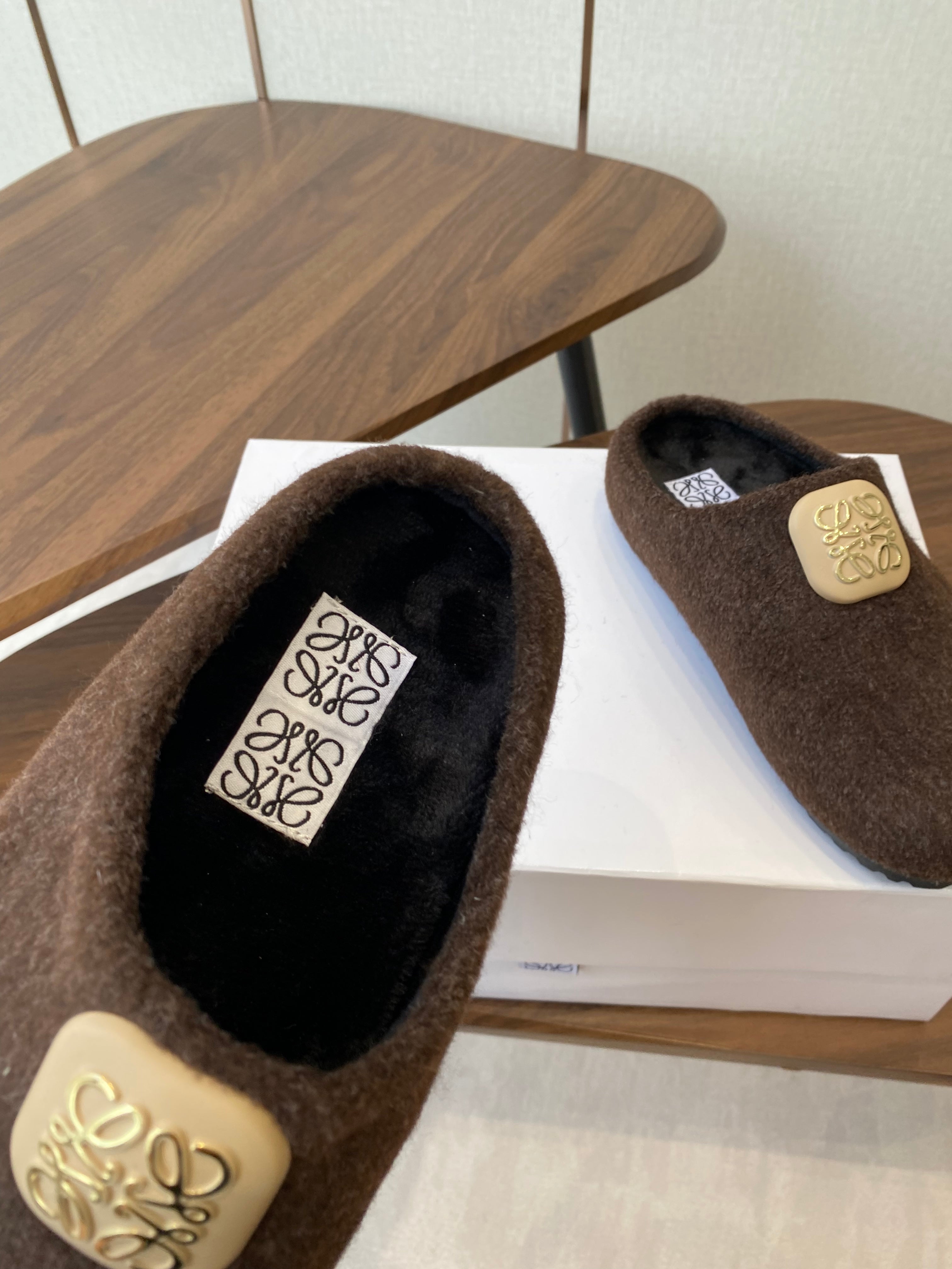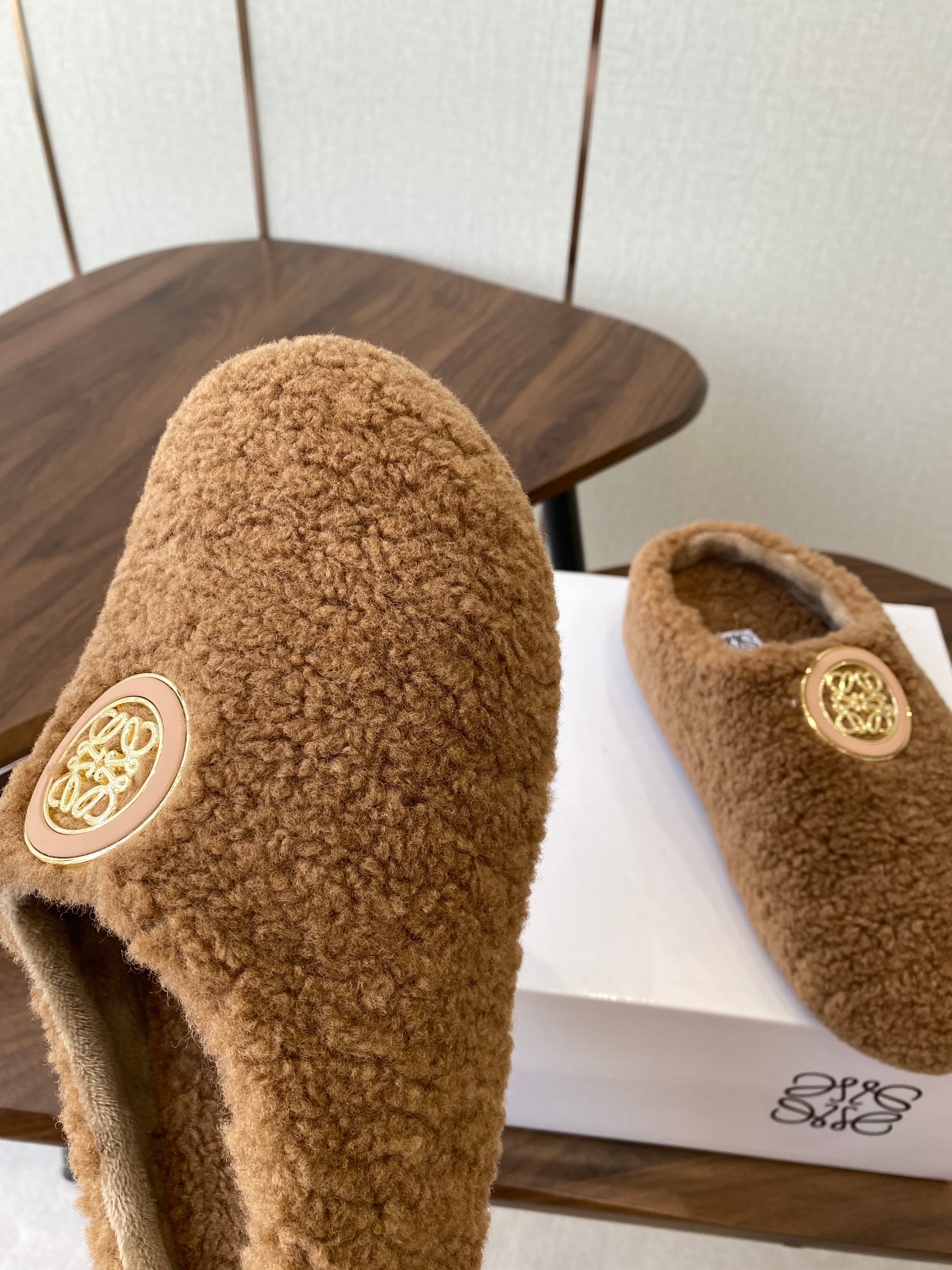 Loewe 2025 Fur Slipper Brown Beige Wool 556013
