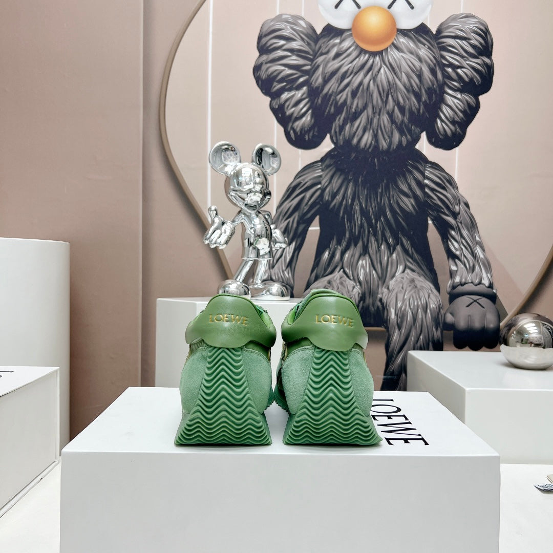 FLOW RUNNER SNEAKER IN BASIL GREEN SUEDE AND SHEEPSKIN