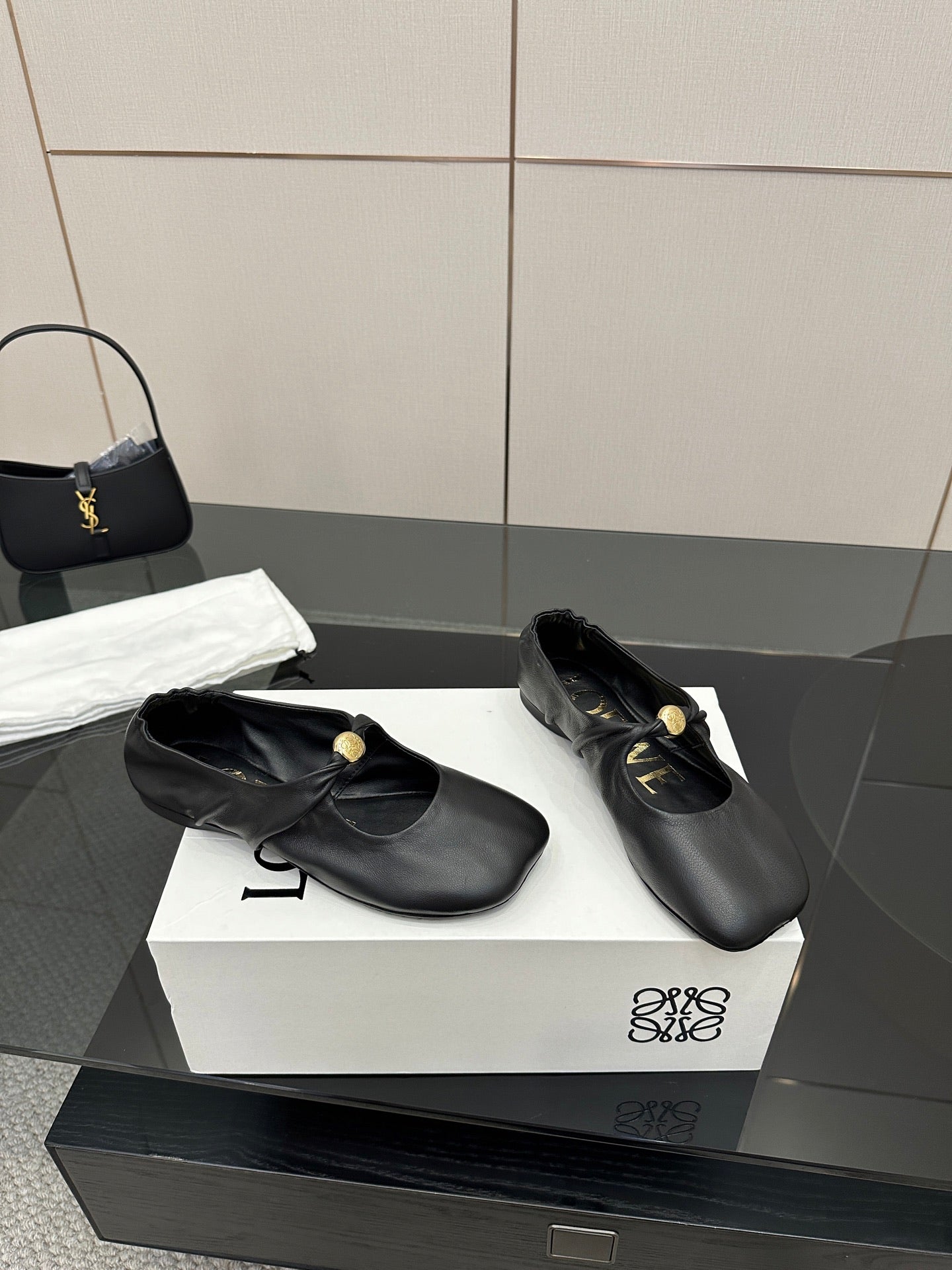 Loewe 25 Pebble Ballet Flats Black Calfskin