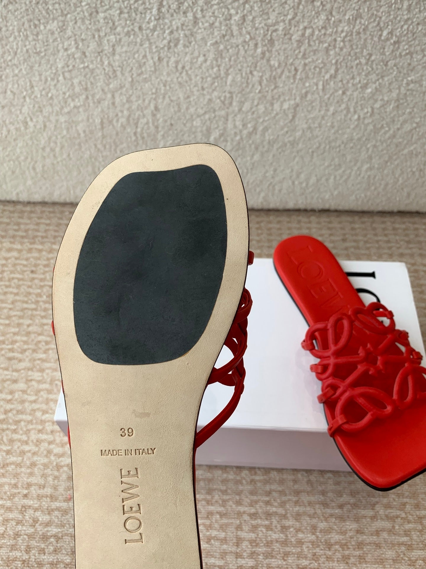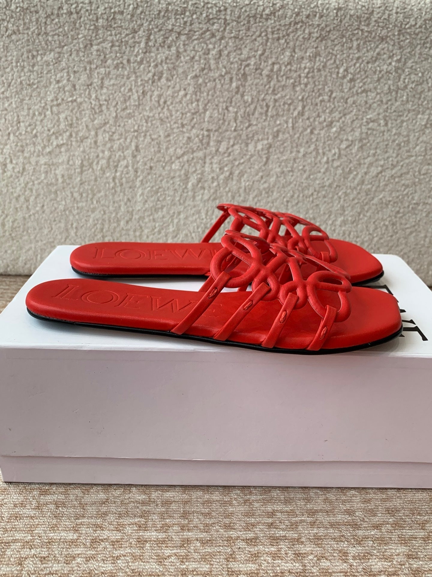 Loewe 25 Petal Anagram Slides Red Cowhide