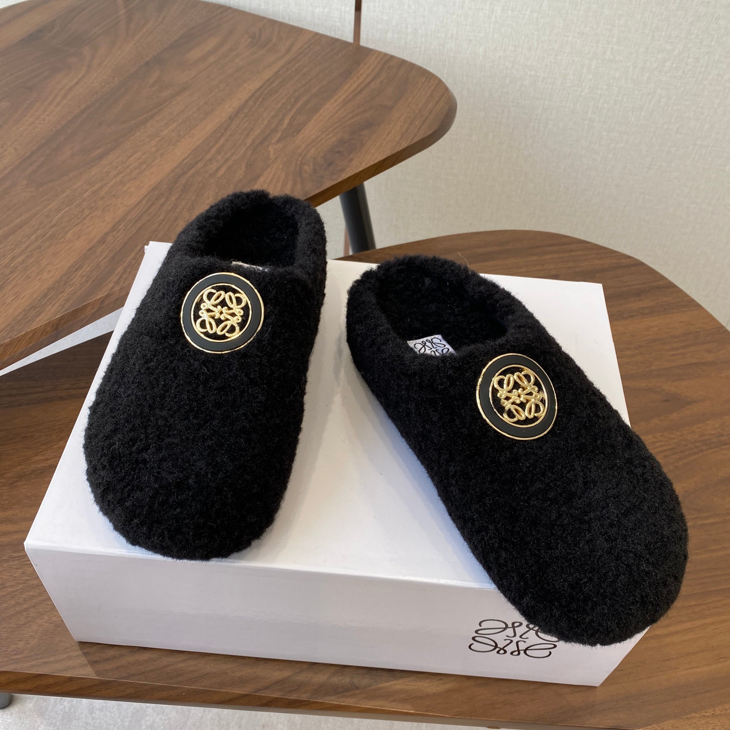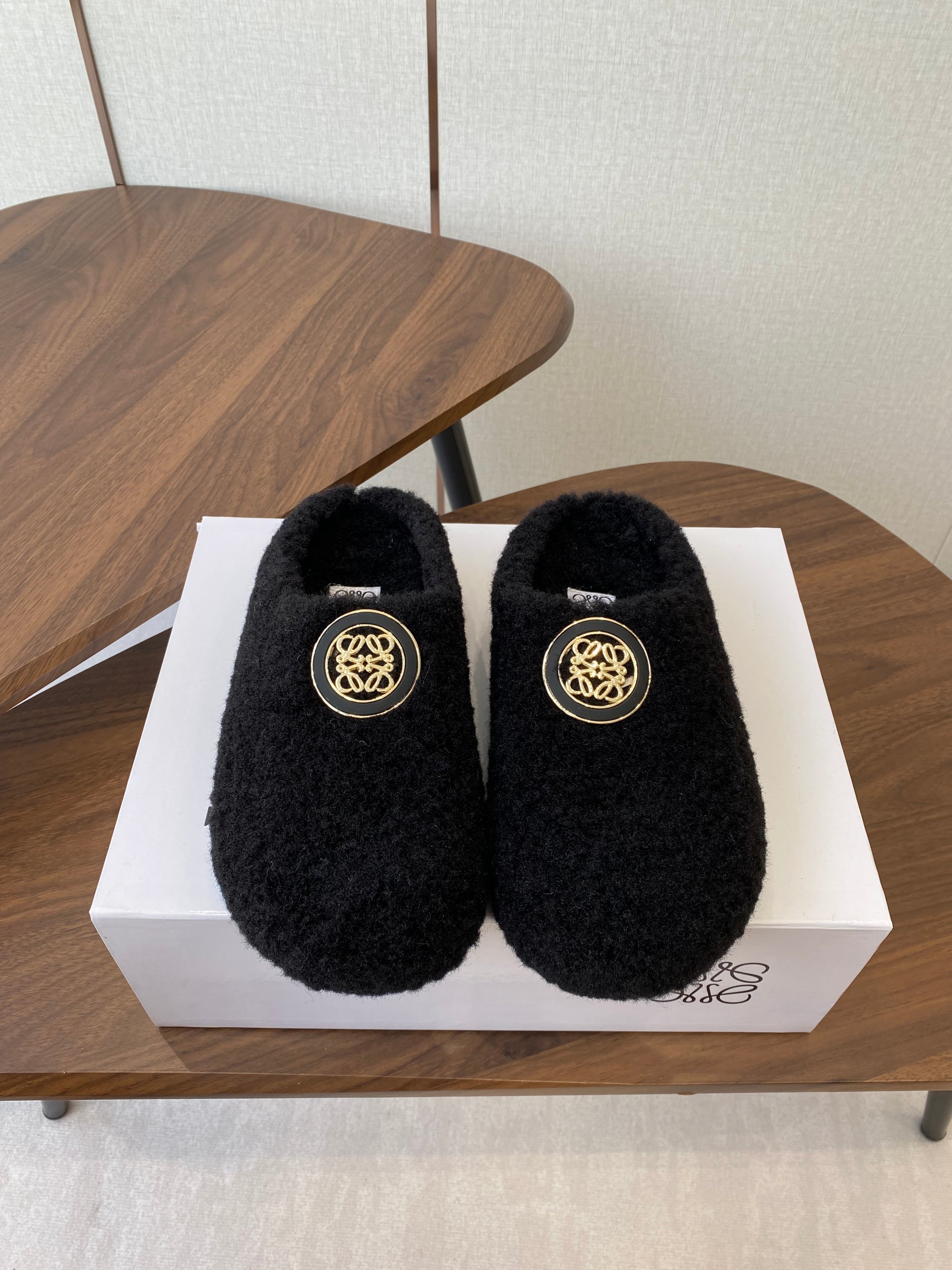 Loewe Birkenstock slippers black wool 477790