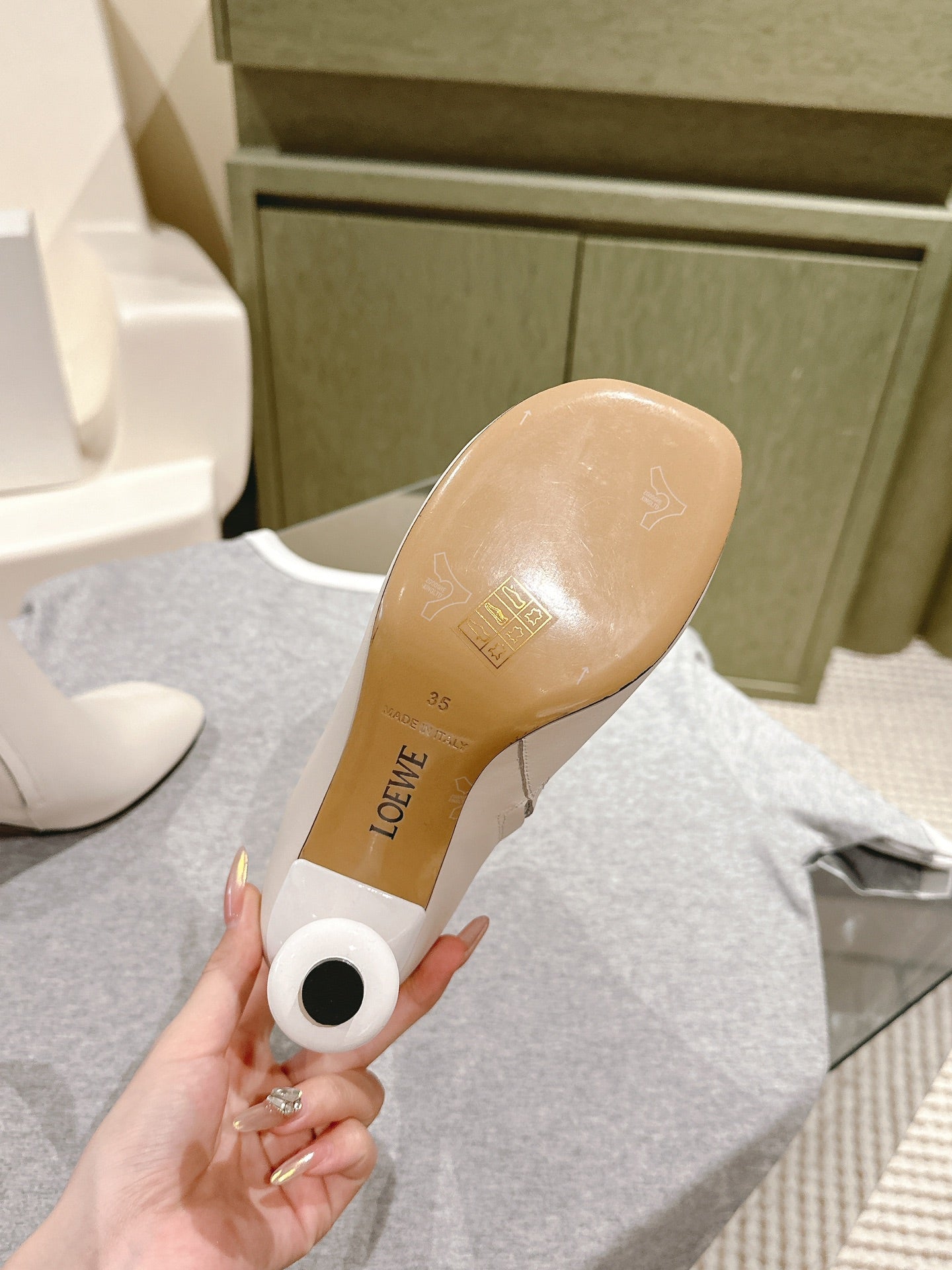 Loewe Round-Toed Boots 85mm White Mixed Sheepskin 448452