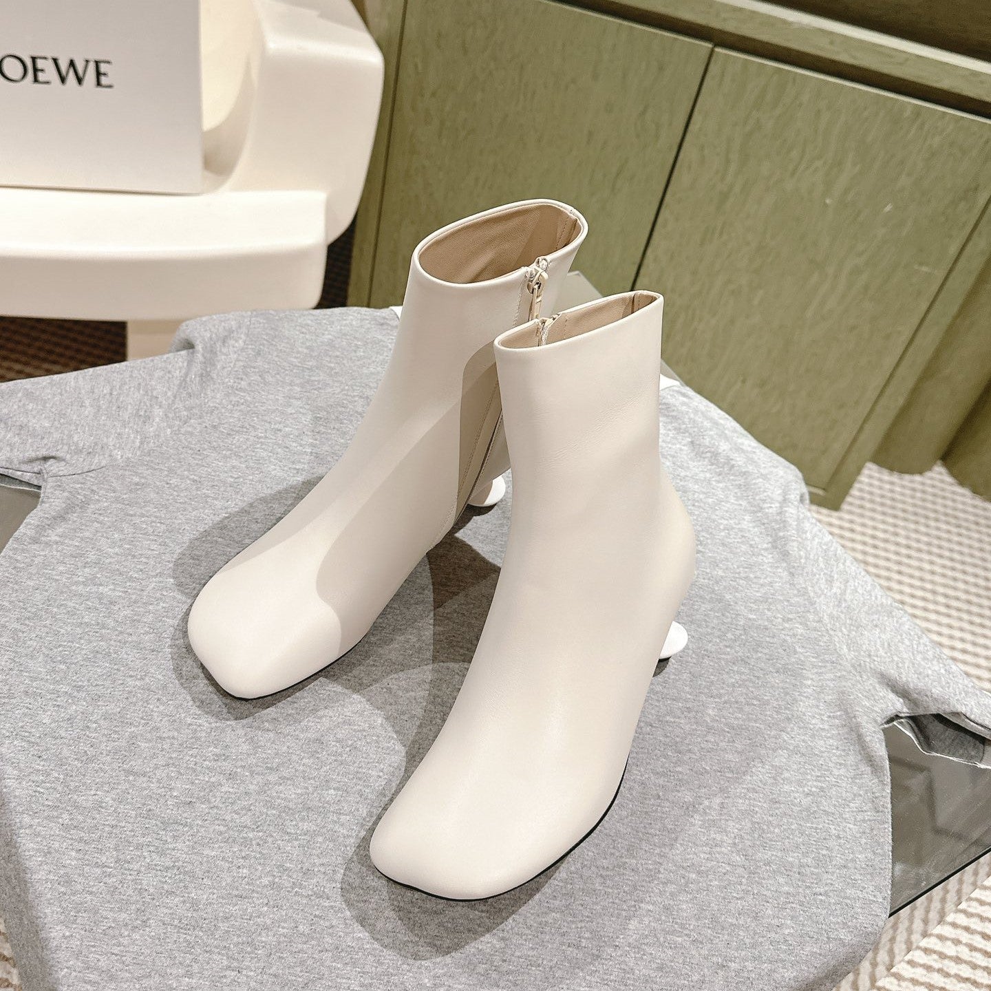 Loewe Round-Toed Boots 55mm White Mixed Sheepskin 448455