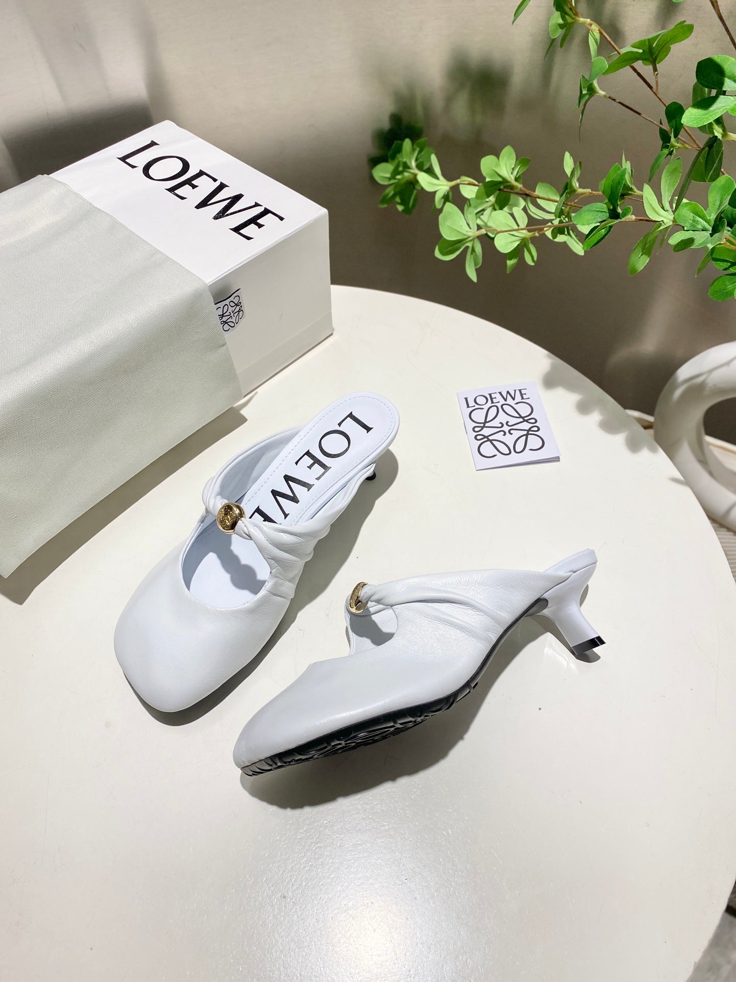 Loewe 25 Petal Slingback White Mesh Sheepskin
