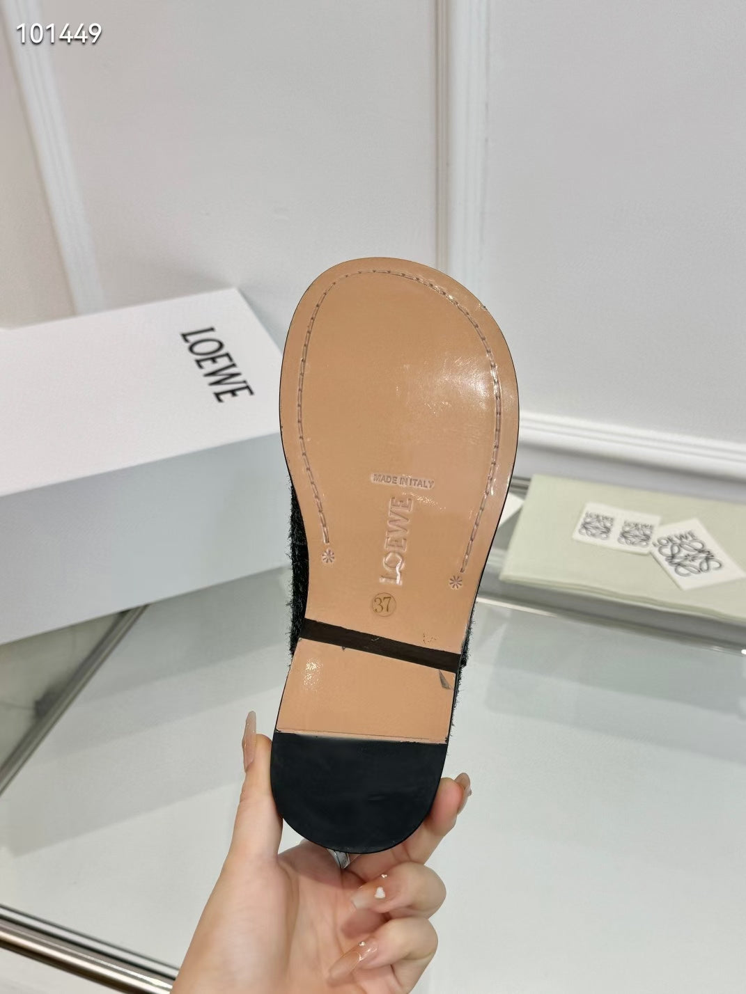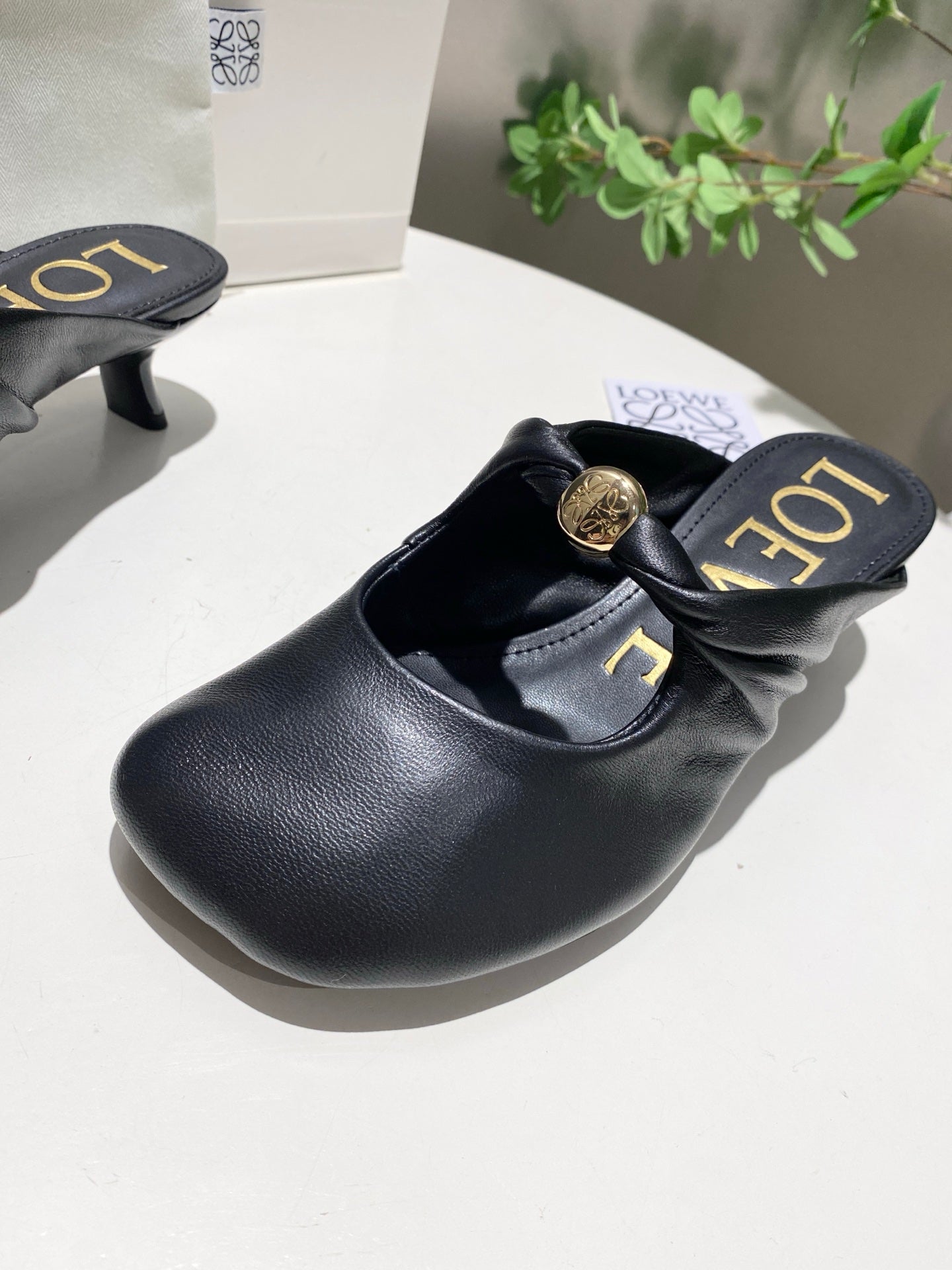 Loewe 25 Petal Slingback Black Mesh Sheepskin