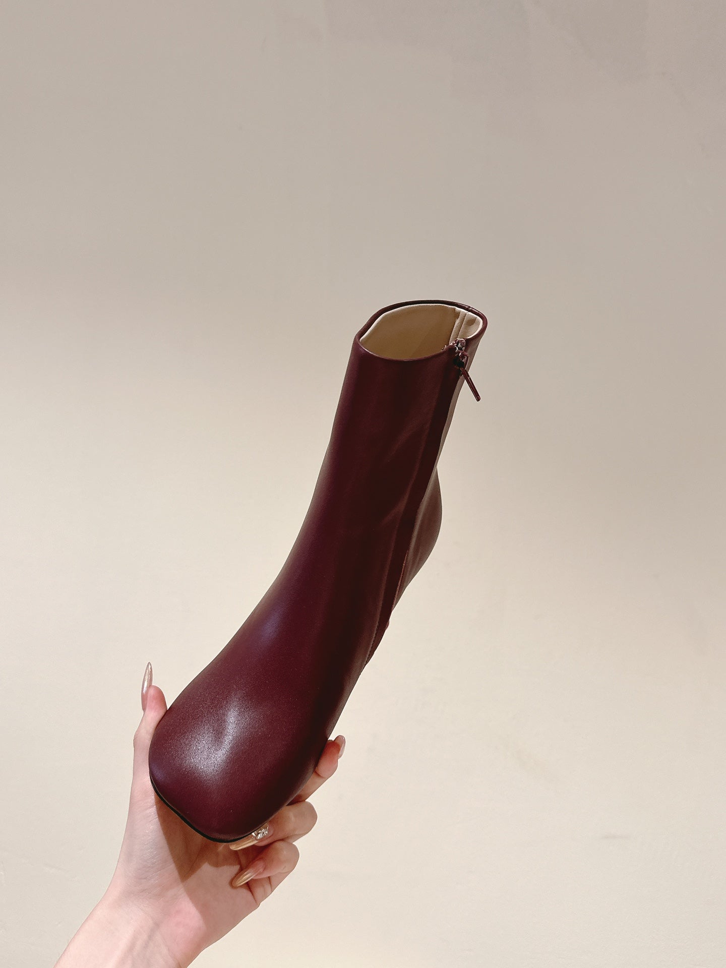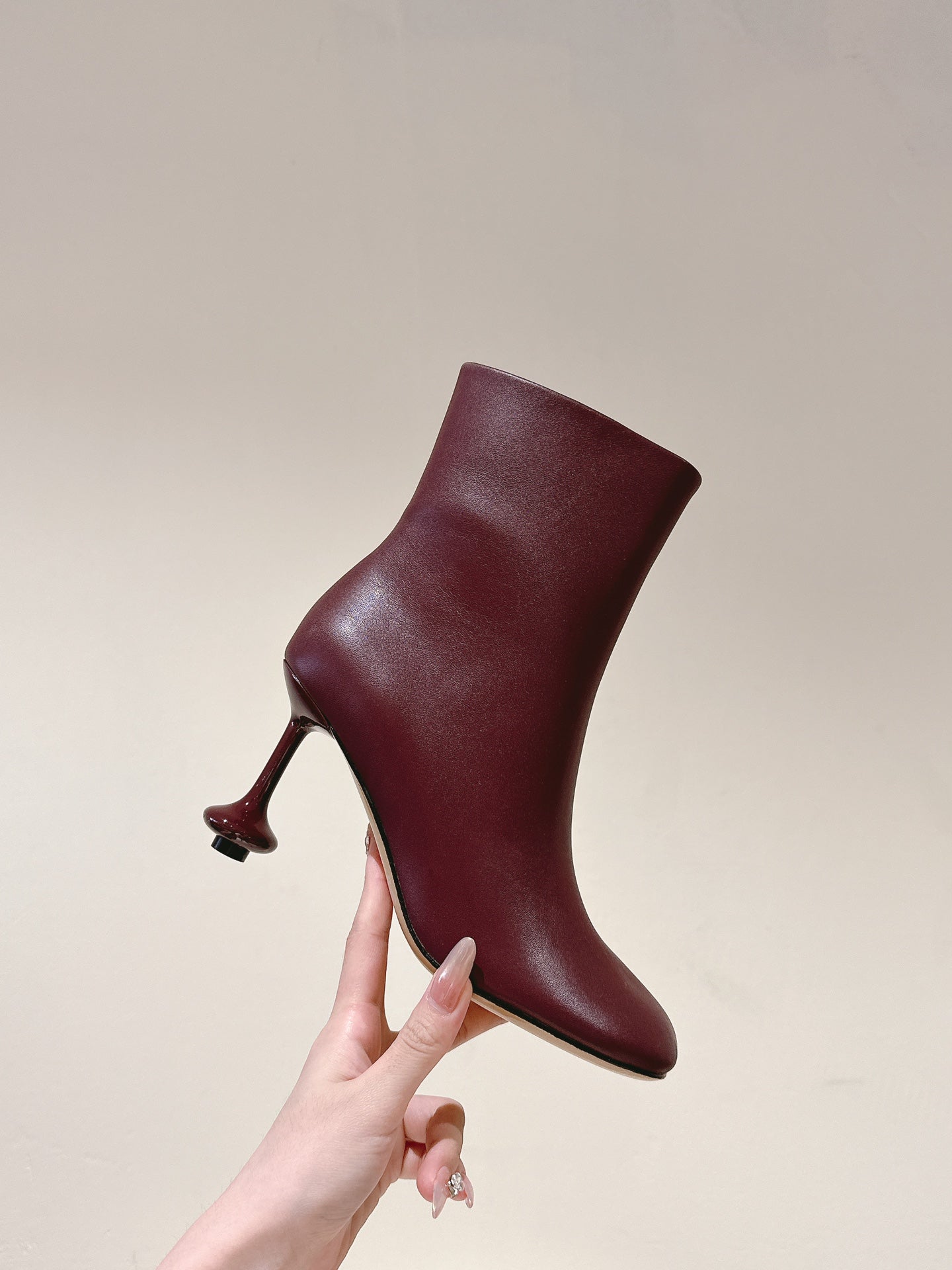 Loewe Round-Toed Boots 85mm Burgundy Mixed Sheepskin 448451