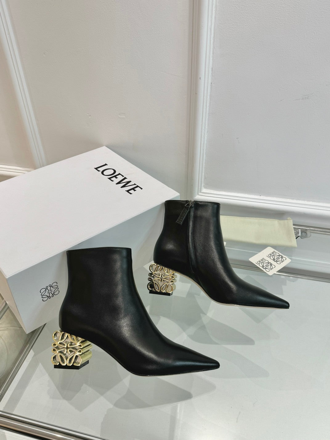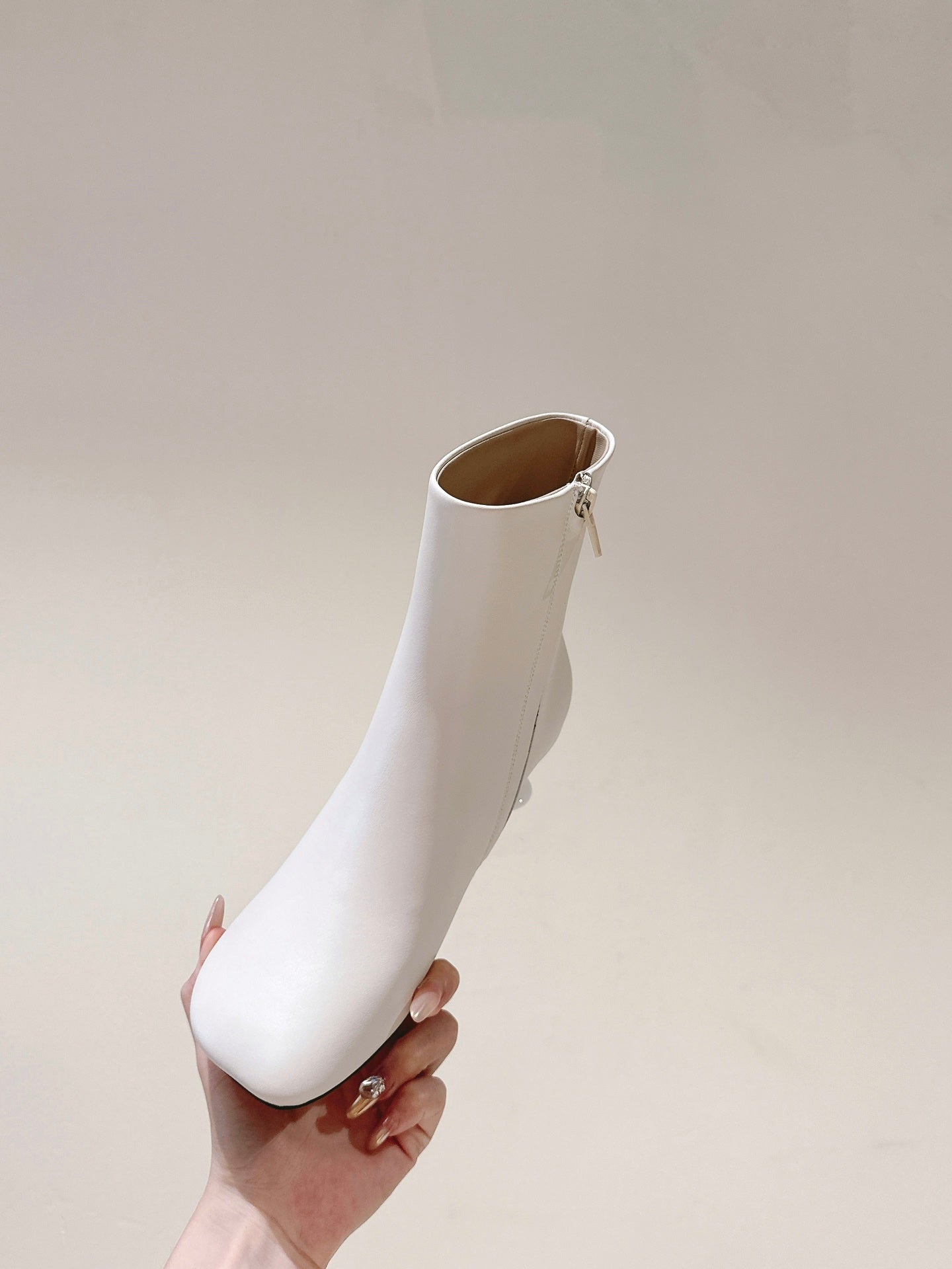 Loewe Round-Toed Boots 85mm White Mixed Sheepskin 448452