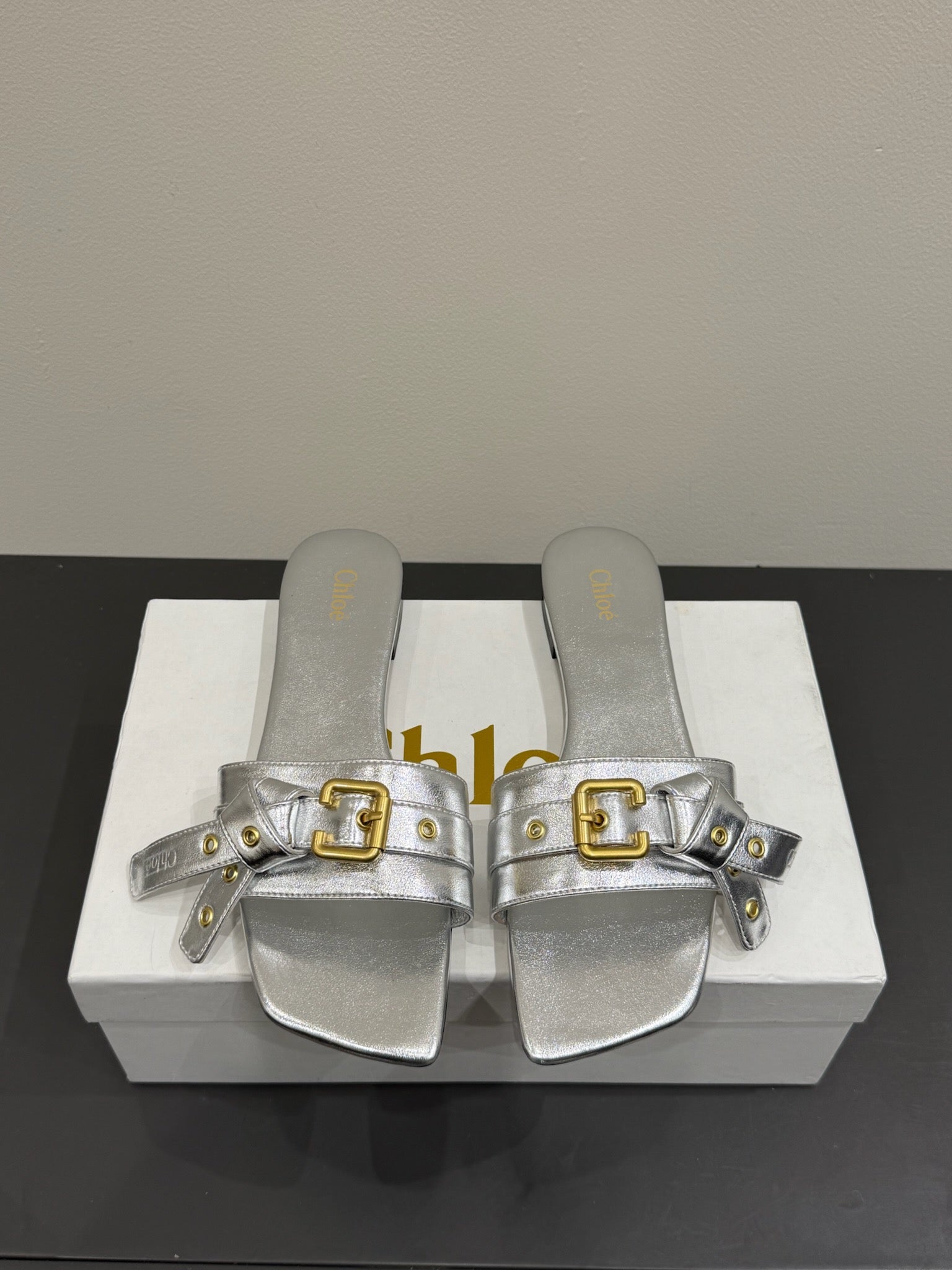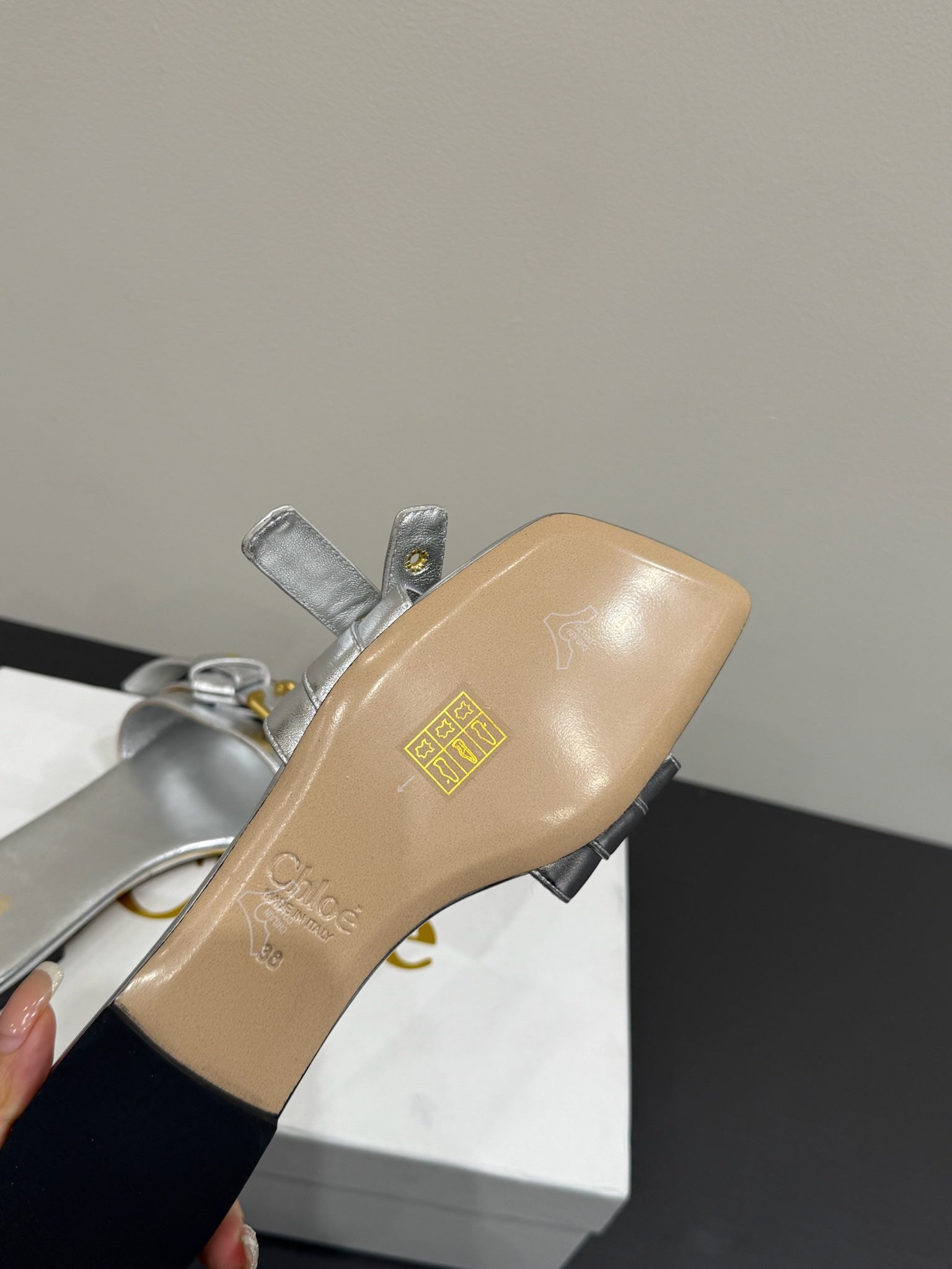 Loewe 25 Petal Bow Sandals Silver Cowhide PVC