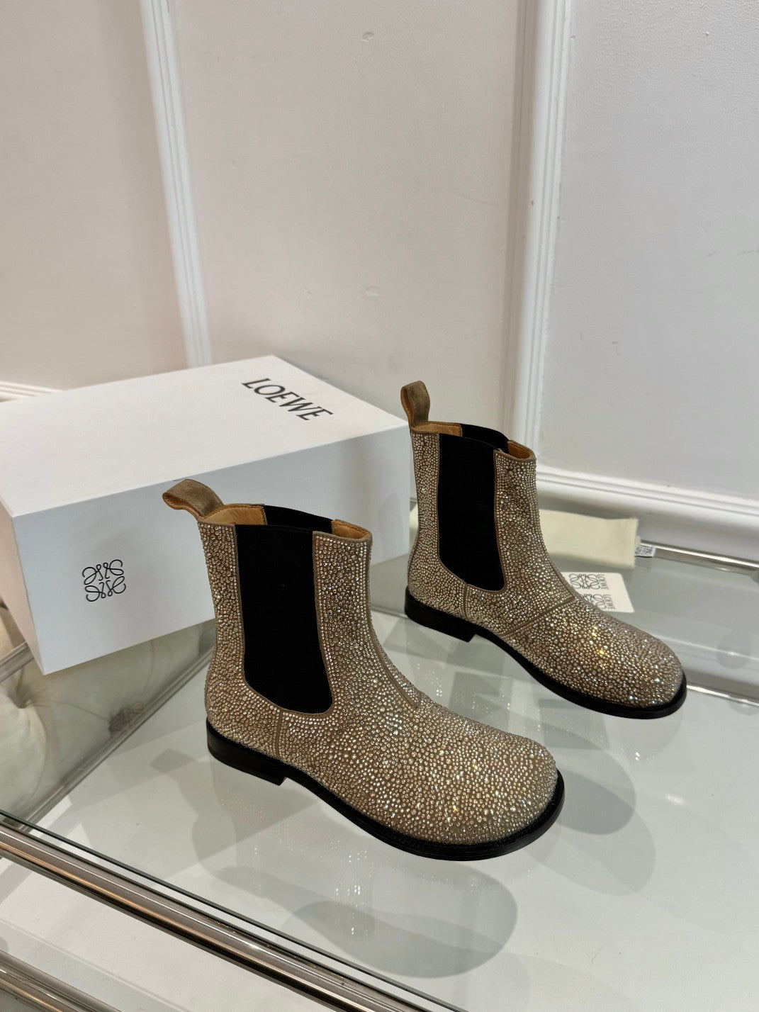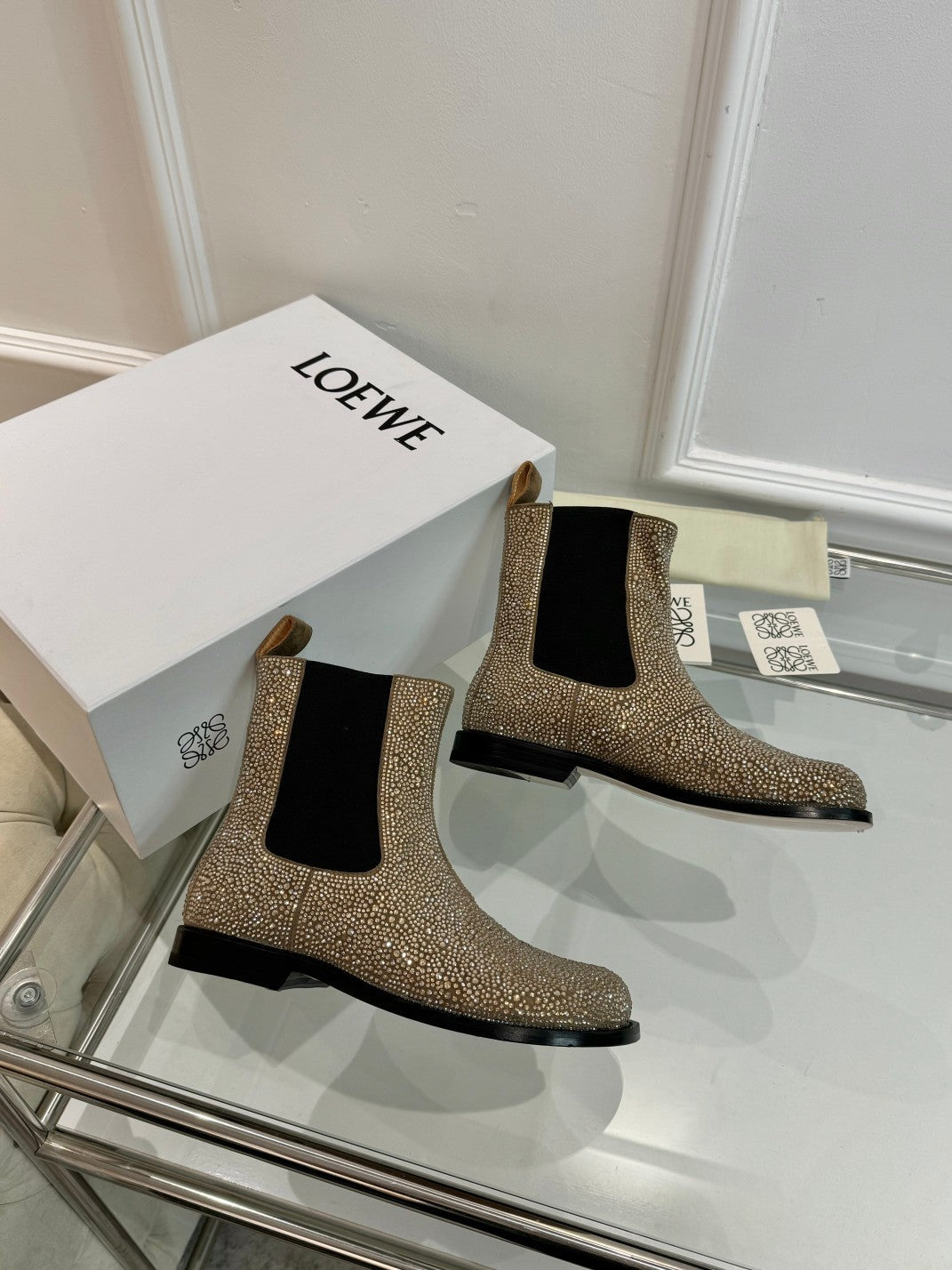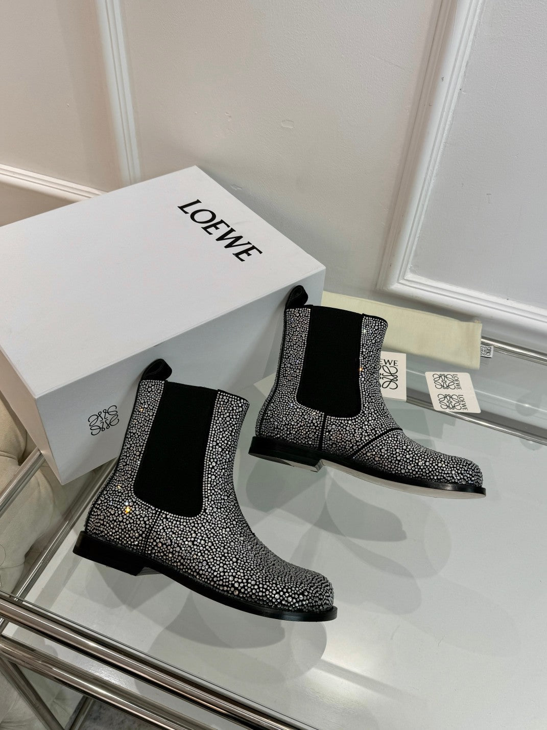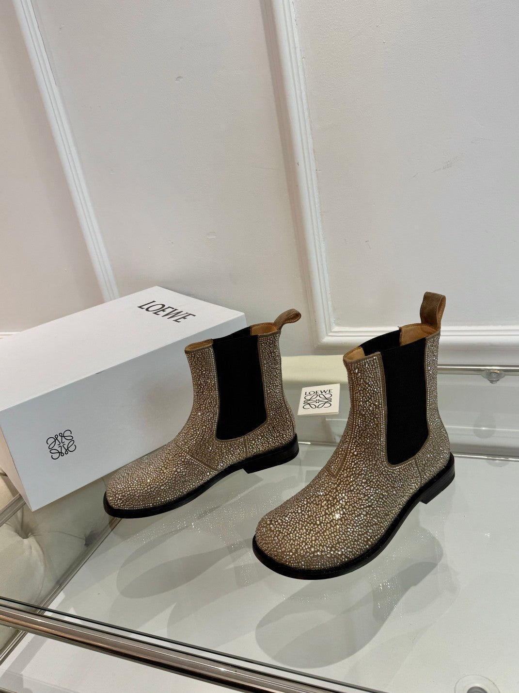 Loewe Round-Toed Boots 55mm White Mixed Sheepskin 448455
