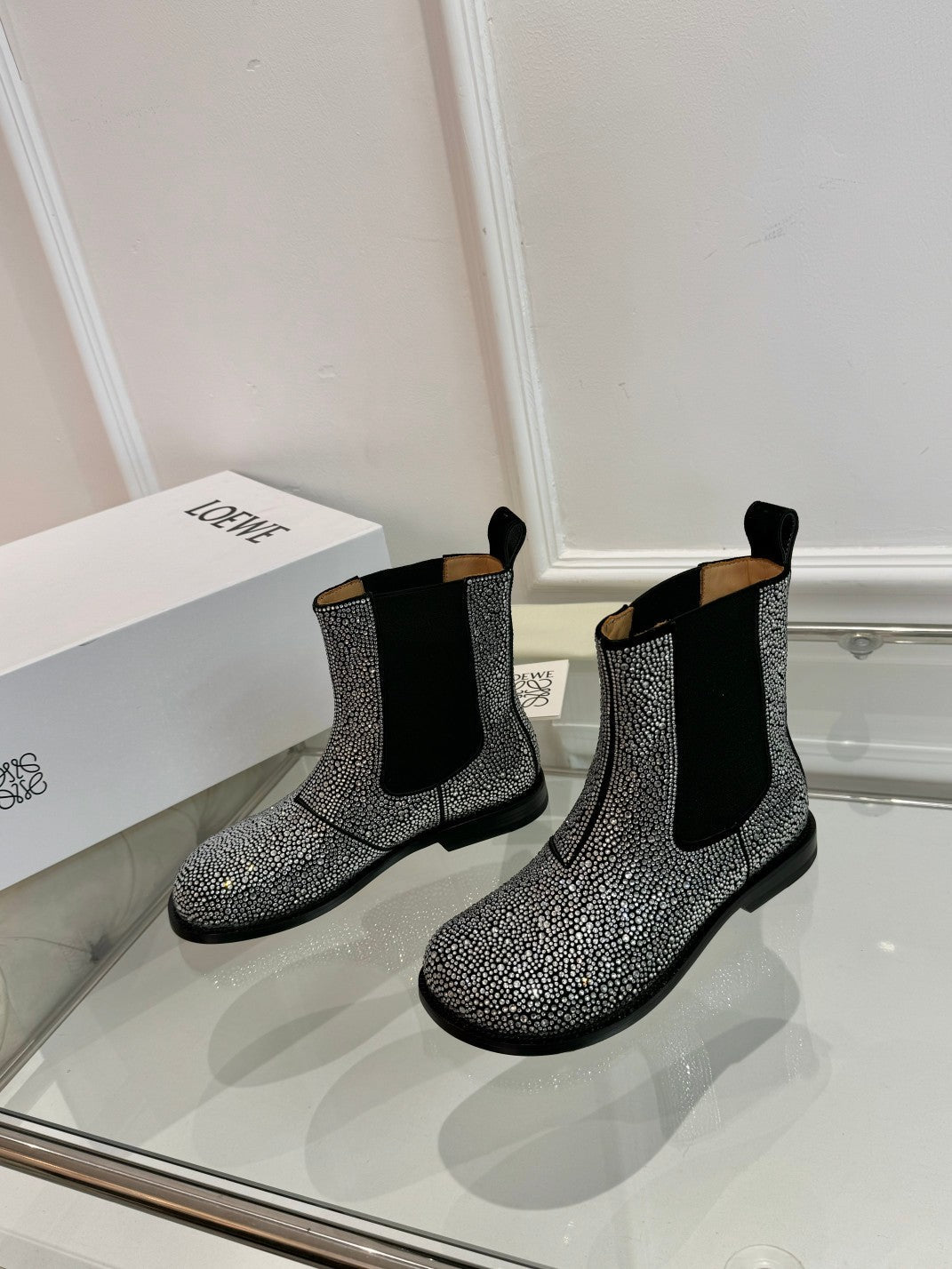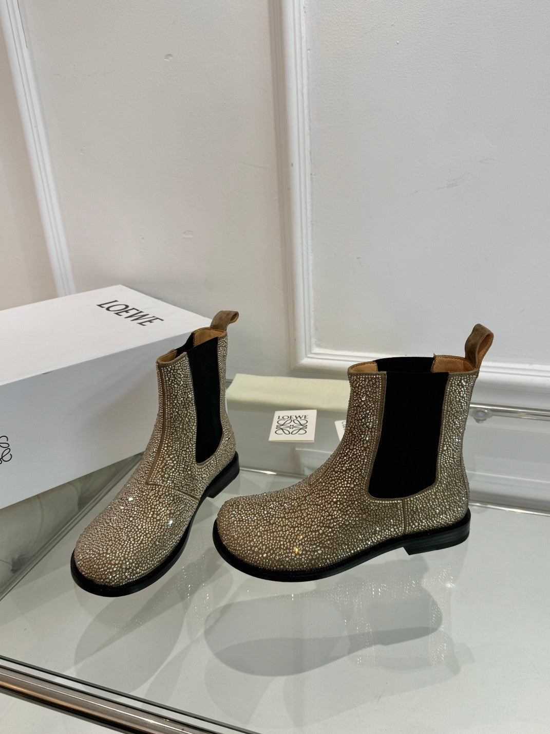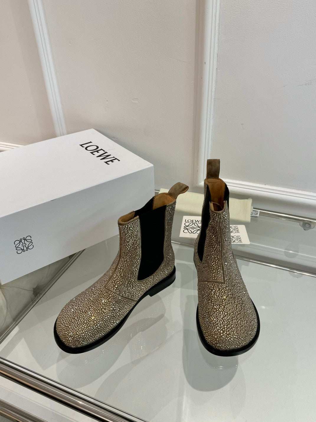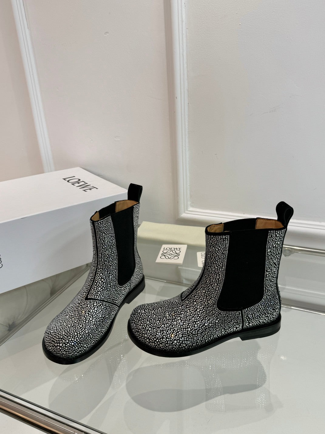 Loewe Round-Toed Boots 55mm White Mixed Sheepskin 448455