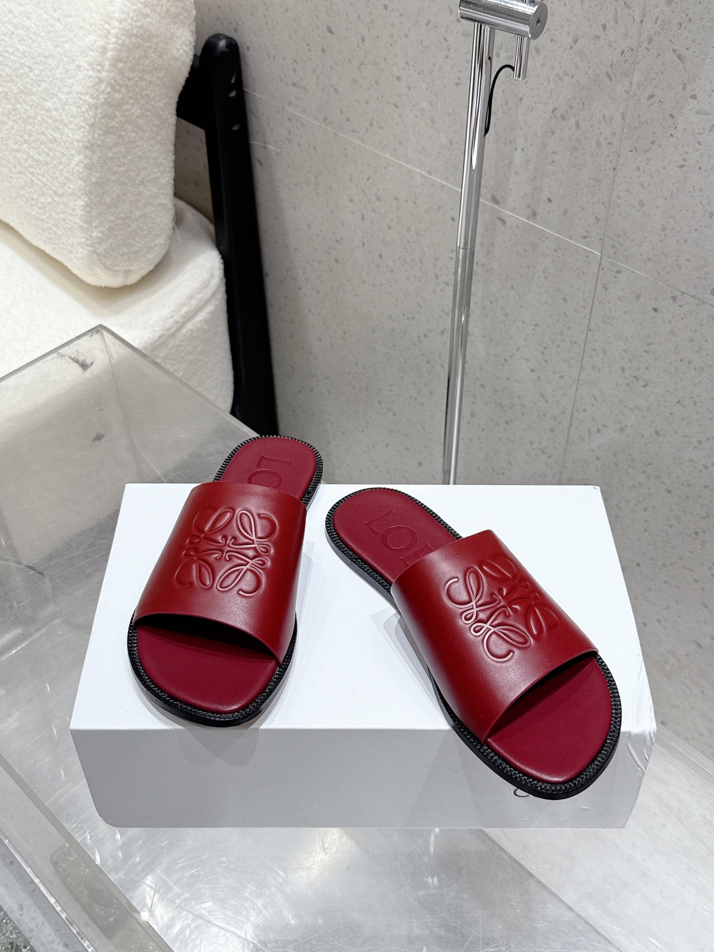 Loewe 25 Petal Anagram Slide 45mm Red Sheepskin 321068