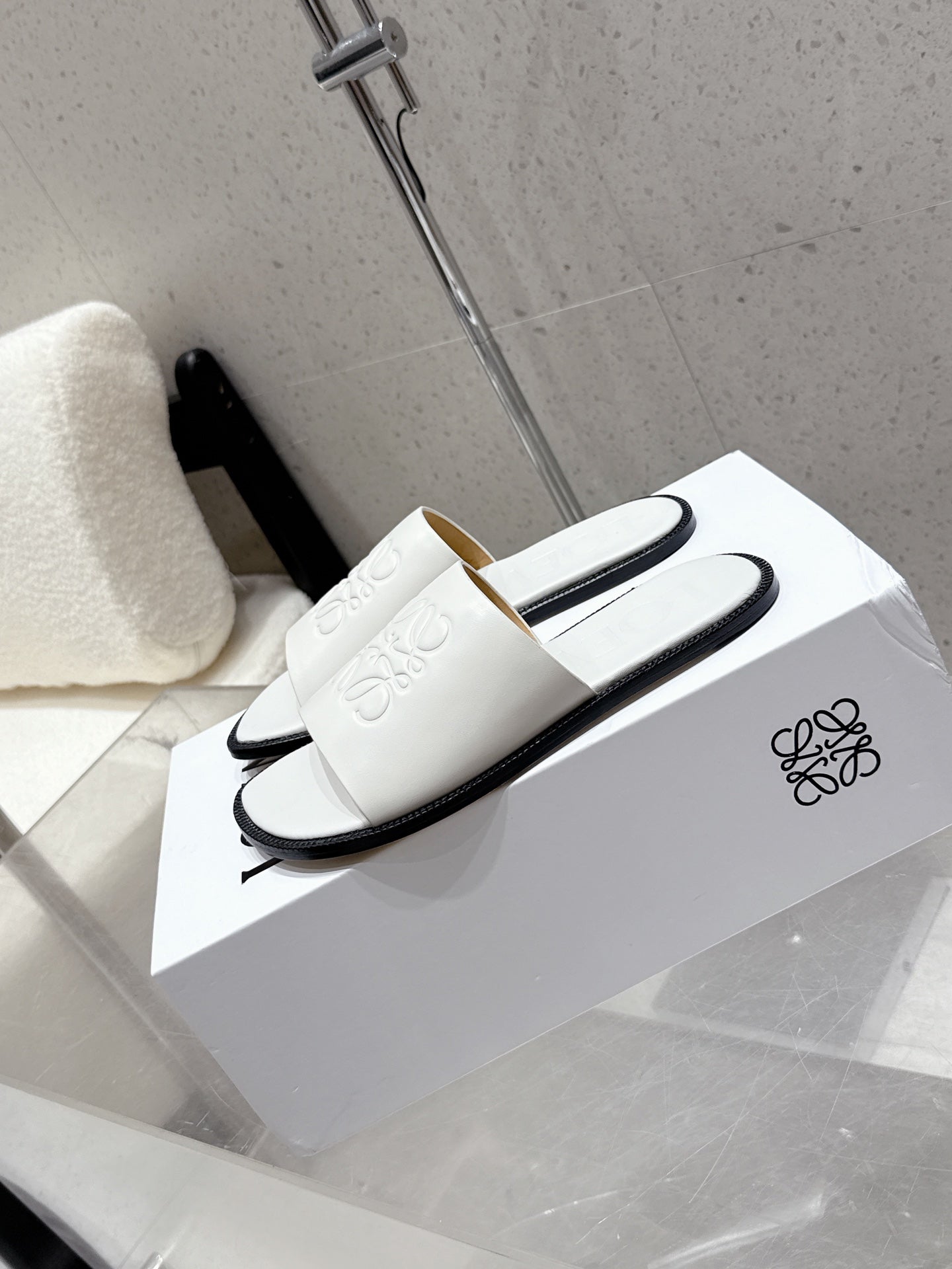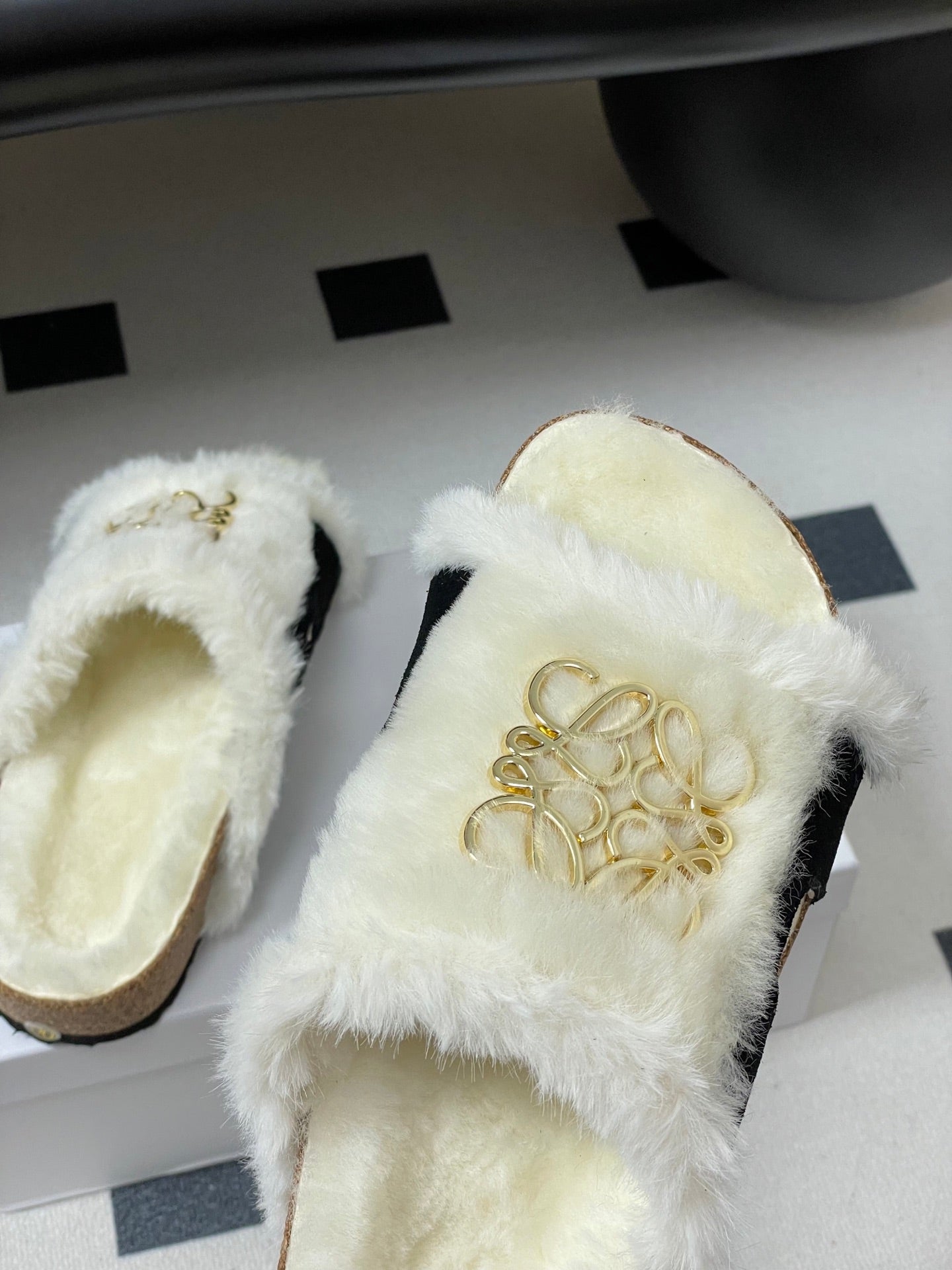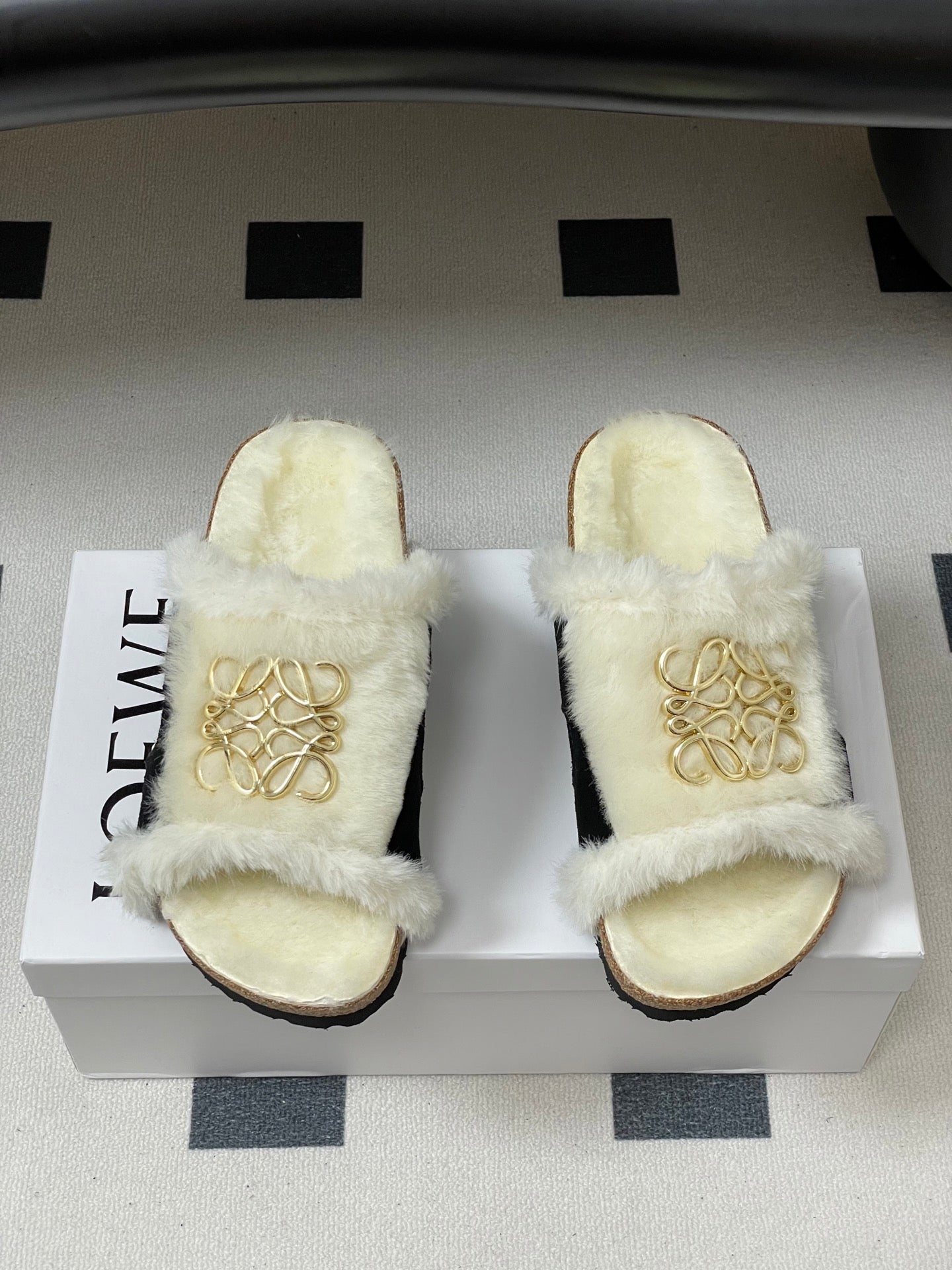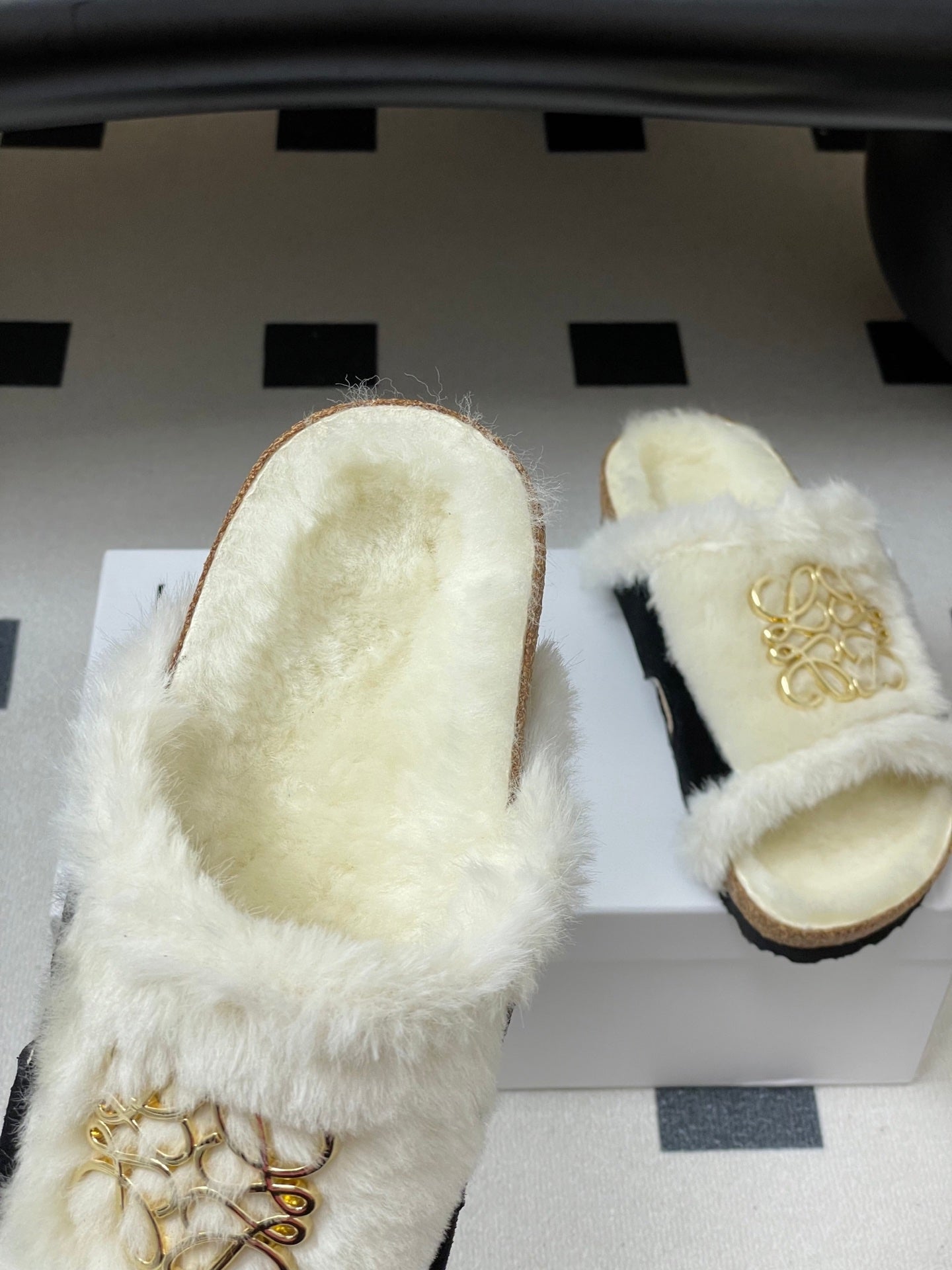 Loewe 25 Petal Anagram Slide 45mm White Sheepskin