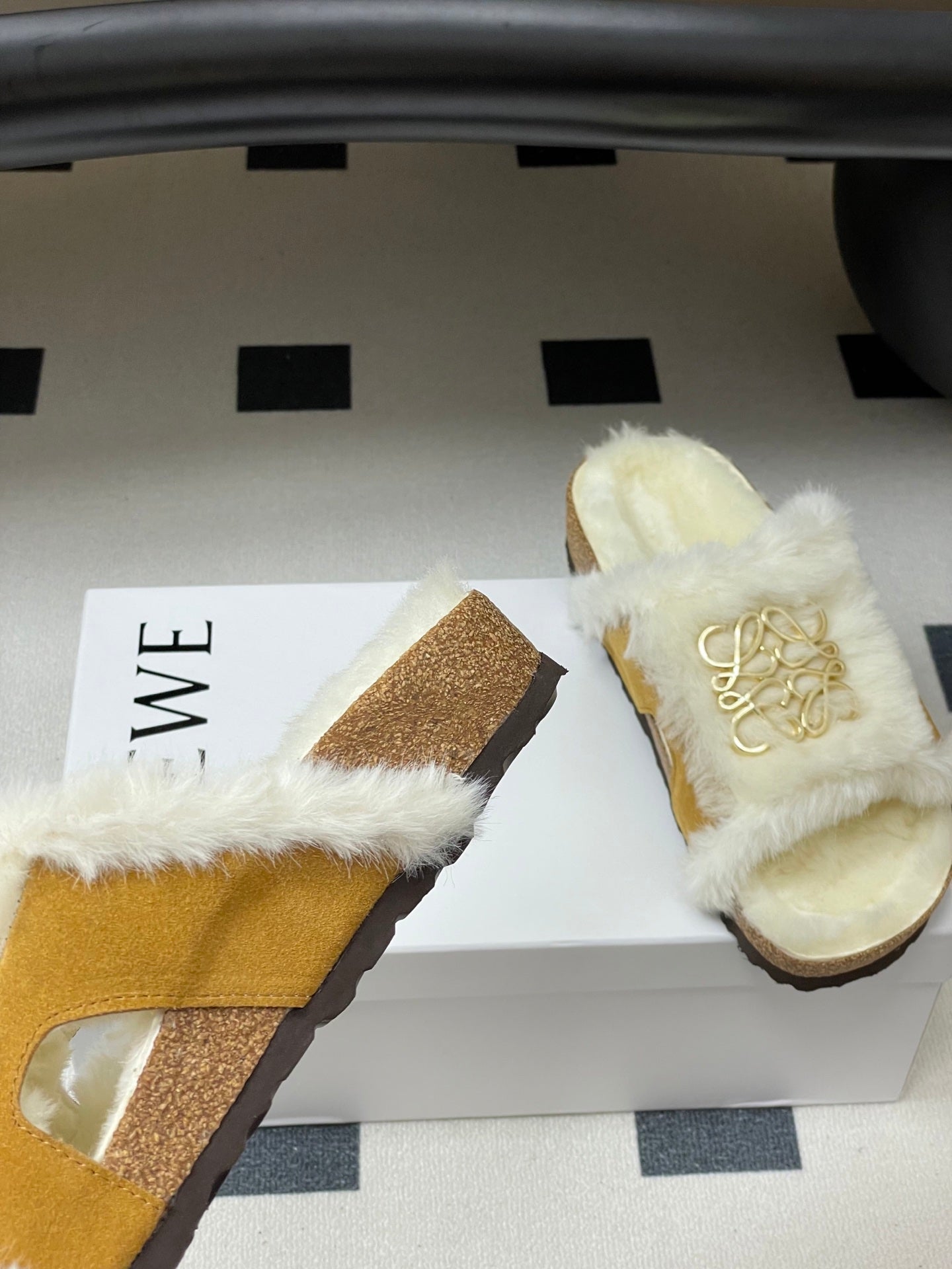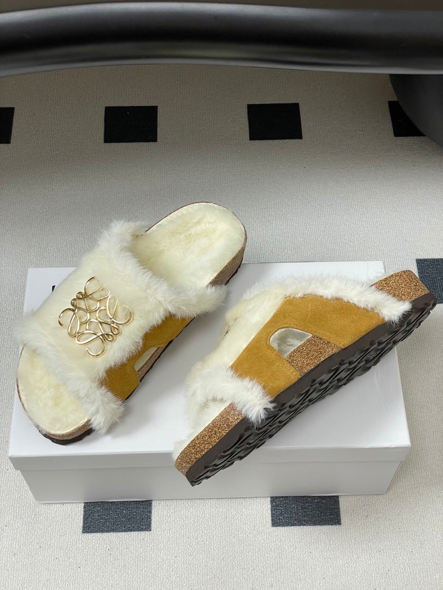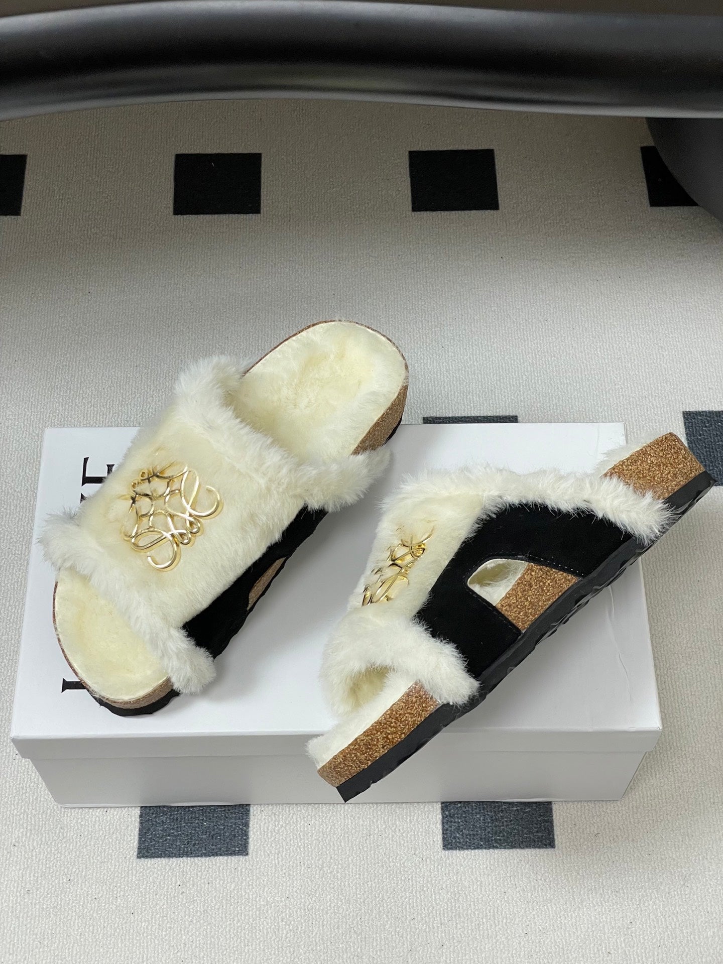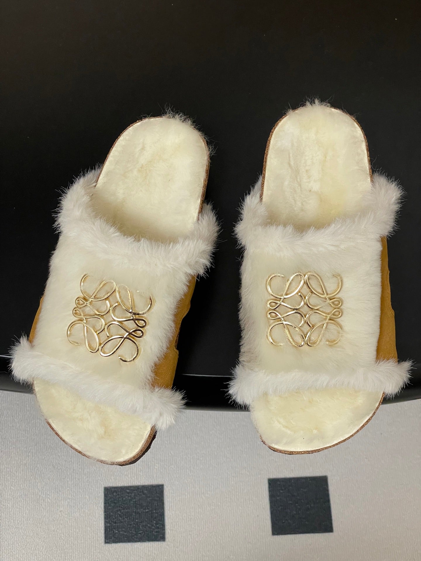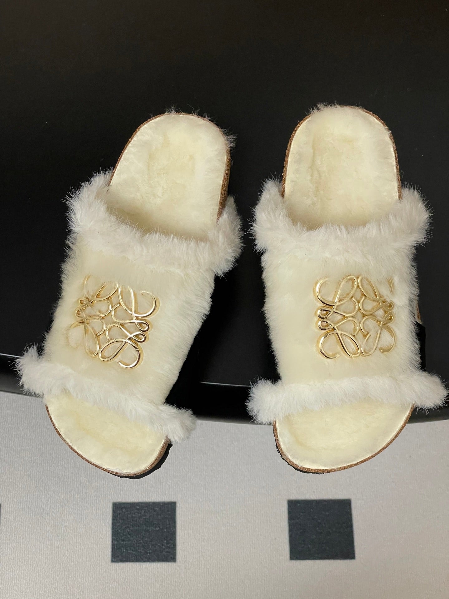 Loewe 25 Petal Anagram Slide 45mm White Sheepskin