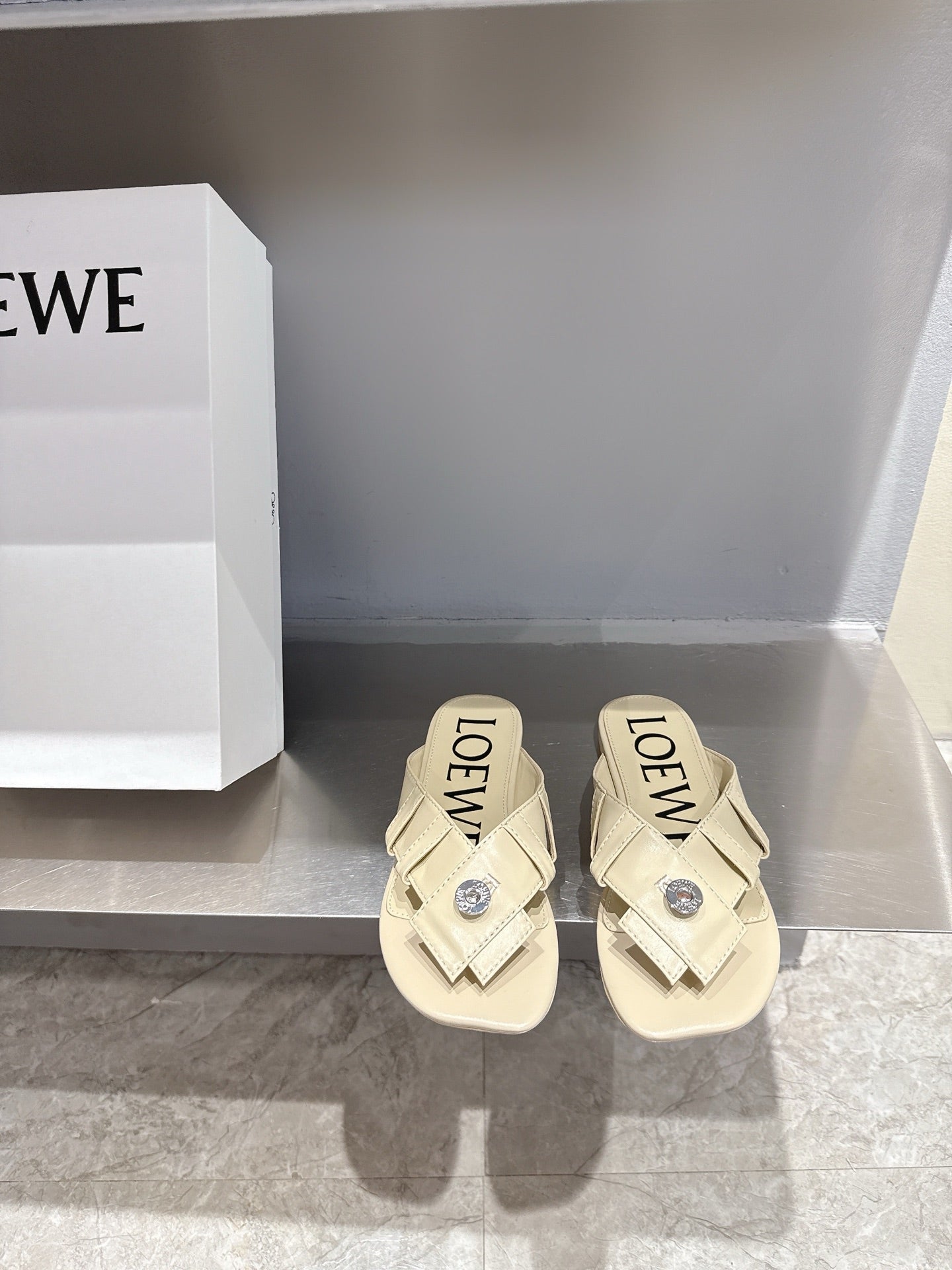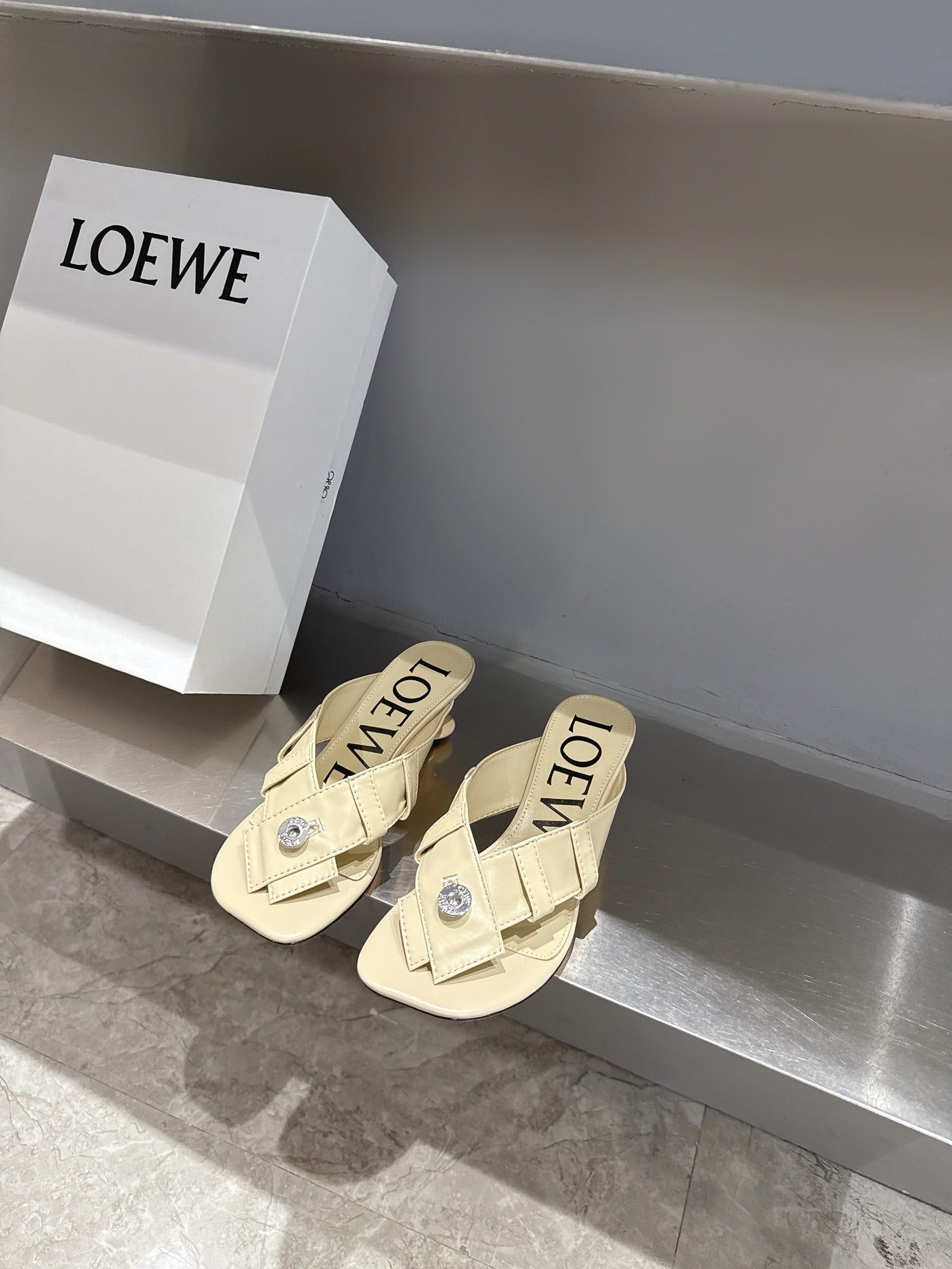Loewe 25 Petal Slingback Beige Mesh Sheepskin