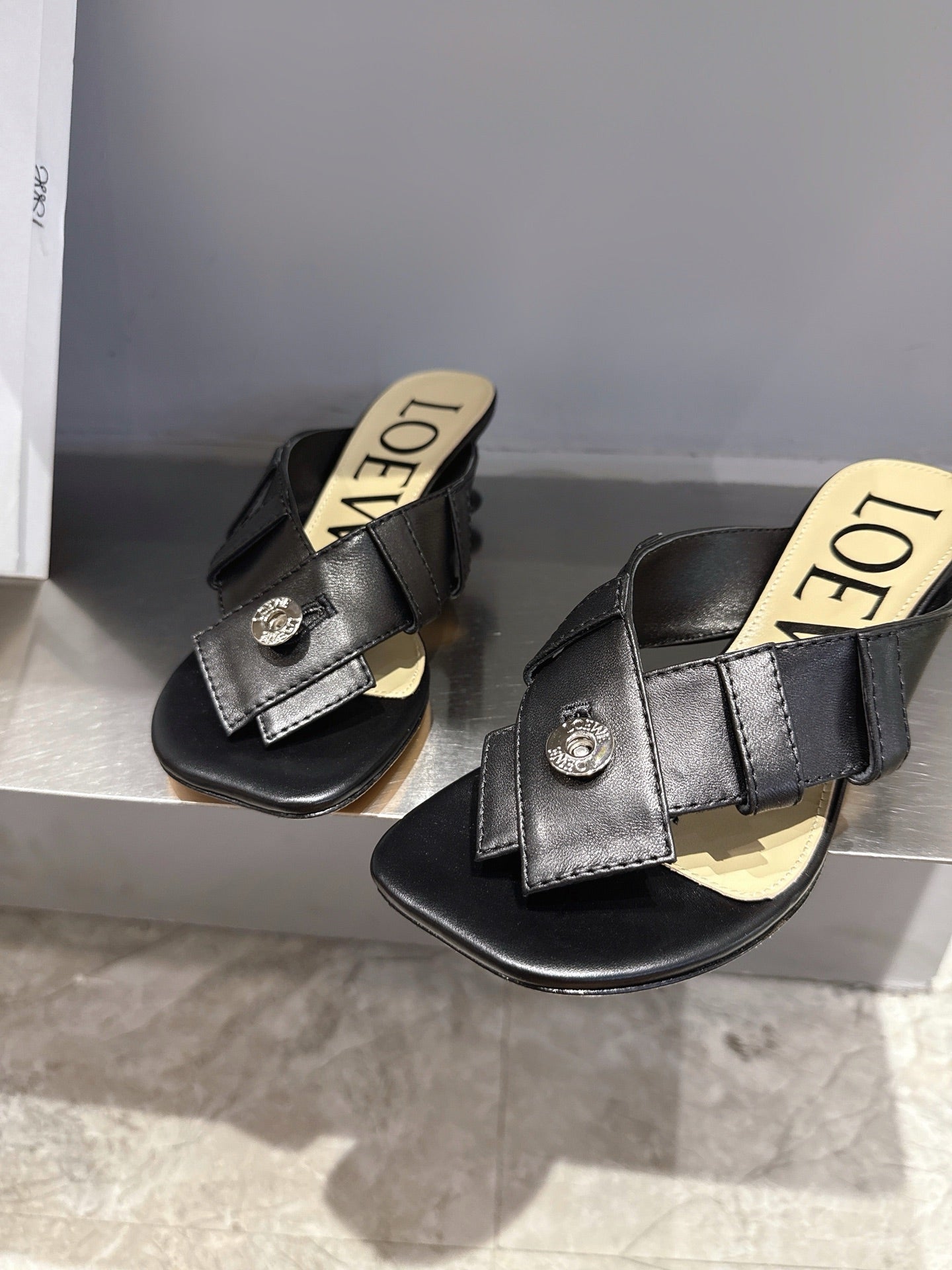 Loewe 25 Pebble Slide Black Calfskin 325329