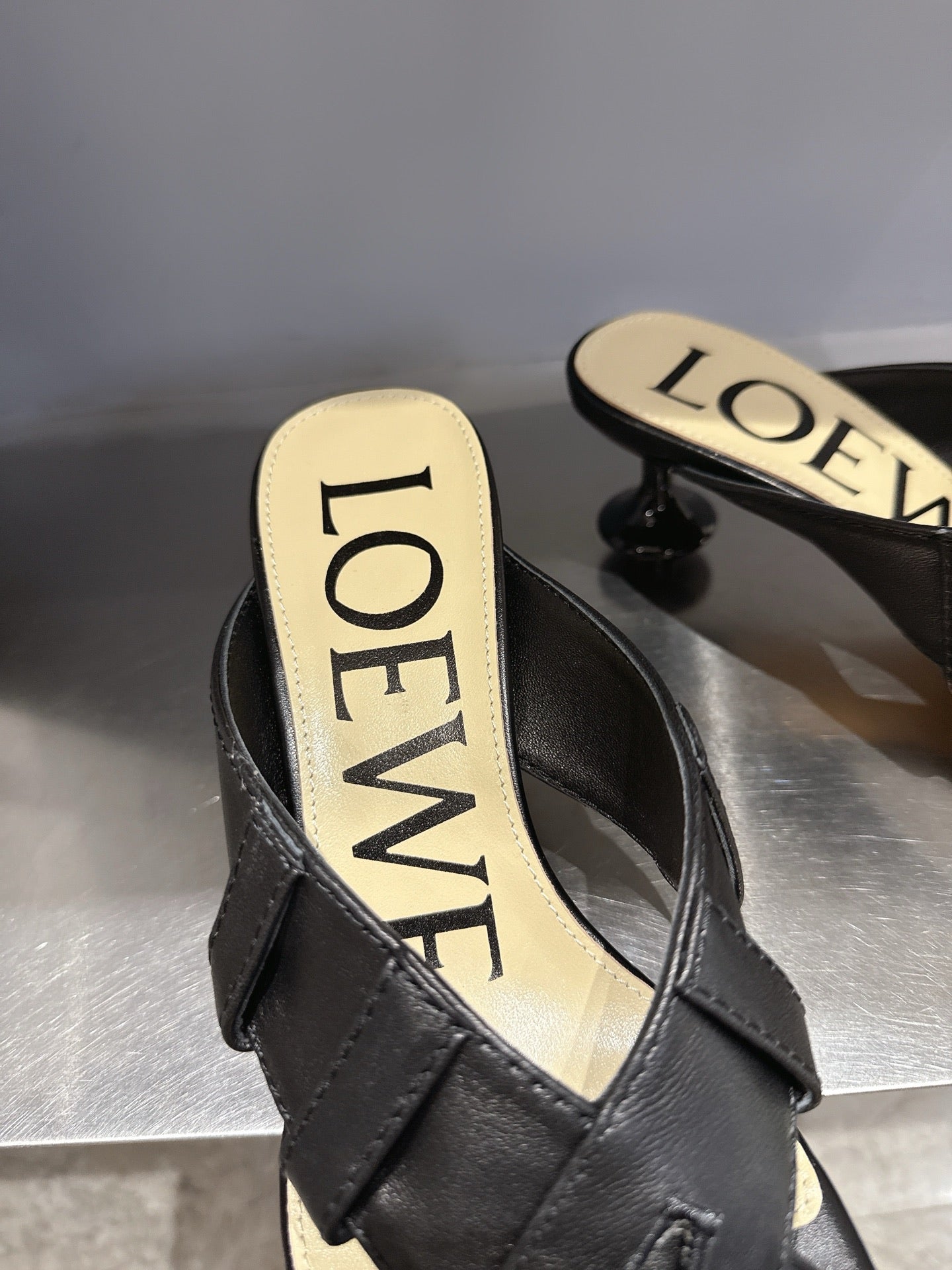 Loewe 25 Toy Panta Toe Thong 5cm Black Sheepskin