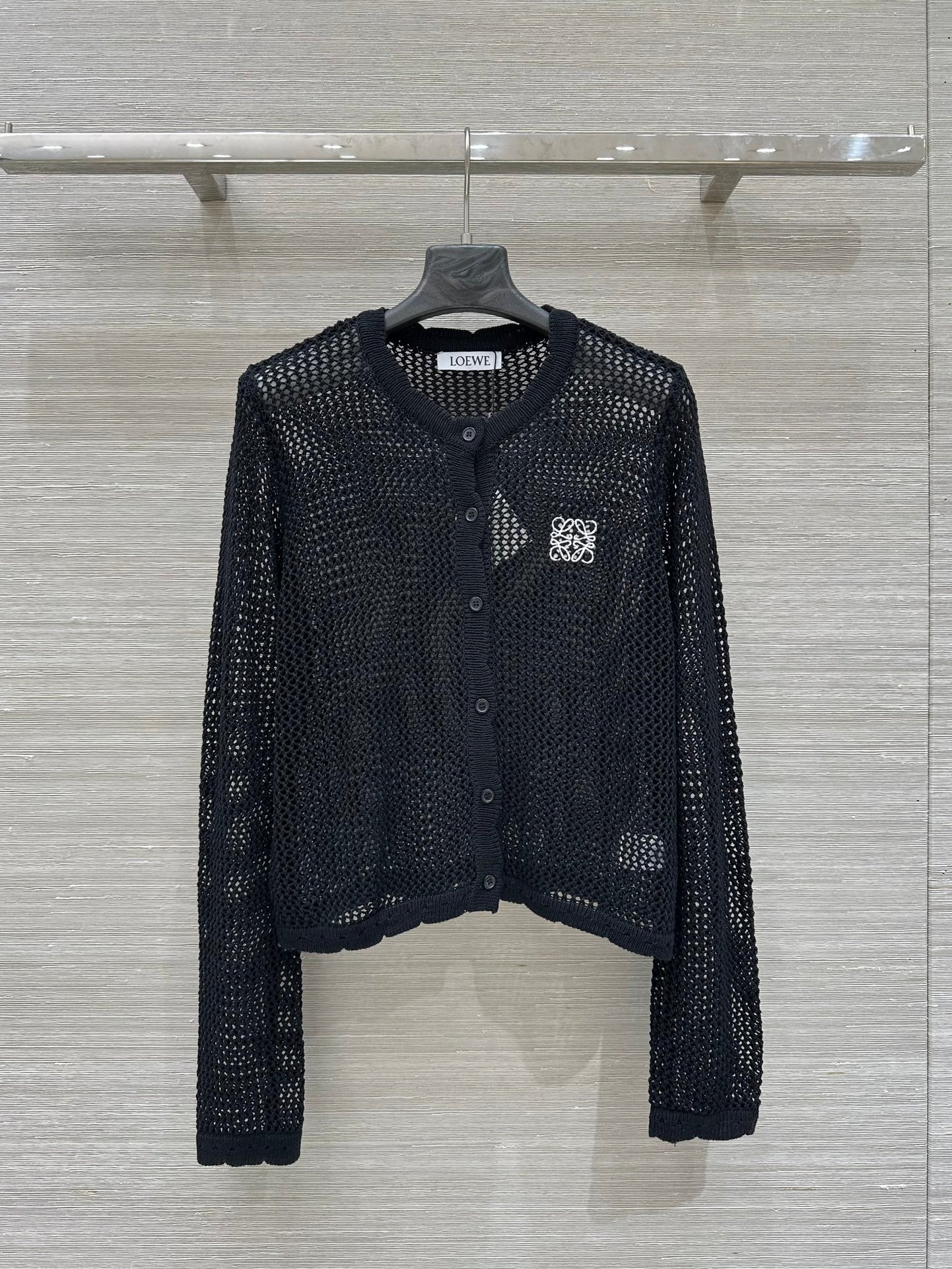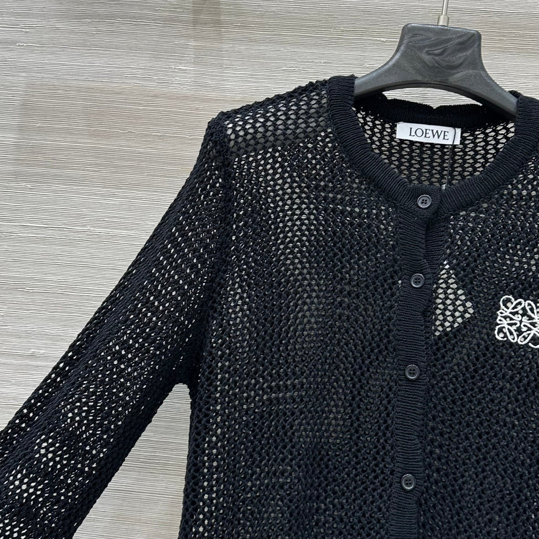 Loewe 25 Mesh Hollow Knitted Cardigan Black Wool