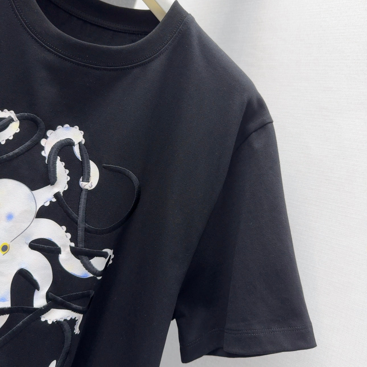 Loewe Octopus Print Embroidered Short-sleeved T-shirt Black Cotton