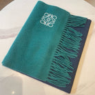 SCARF 180 CM IN TEAL GREEN MIX NAVY BLUE WOOL AND CASHMERE 415204