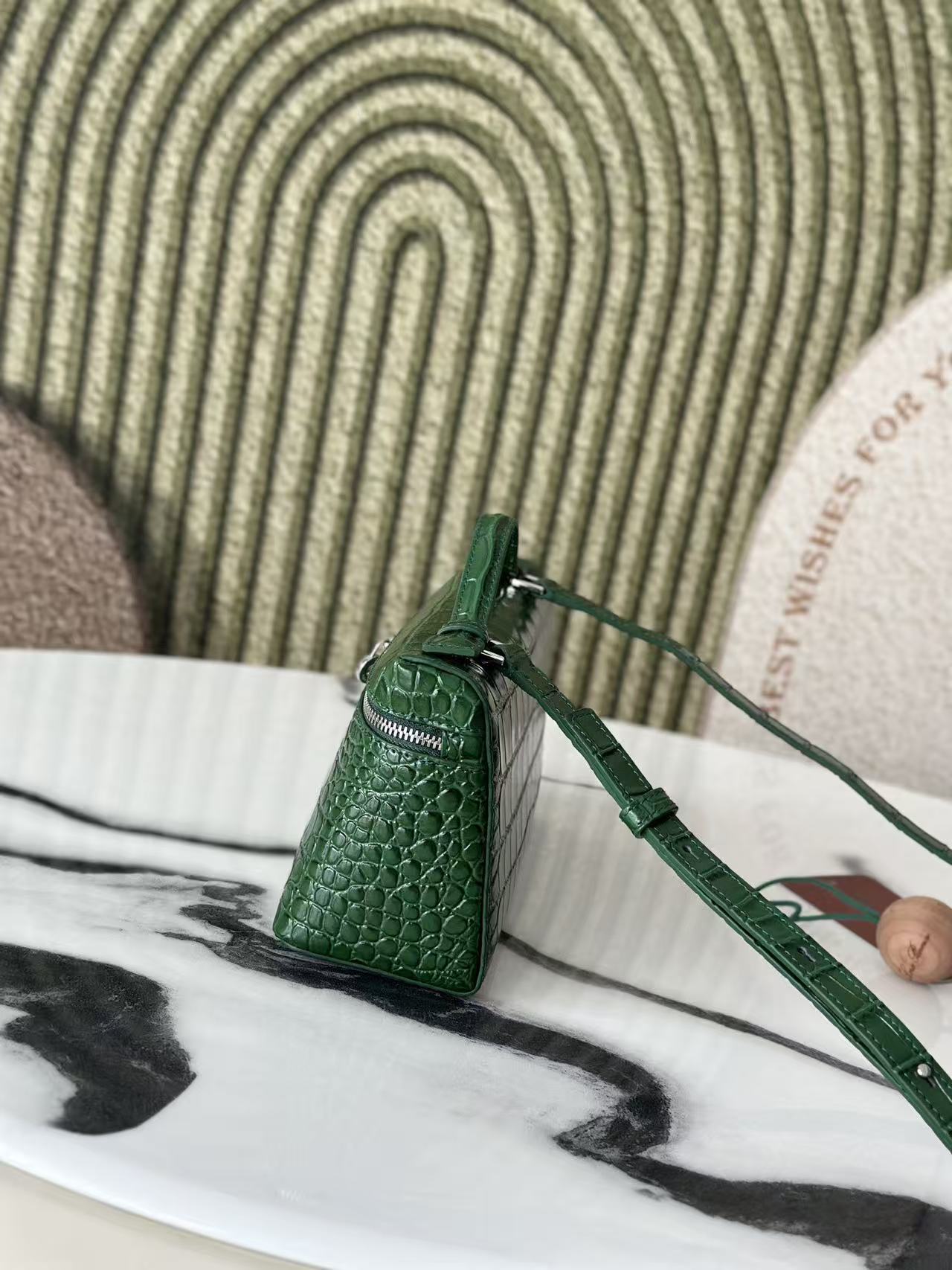 Extra Pocket L19 Teal Green Alligator Pattern Leather SHW