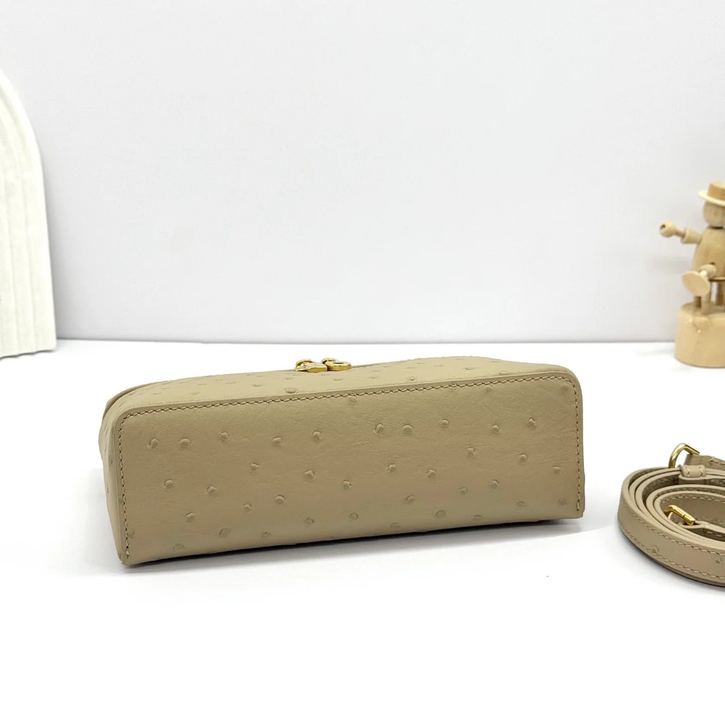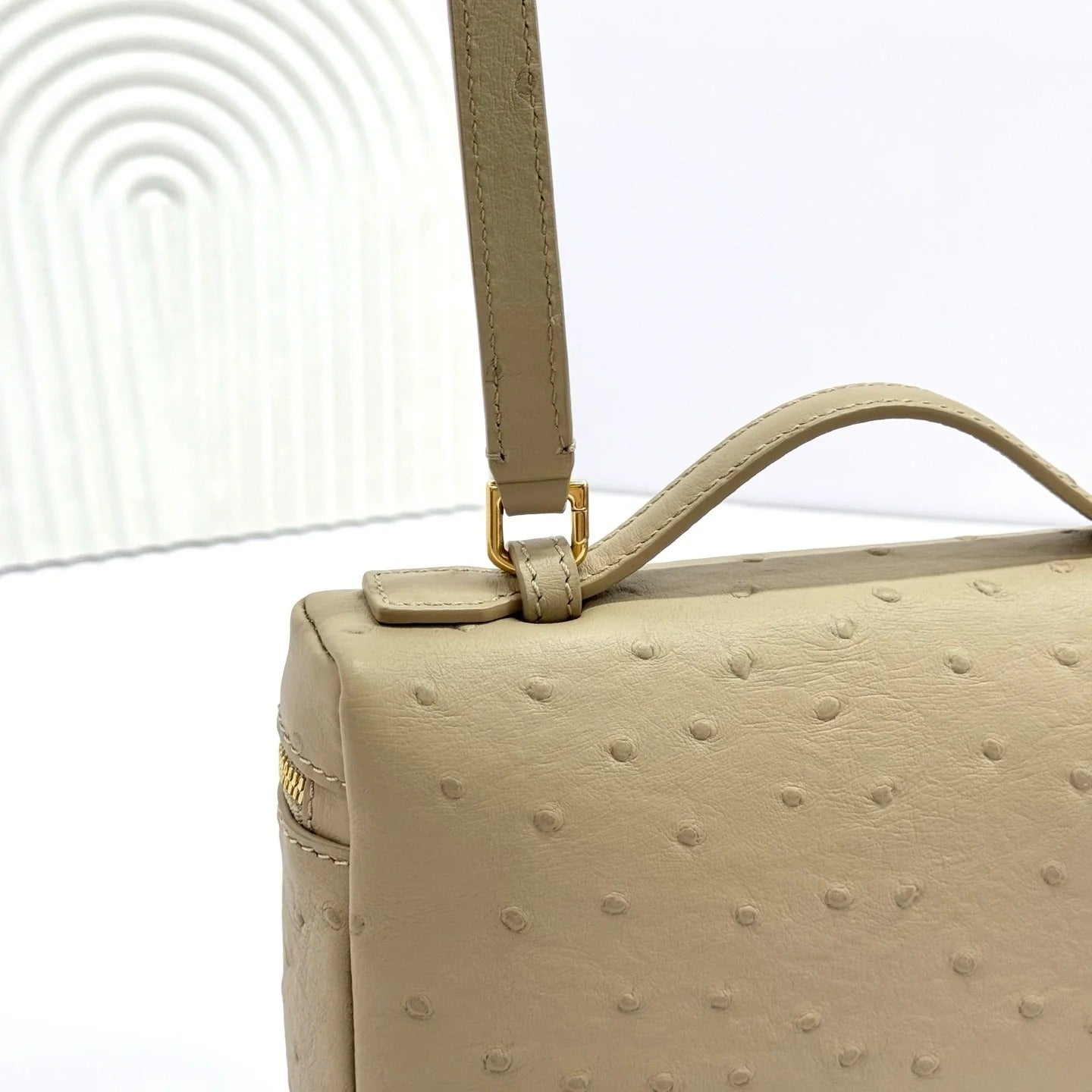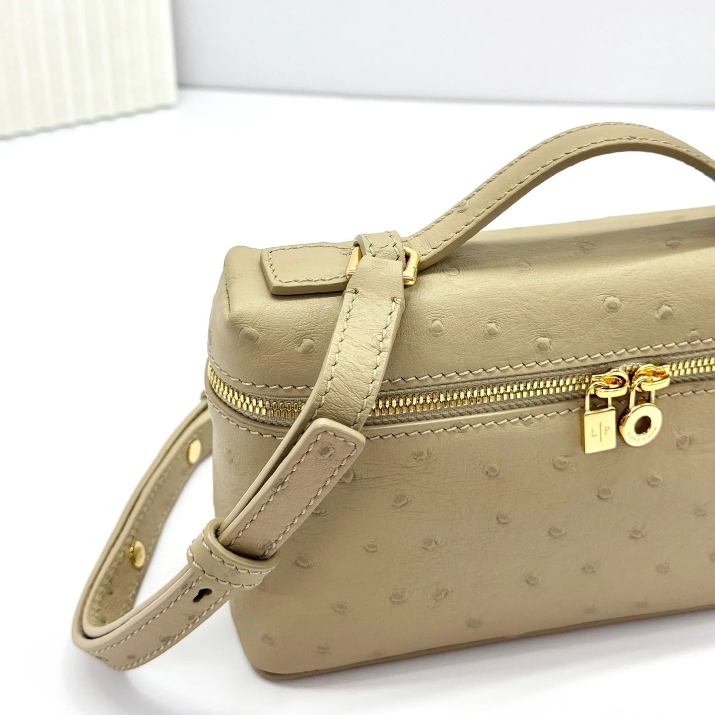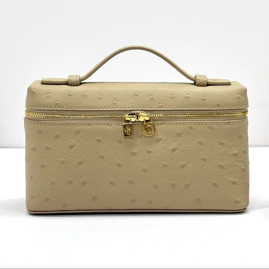 LP Extra Bag 19cm Ostrich Pattern Beige Gold Buckle Calfskin
