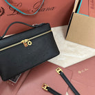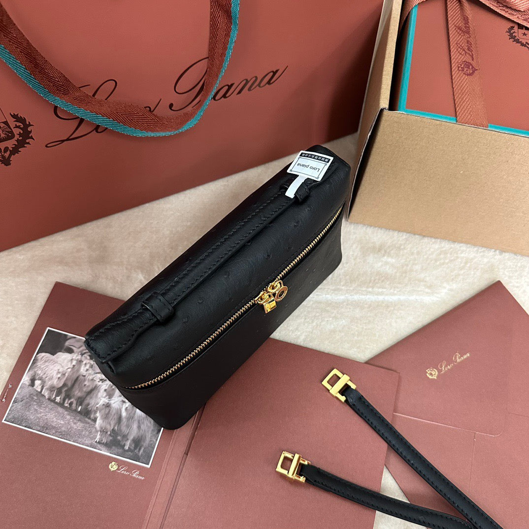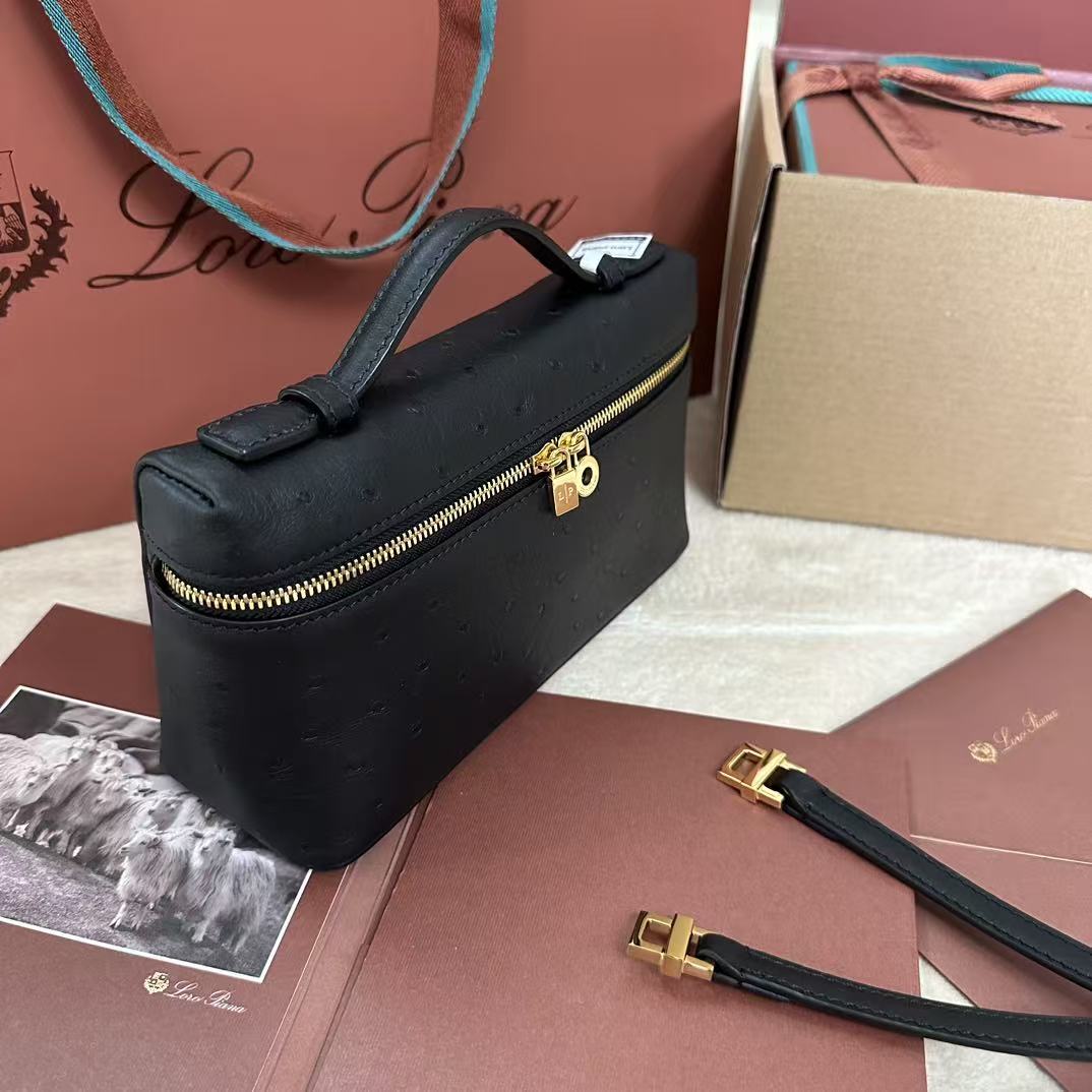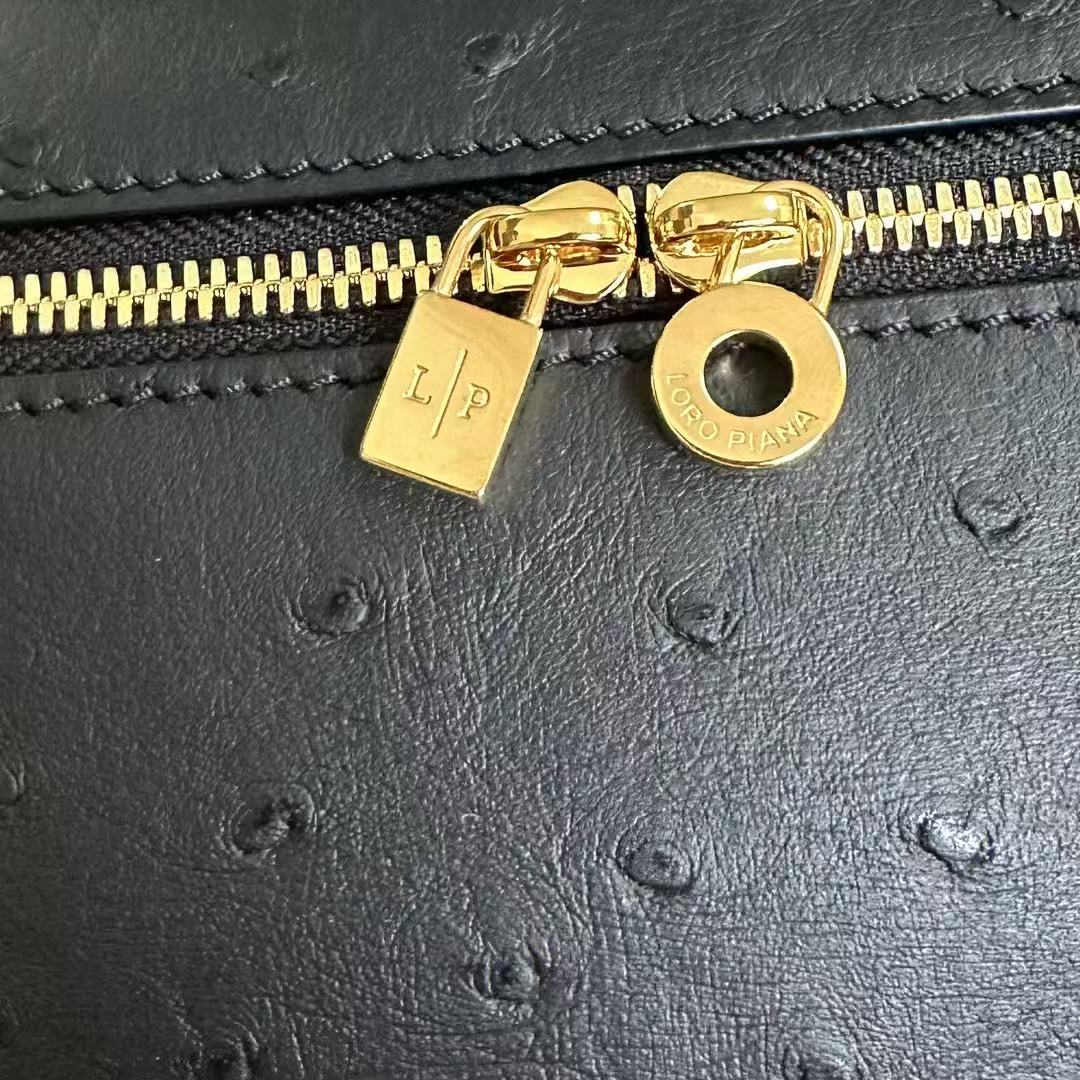EXTRA POCKET L19 IN BLACK OSTRICH WITH GOLD HARDWARE