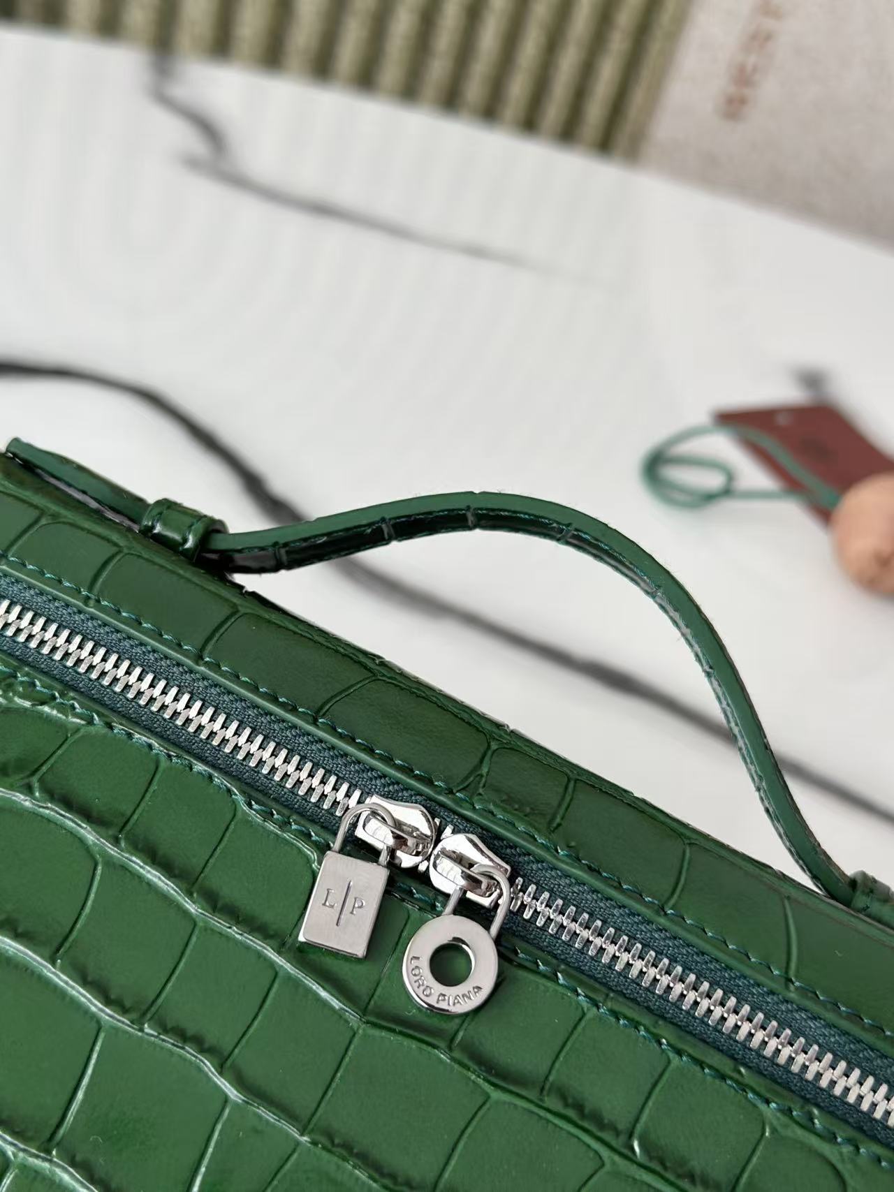 Extra Pocket L19 Teal Green Alligator Pattern Leather SHW