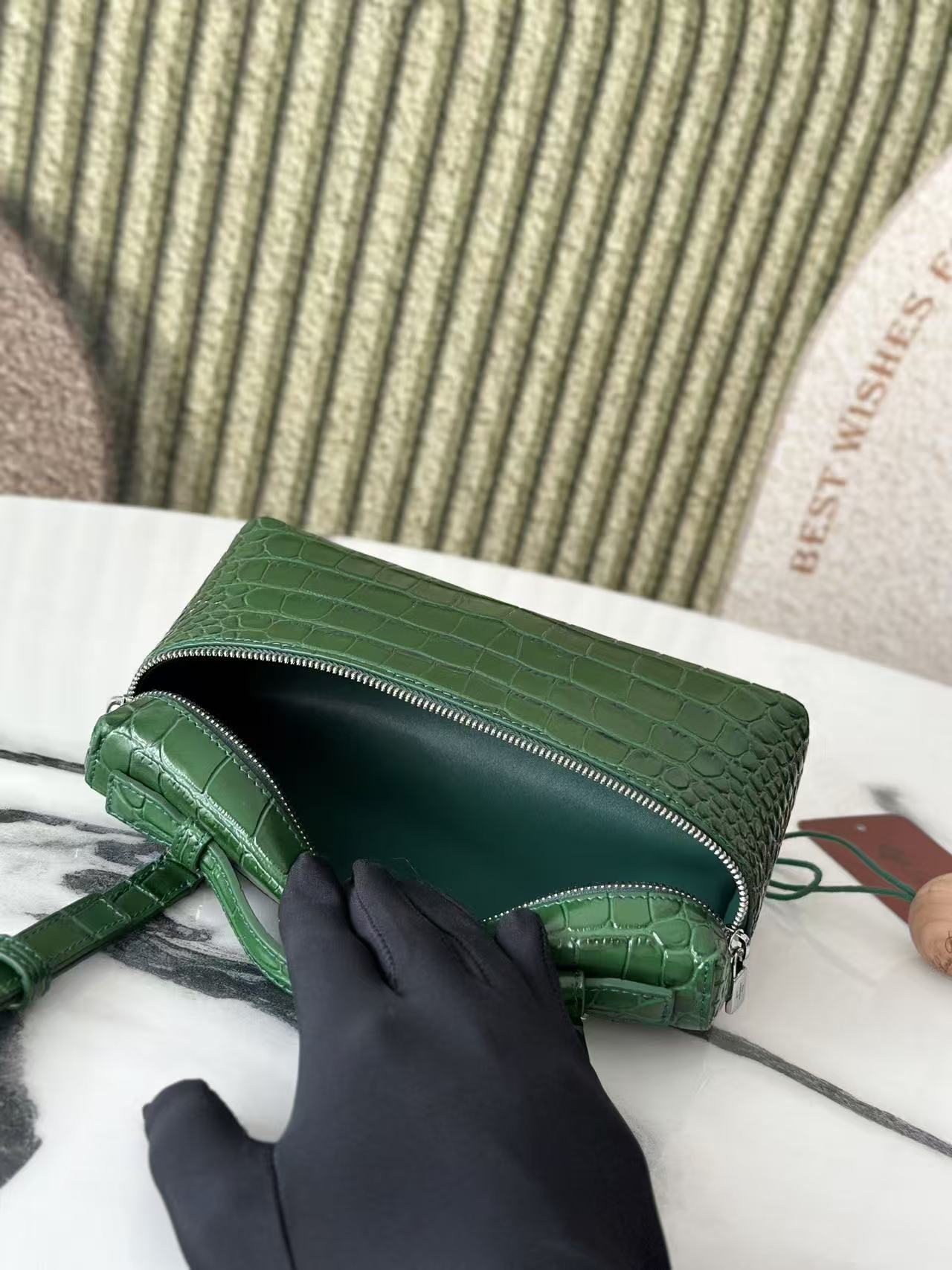 - Material: Alligator Pattern Leather