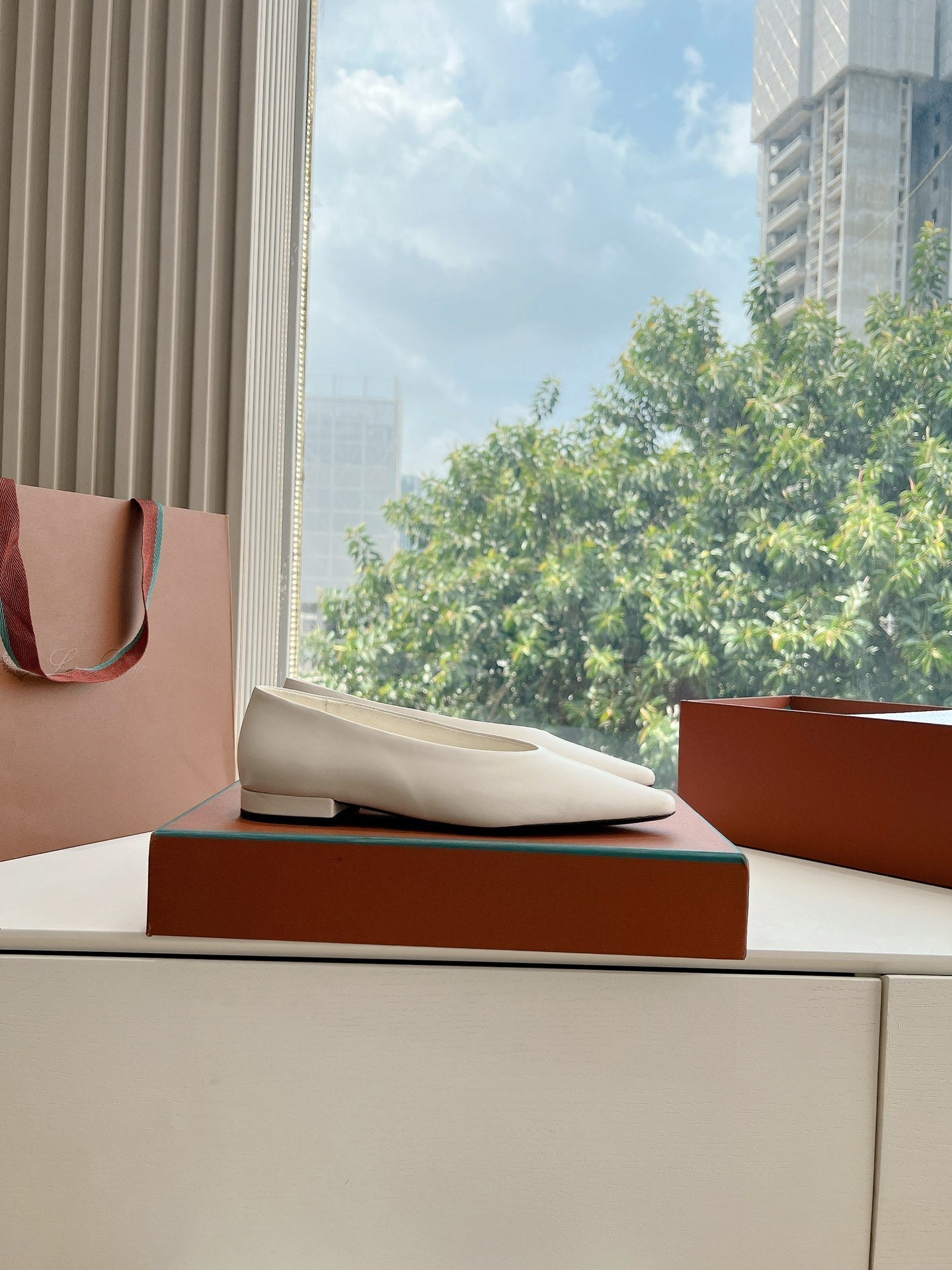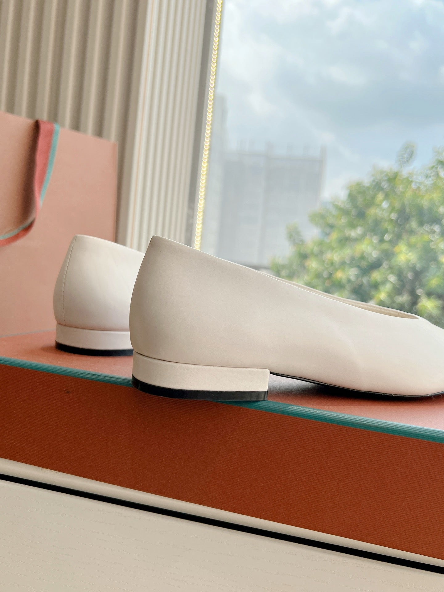rebecca ballerina flat white calfskin