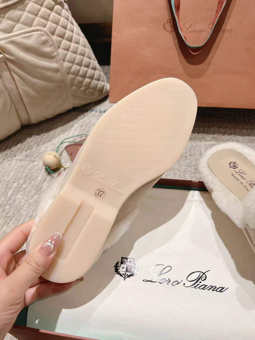 LP Charms Walk Babouche Loafer Bisque Cream mix White Suede With Rabbit Fur Lining 206243