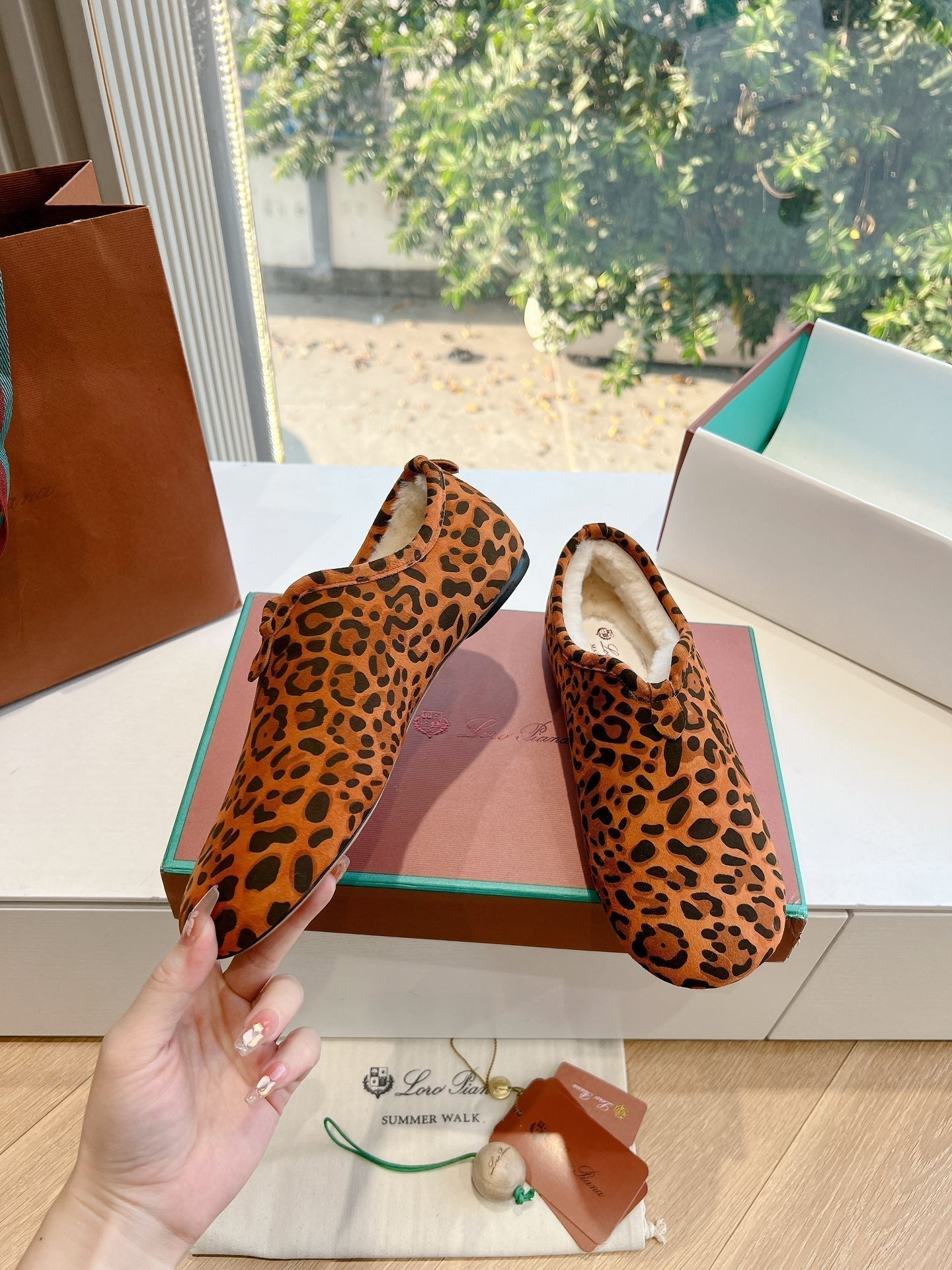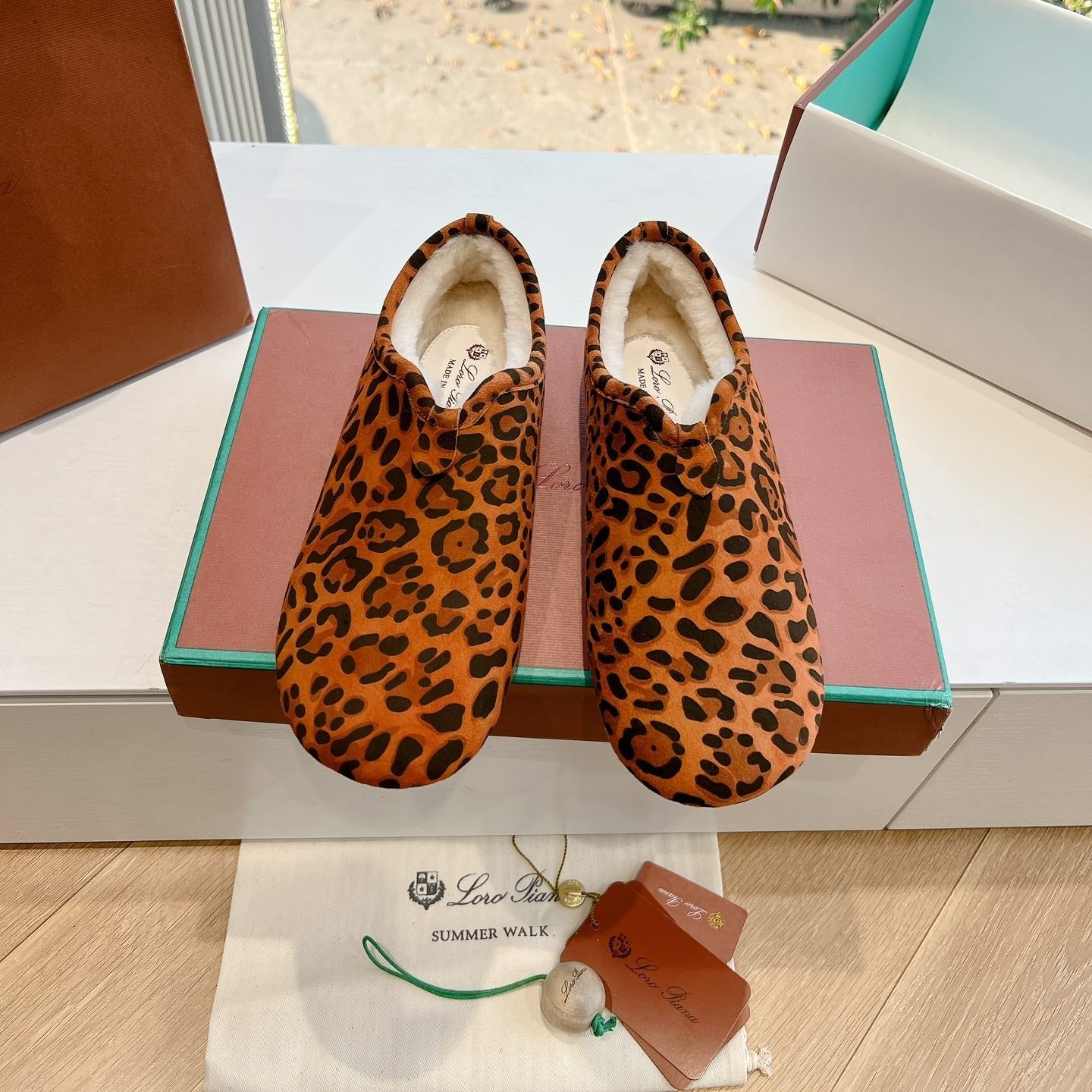 LP Cocooning Floaty Flat Orange Black Leopard Print Wool Fleece Lining And Suede 992982