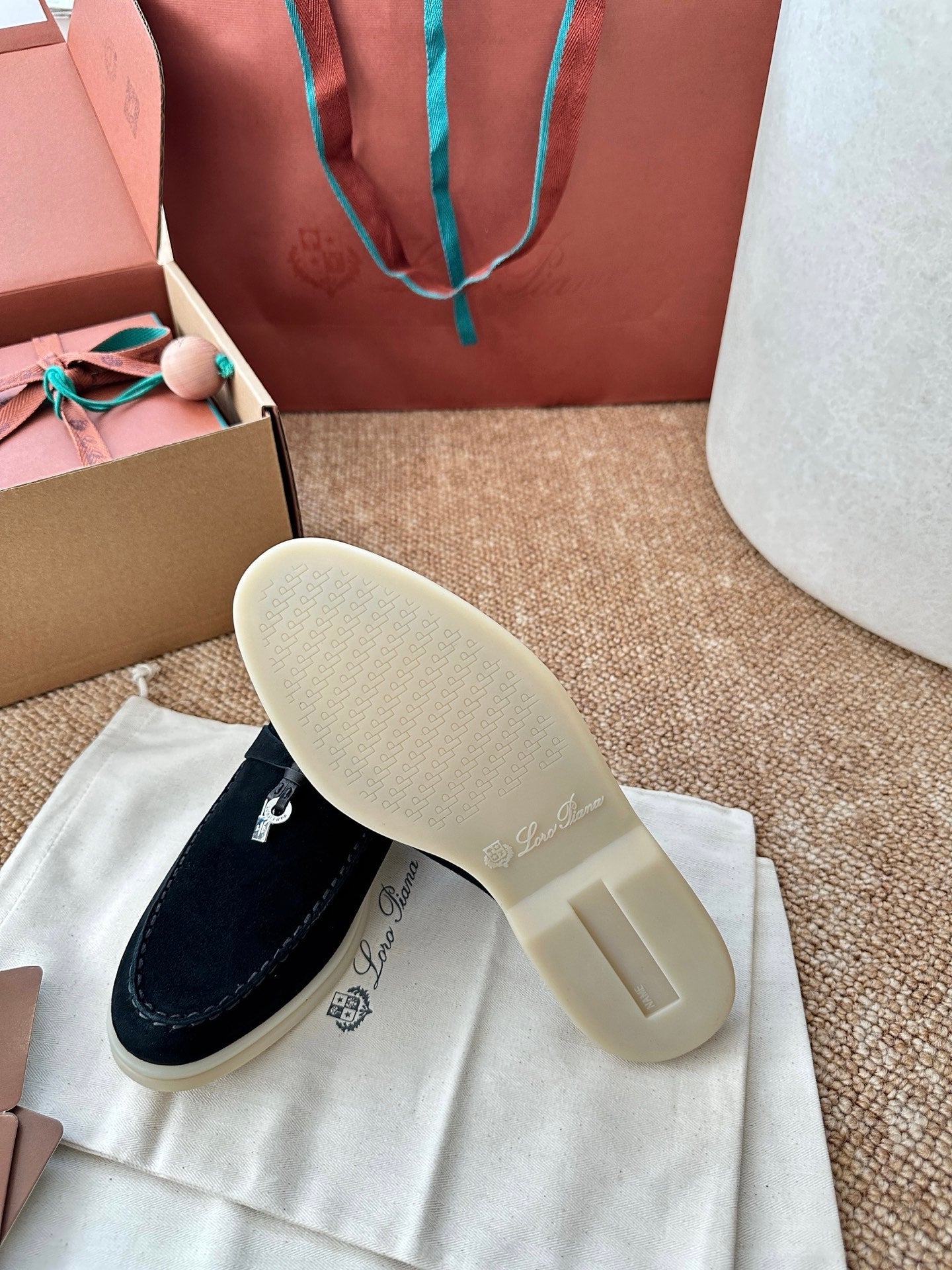 Loro Piana Charms Walk Flat Mules Black Suede 623558