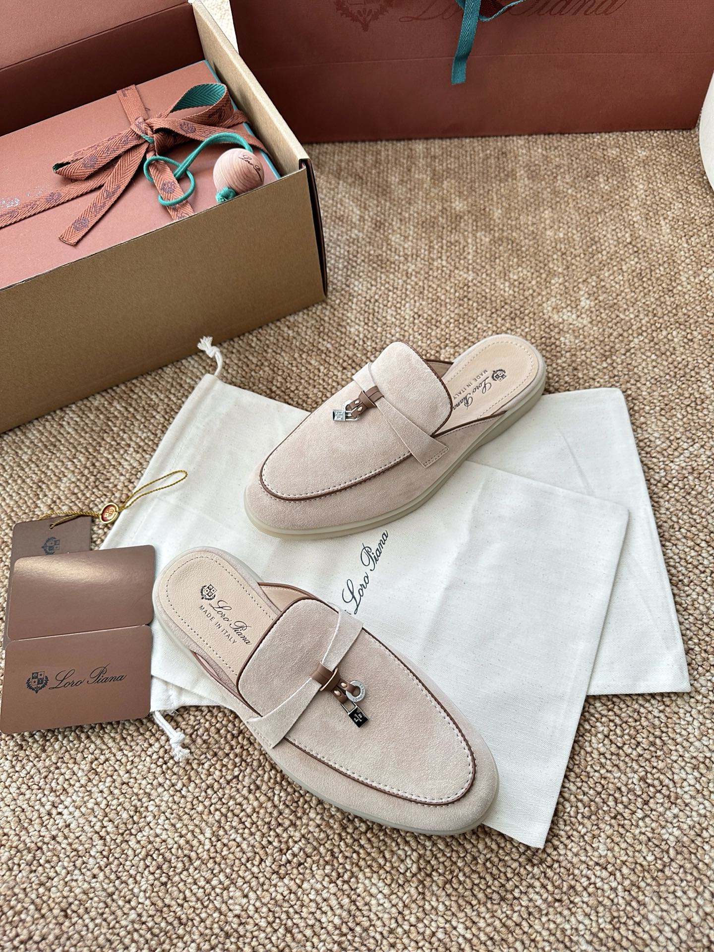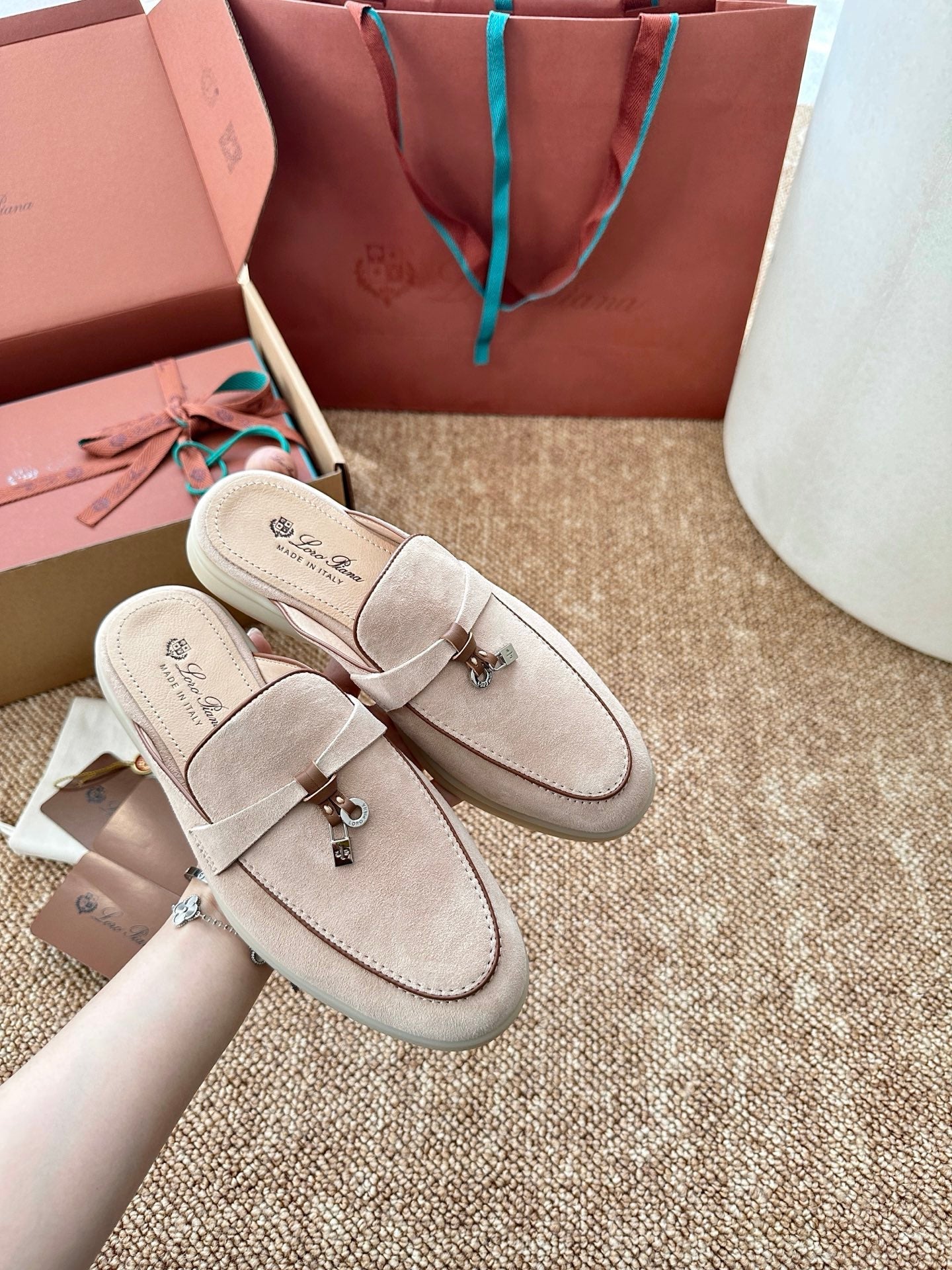 Loro Piana Charms Walk Flat Mules Pale PInk Suede 623548