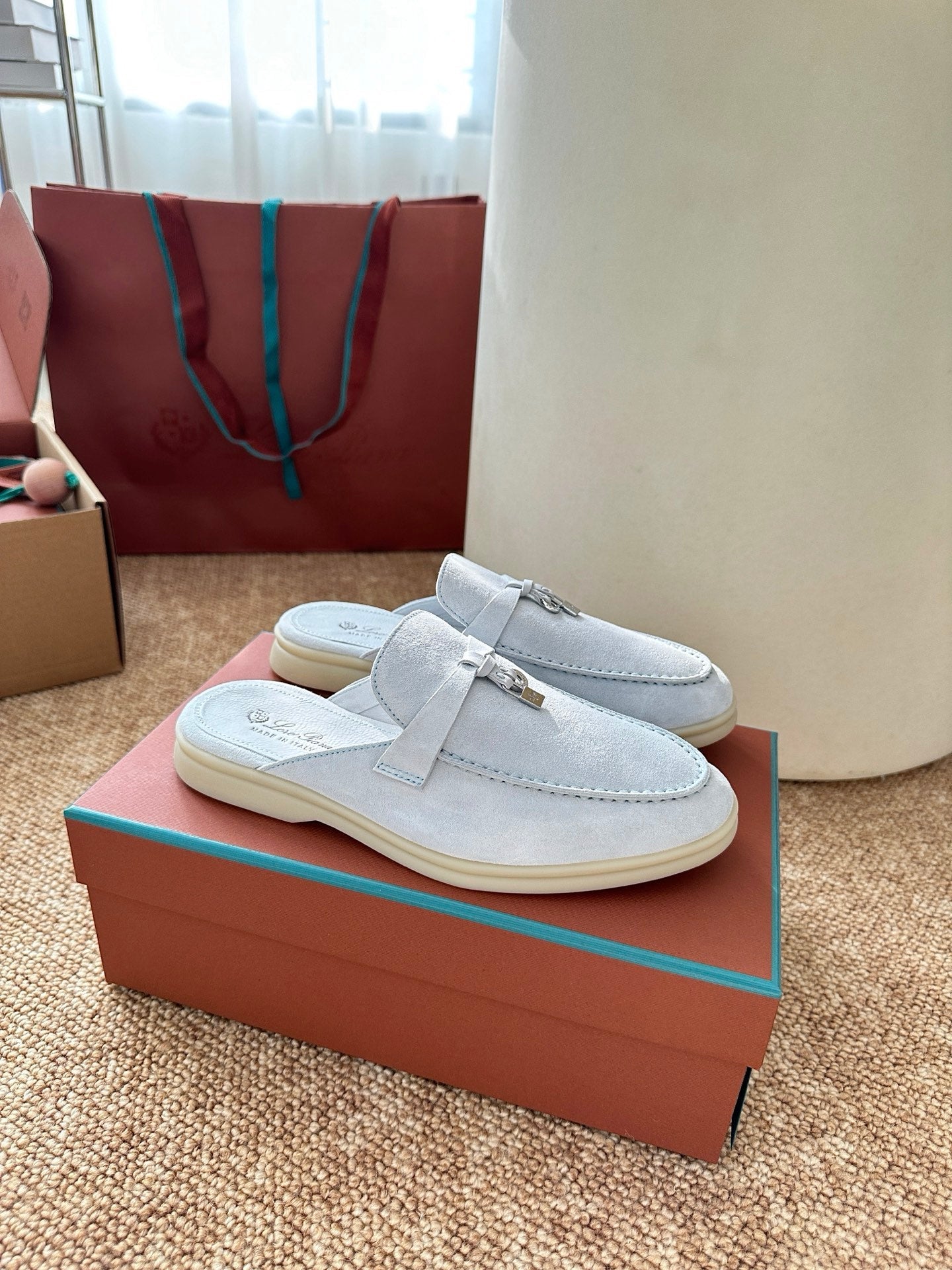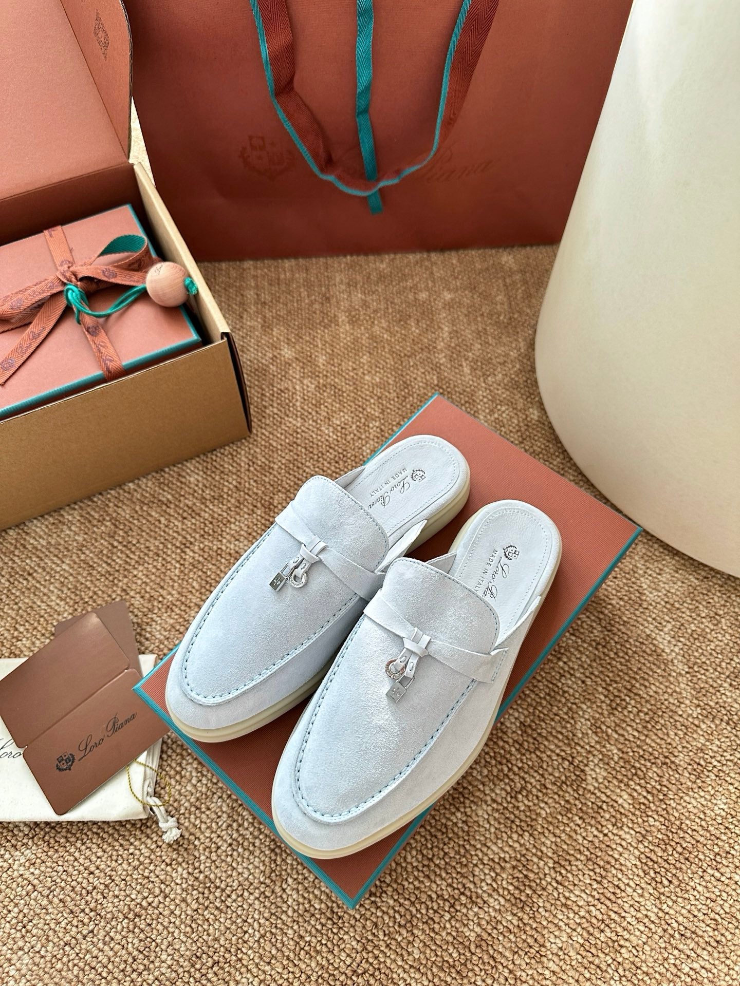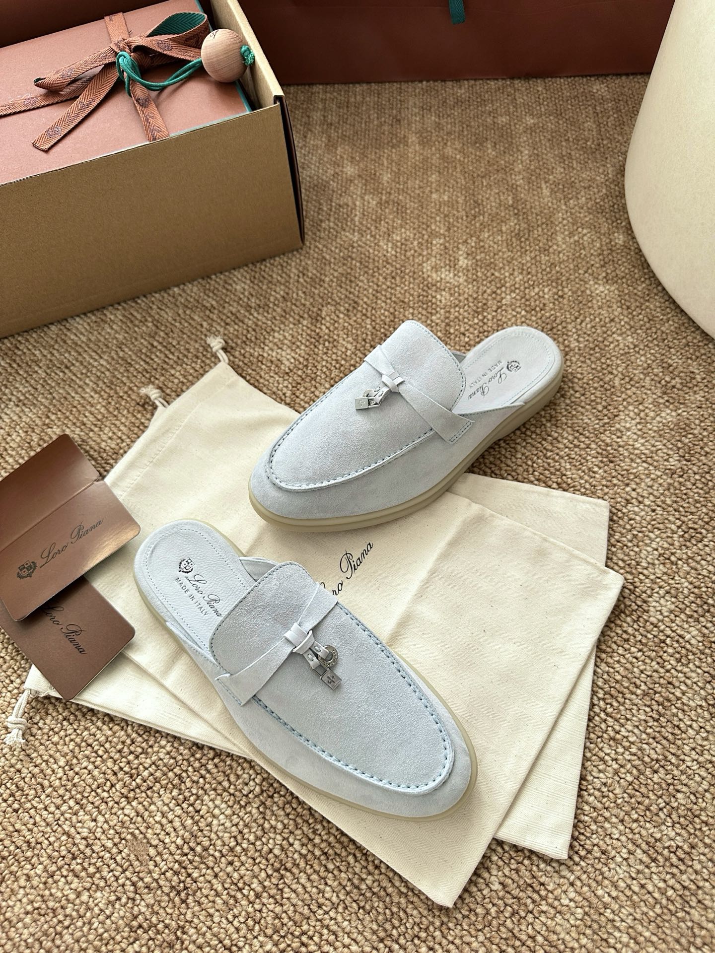 Loro Piana Charms Walk Flat Mules Water Blue Suede 623557
