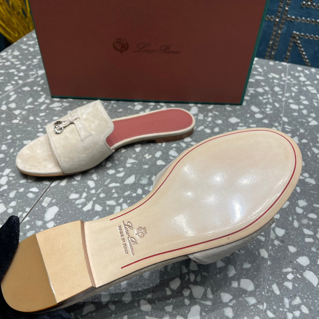 Summer Charms Sandals in Light Taupe Suede Maroon Lambskin