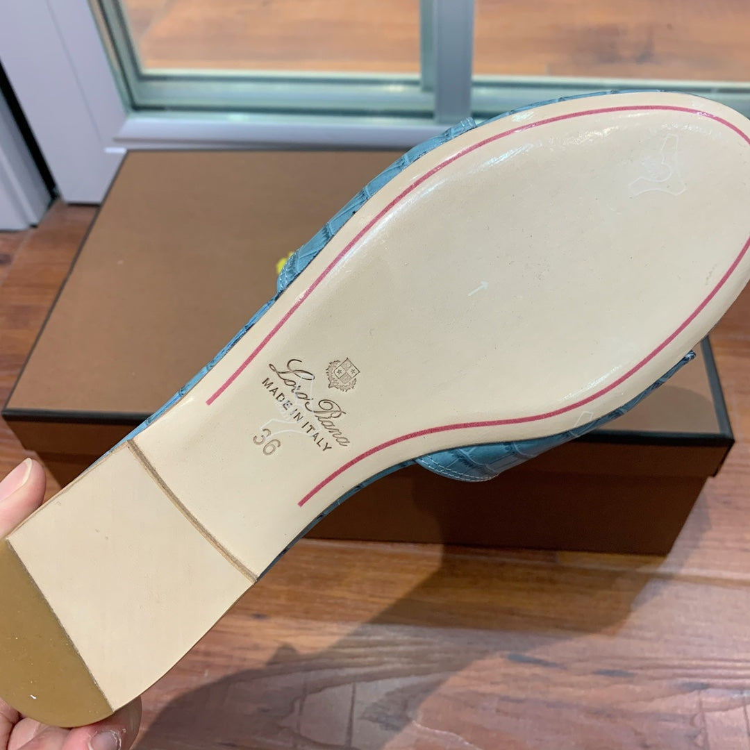 Summer Charms Sandals Mule Sky Blue Crocodile Pattern Pink Lambskin