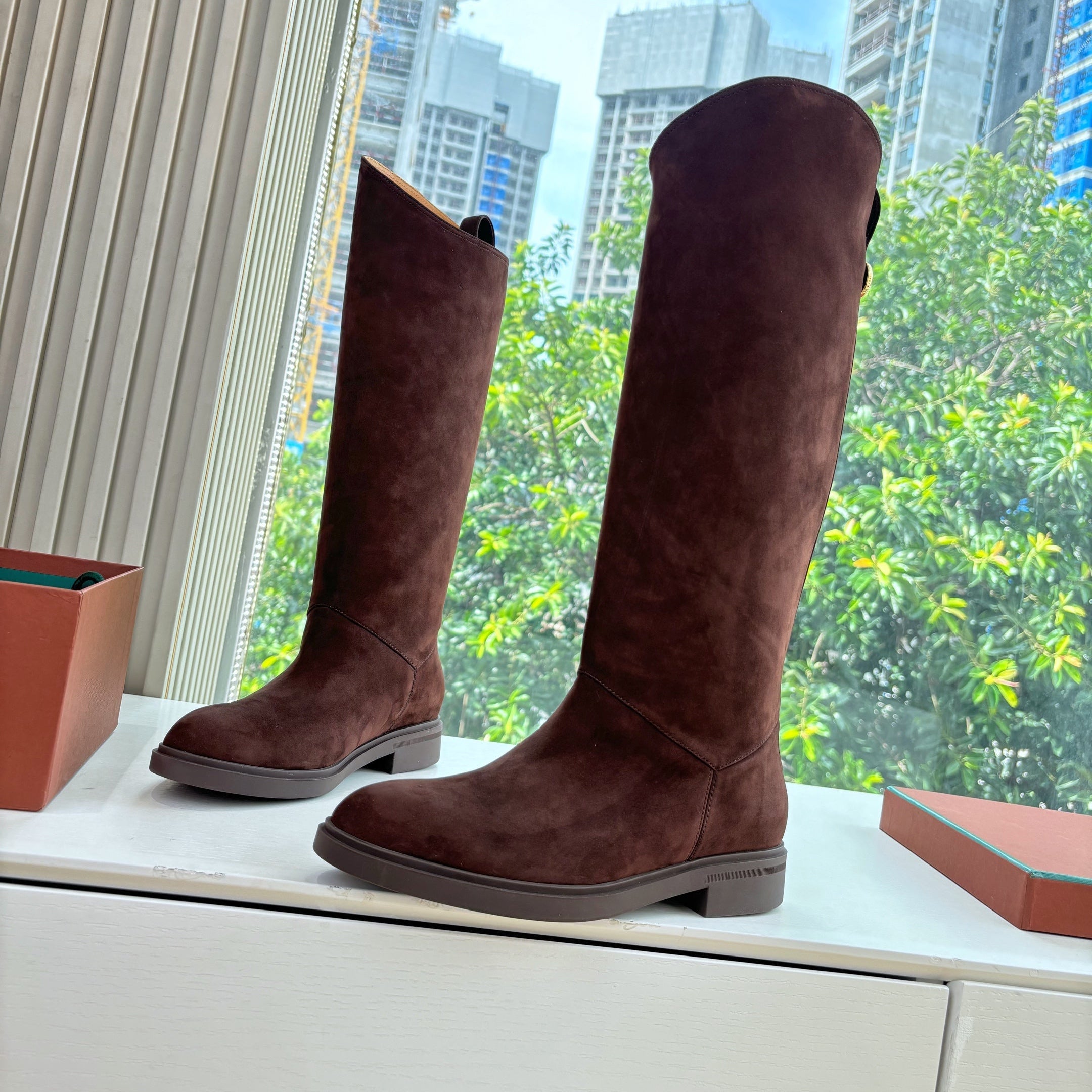 LP Mid-Calf Boots 20mm Brown Cowhide Sheepskin 447744