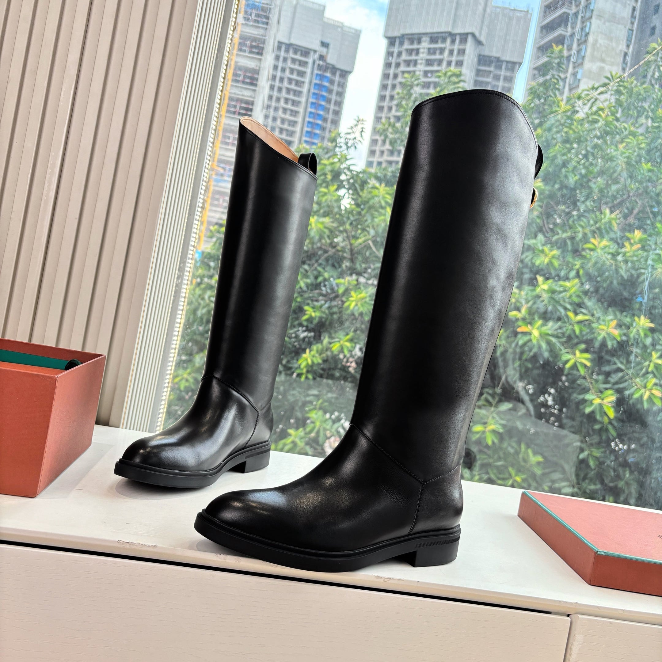LP Mid-Calf Boots 20mm Black Cowhide Sheepskin 447745