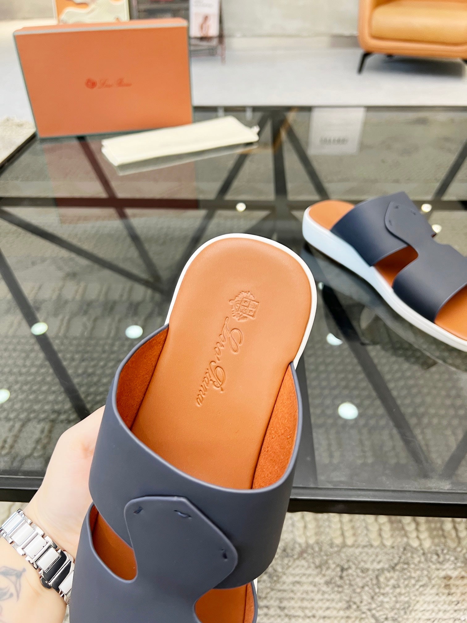 LP CROSSOVER SLIPPERS PALE ORANGE CALFSKIN