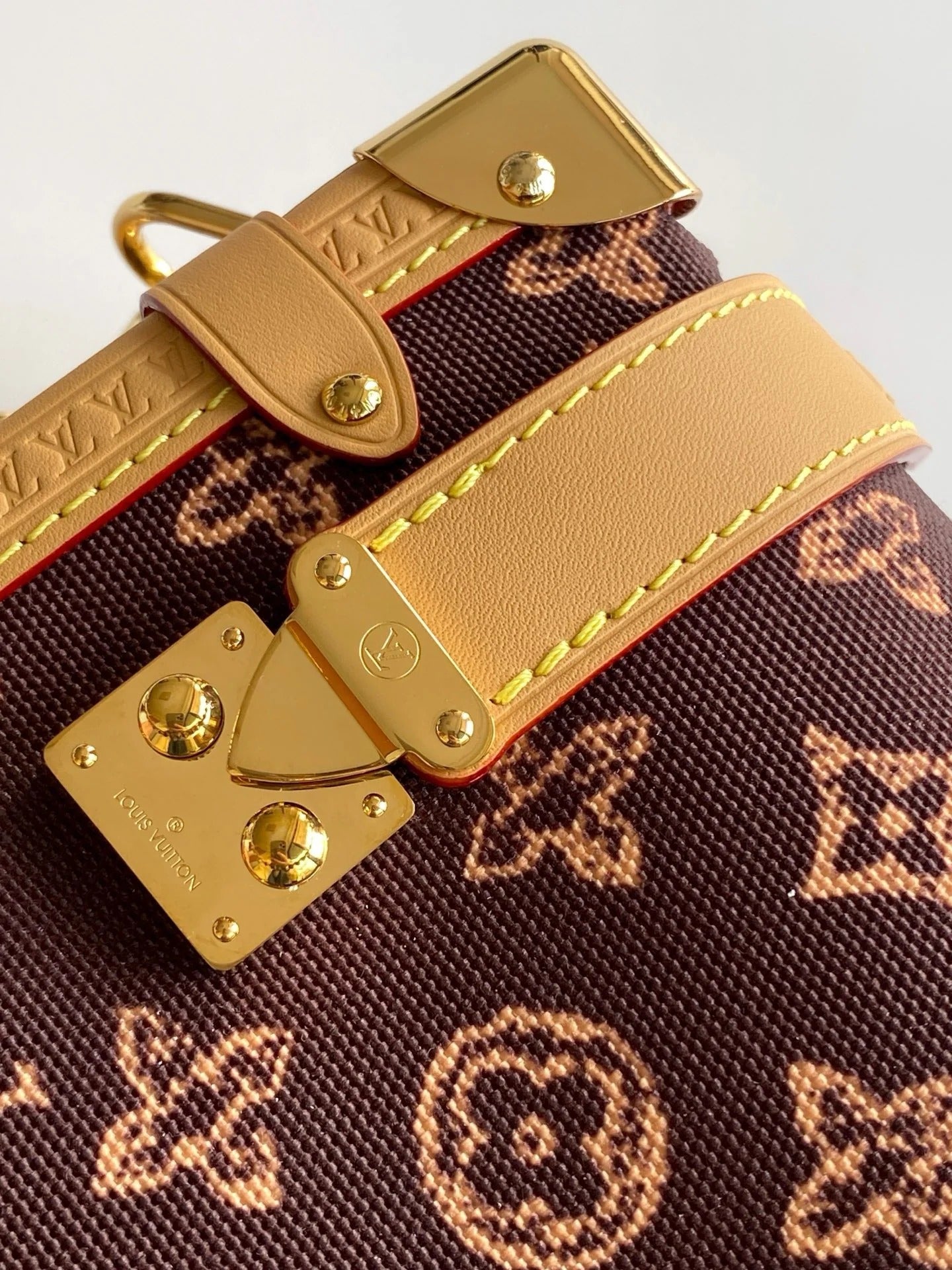 Louis Vuitton 2026 Side Trunk MM Bag Brown Tan Monogram Canvas Cowhide