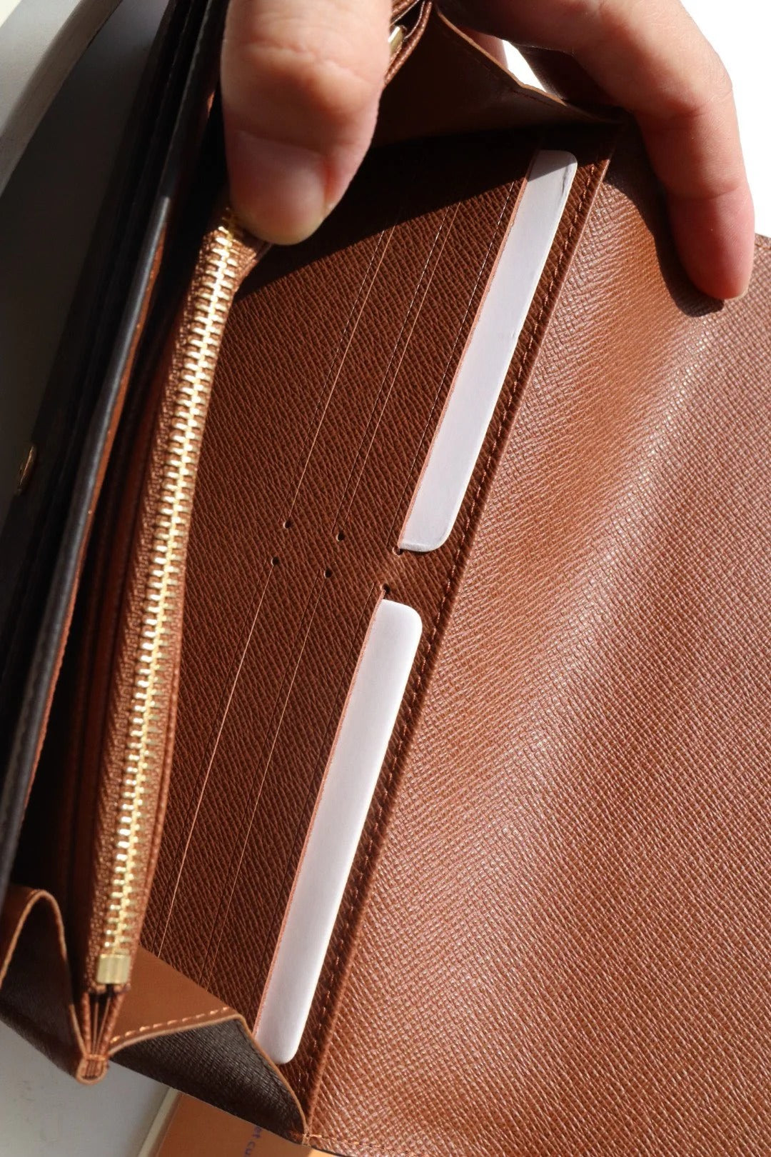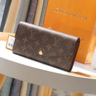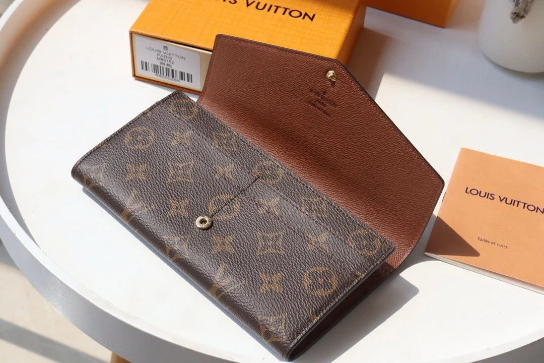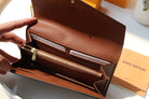 LV 2025 Sarah Folding Long Wallet Brown Canvas Leather
