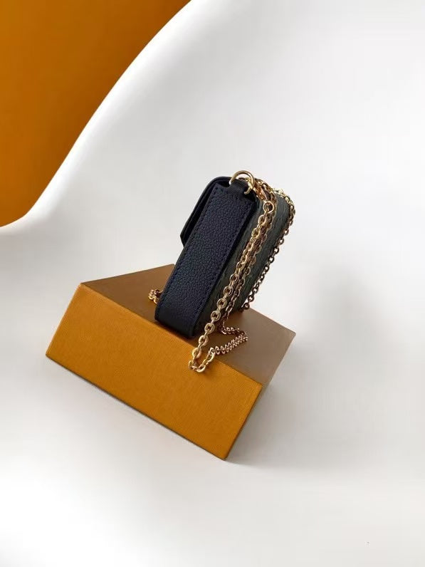 LV Félicie Pochette 21cm Black Monogram Embossed Leather GHW