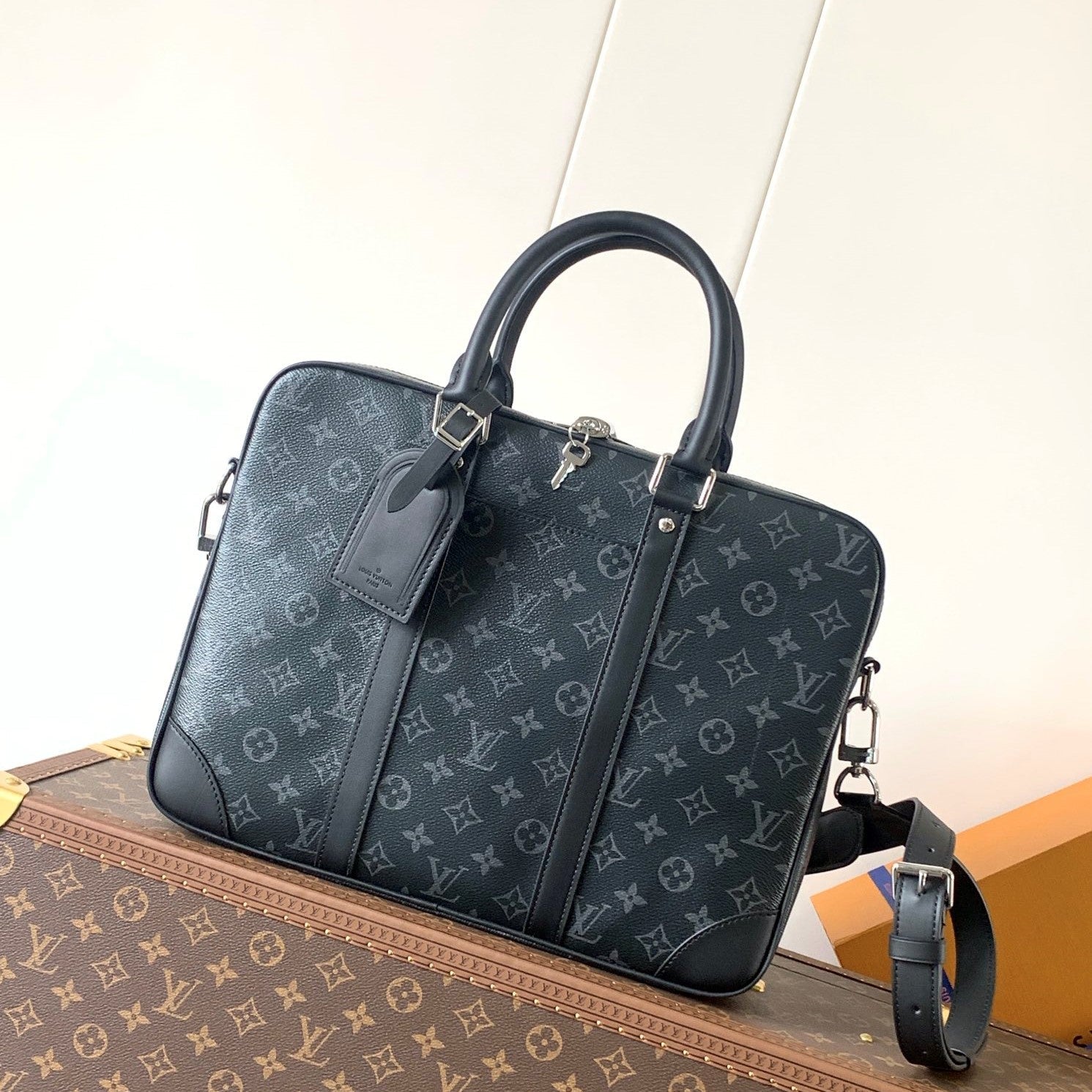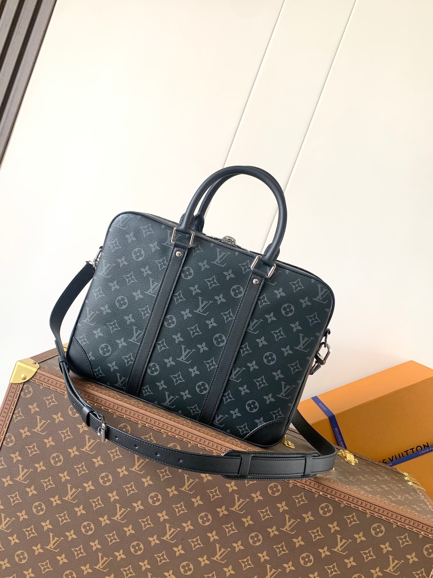 LV M46457 Porte-Documents Voyage NM Black Monogram Eclipse Canvas