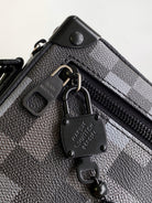 Lv Mini Soft Trunk 18.5 Black Damoflage Black Canvas- Black Metal