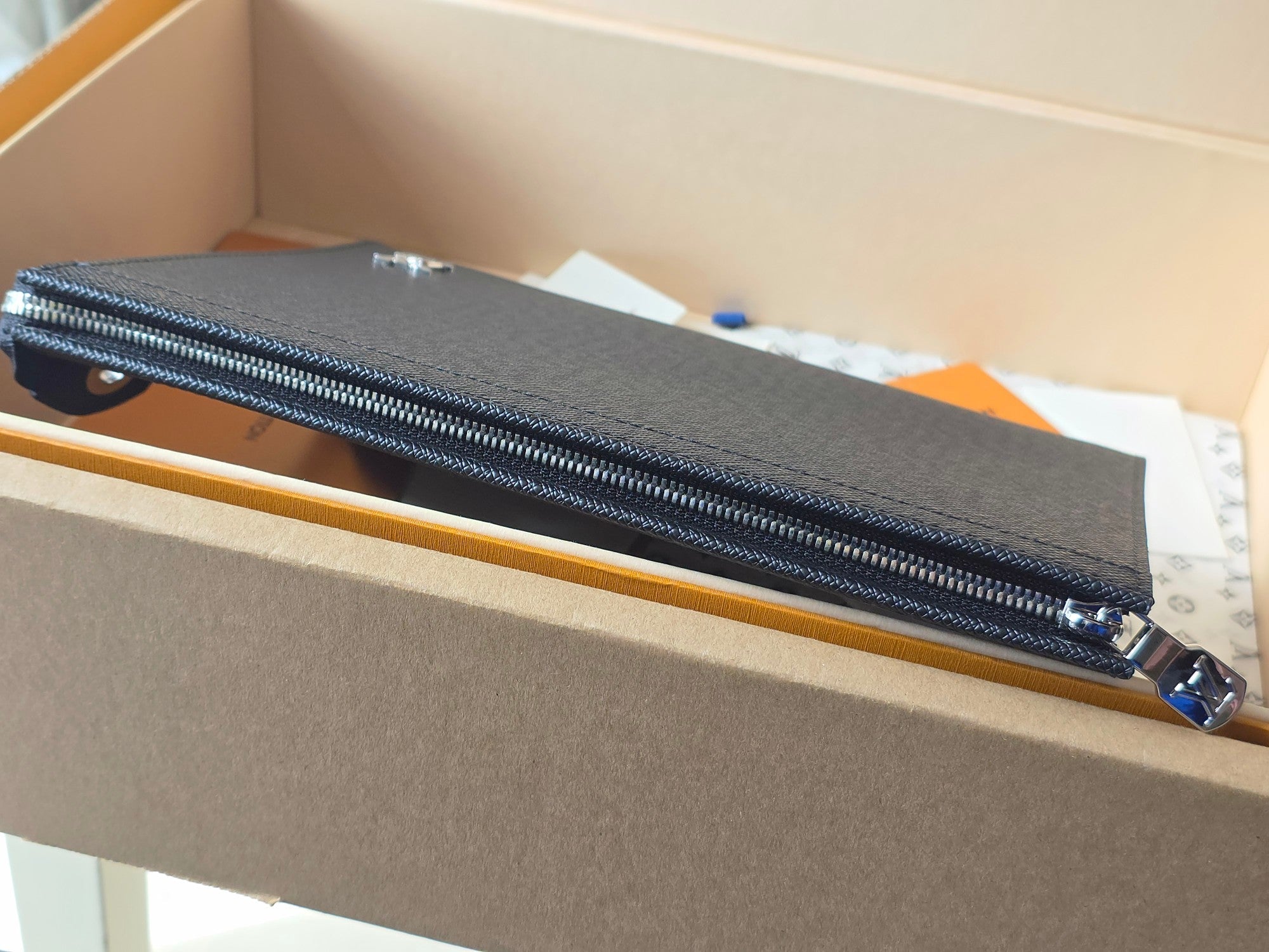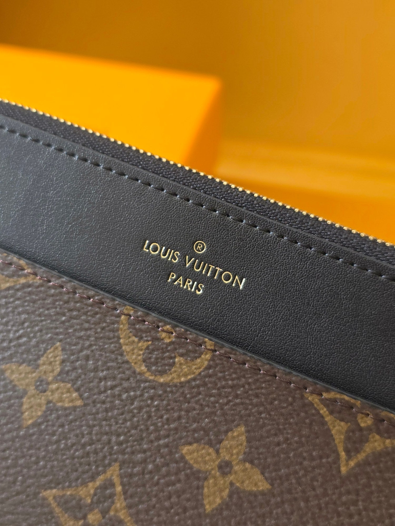 LV M80348 Slim Purse Clutch Black Monogram Canvas Cowhide